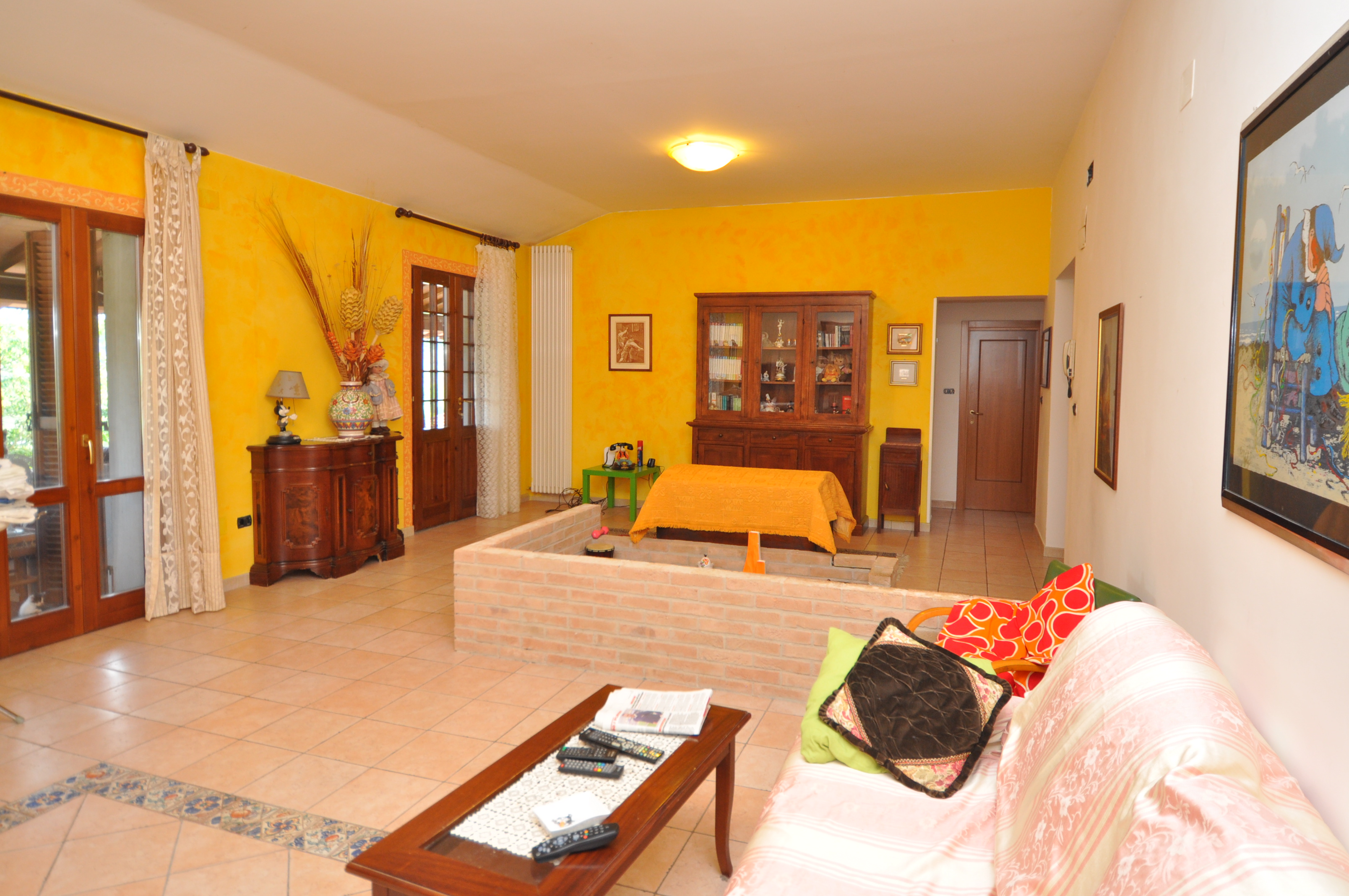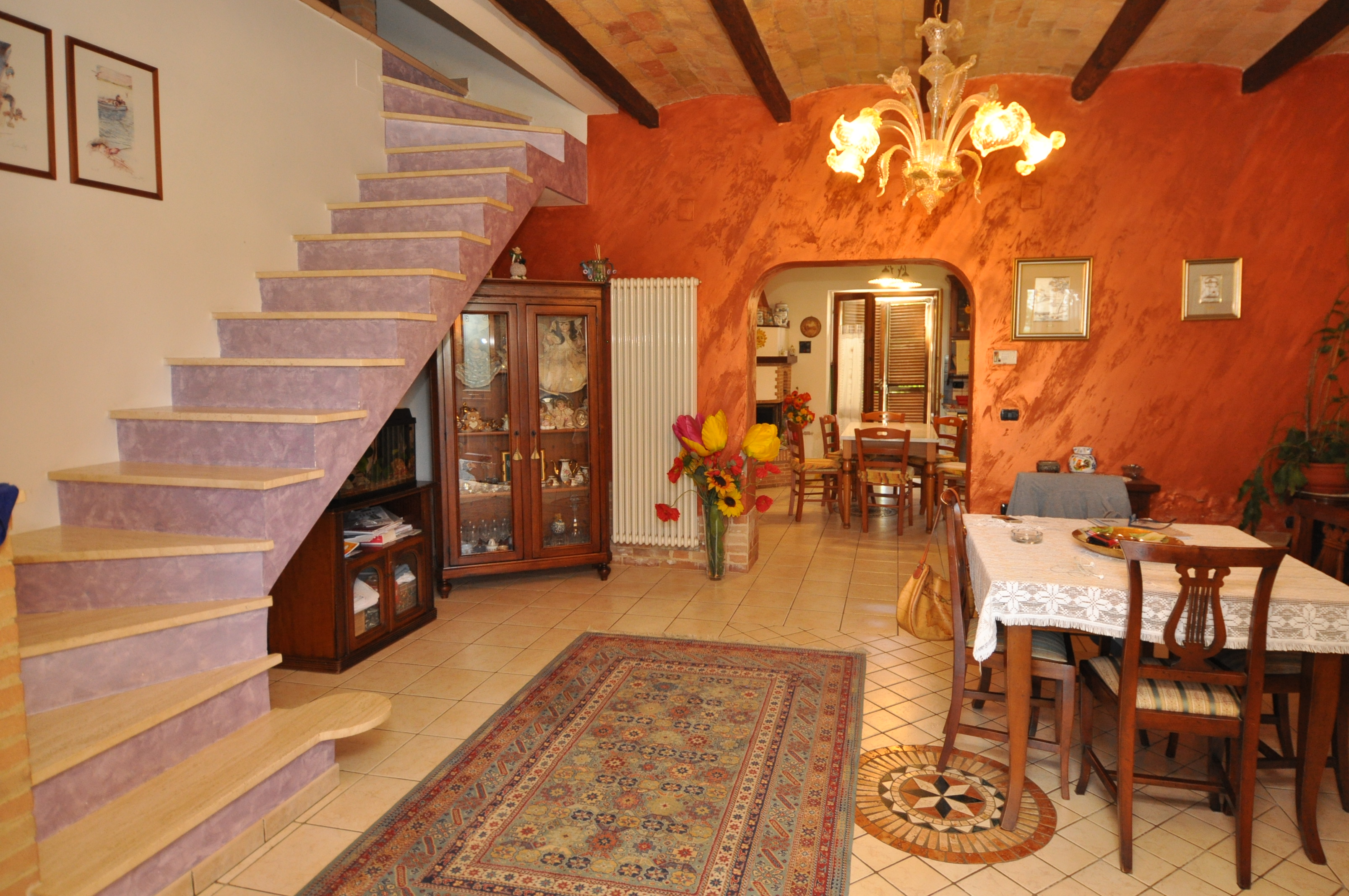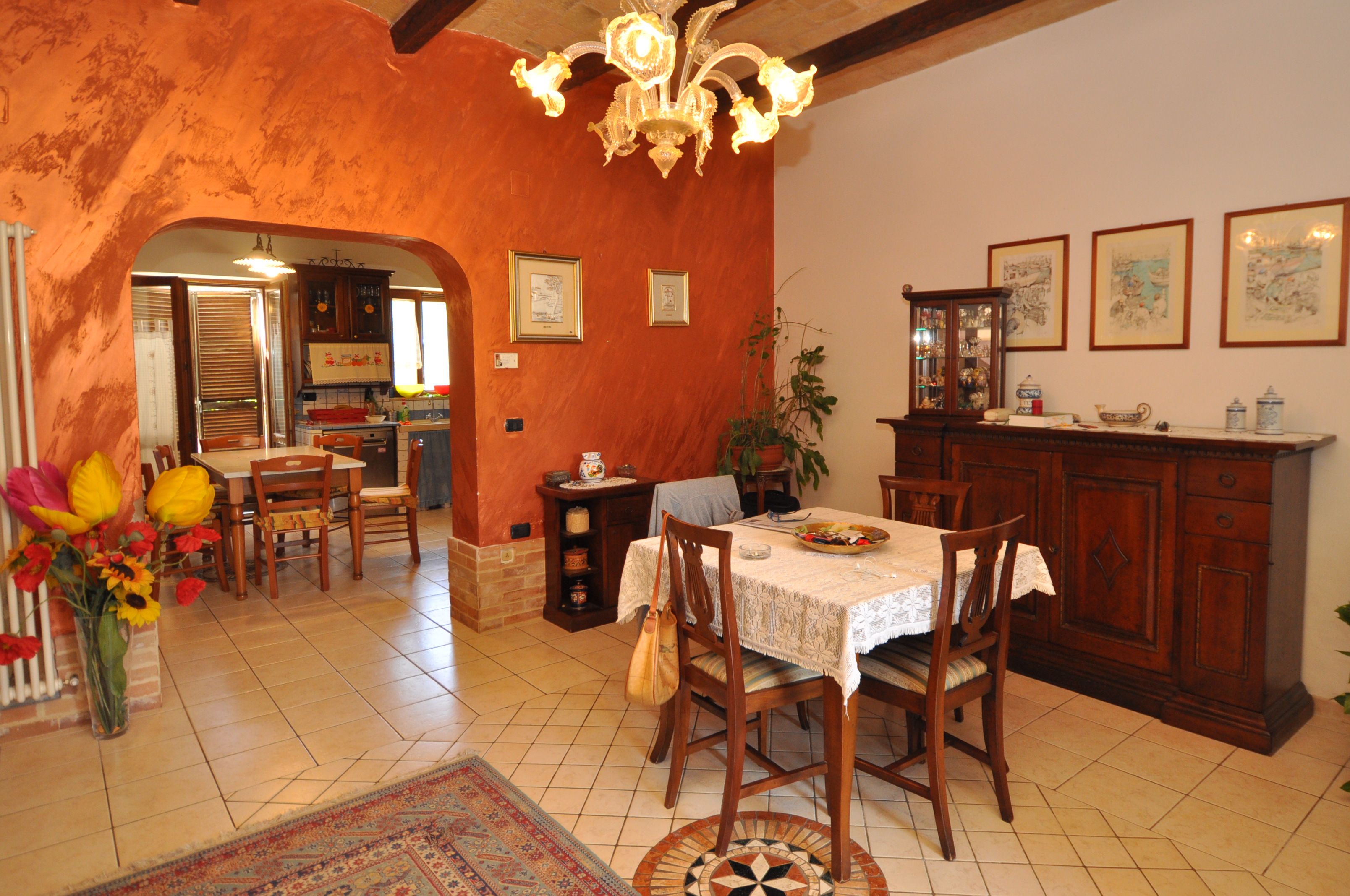 Fabbricato rurale di due livelli e posto in aderenza su un lato, delle dimensioni complessive di 280 mq ca e composto da: piano terra di 145 mq ca, con piccolo portico, ingresso su soggiorno/pranzo, bagno, cucina abitabile con camino, corte esterna e scala di accesso al piano primo di 135 mq ca, con soggiorno, loggiato e scala esterna, quattro camere da letto, bagno. L'immobile è stato ristrutturato completamente e si presenta in buone condizioni, con pavimentazione in monocottura su tutta la superficie, infissi in legno con doppi vetri e impiantistica a norma. Localizzata in zona collinare, immersa nel verde e non lontana dalla strada principale e dai servizi.
