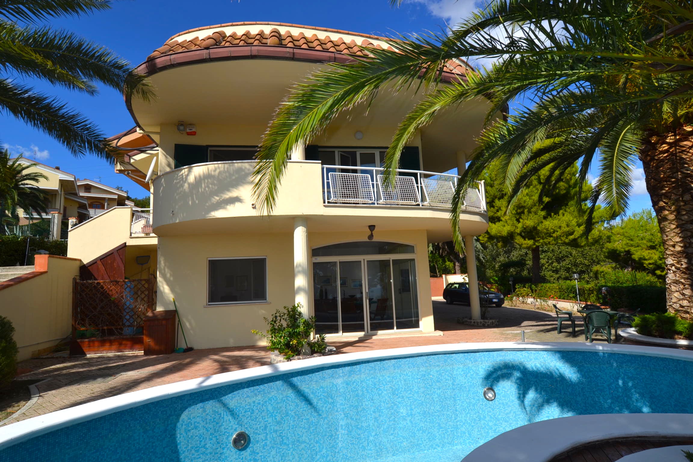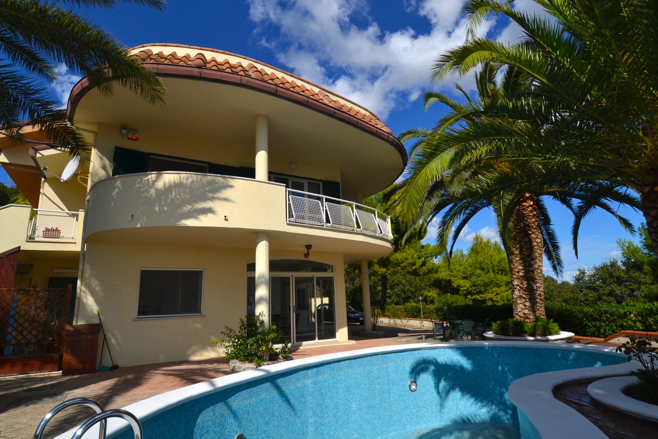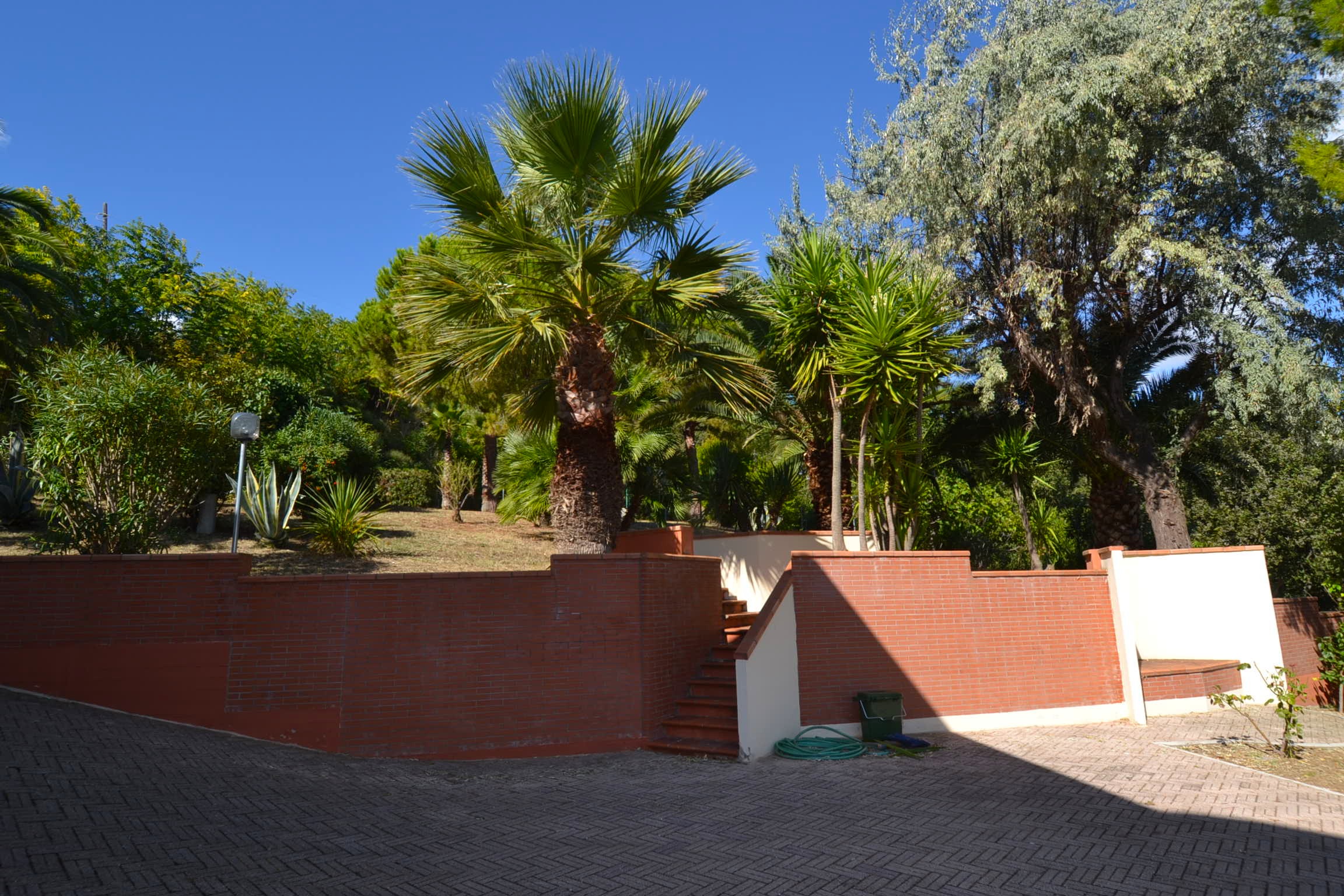 La villa in oggetto, singola e completamente autonoma, é circondata da un suggestivo e curatissimo parco di oltre 4.000 mq, completamente recintato e contornato di piante ad alto fusto, che conferiscono alla residenza un'atmosfera di quiete e tranquillità; Sulla parte anteriore alla casa troviamo una piscina di forma " a fagiolo ", di circa 60 metri di superficie, rifinita completamente in mosaico, con una zona relax anteriore prendisole.