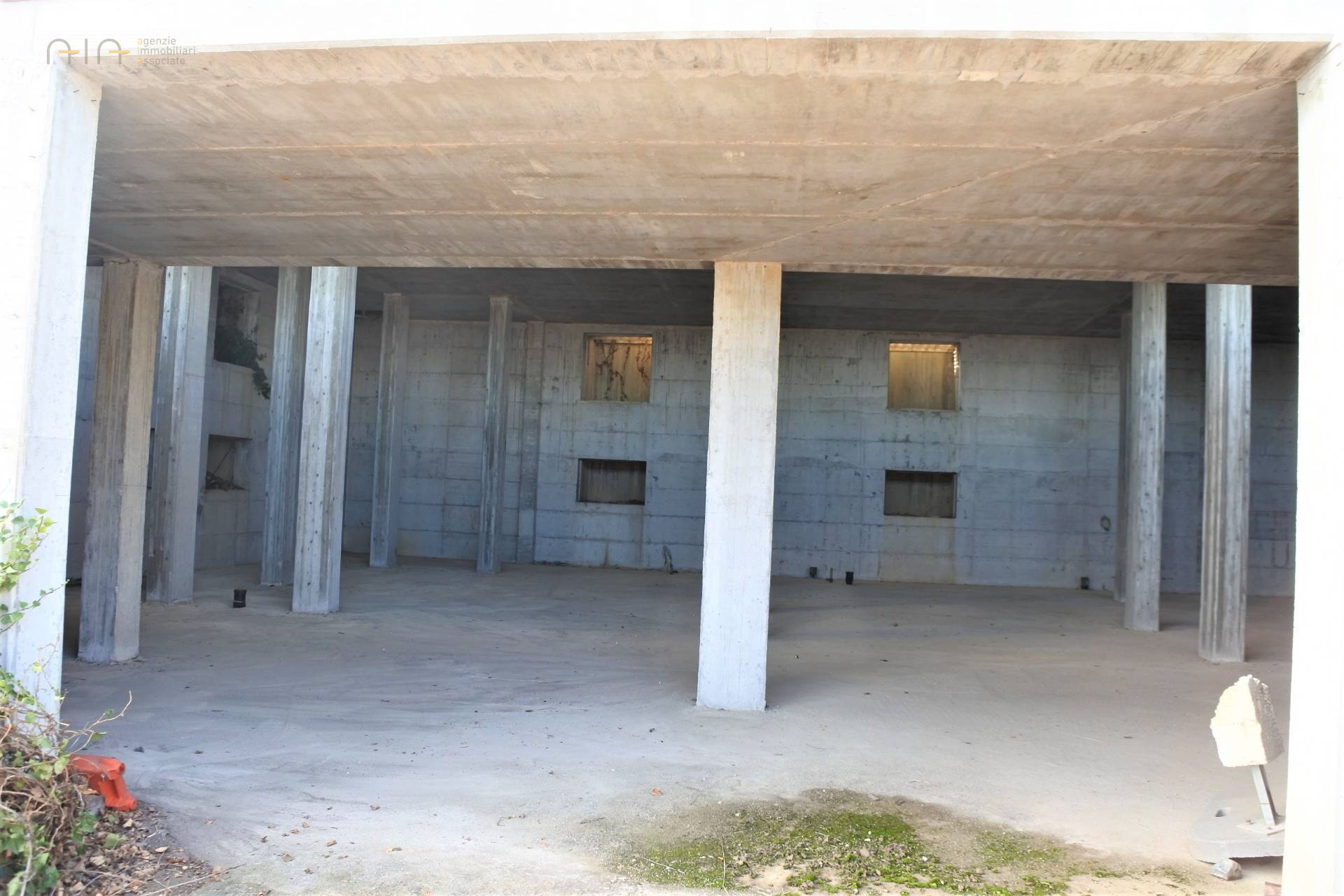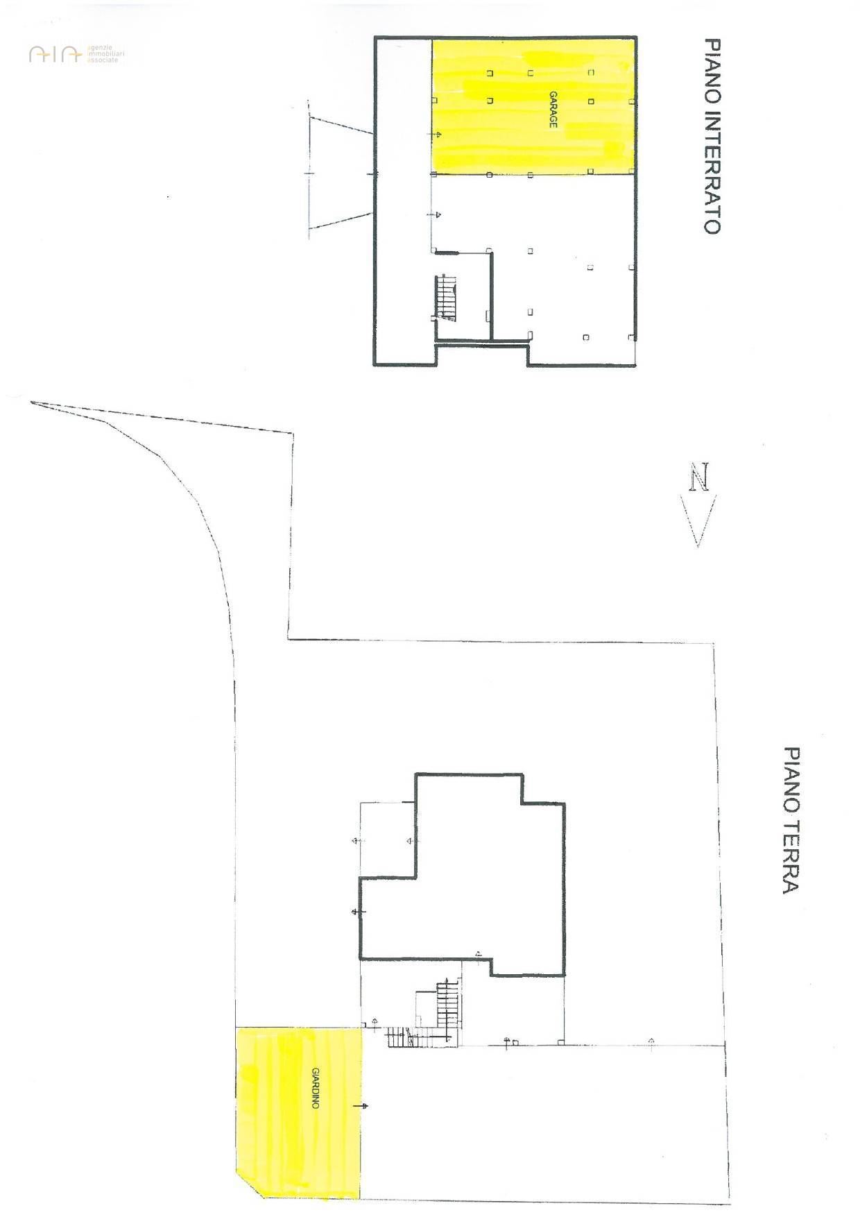 Completa la proprietà: un ampio locale garage/cantina di mq 105 circa ad altezza di mt. 4,50, posto al piano interrato, con scala di comunicazione interna per il piano terra, zona prevista per l'ingresso autonomo dell'abitazione; un frustolo di giardino di mq 80 circa al piano terra.