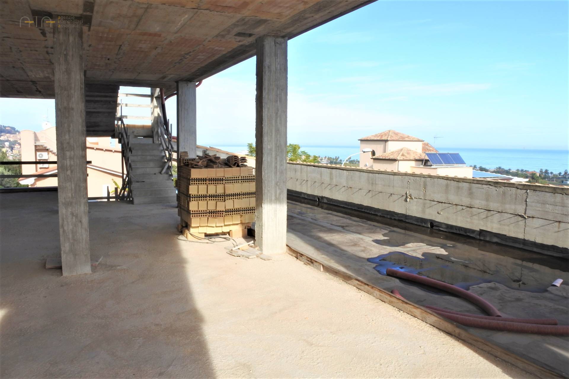 Bellissimo Appartamento in Villa bifamiliare, allo stato grezzo, con straordinaria vista mare a 180°. Il fabbricato è costituito da solo due unità abitative, distribuite orizzontalmente, e l'abitazione oggetto di Vendita è posto al piano primo ed ultimo, della superficie di mq 124 circa oltre ad una superficie esterna balconi/terrazzo di mq 80 circa, e sovrastante soffitta al piano terzo con altezza massima mt 1,5 con un terrazzo di mq 27 circa.