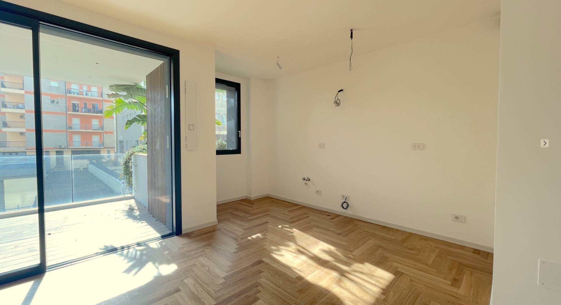 Appartamento di nuova costruzione, sito al piano primo con ascensore, delle dimensioni di 64 m² circa composto da ampio soggiorno con angolo cottura, disimpegno, una camera da letto matrimoniale, bagno con finestra e comodo ripostiglio. Completa la proprietà una balconata in prossimità del soggiorno delle dimensioni di 7 mq circa con vetrata a tutta ampiezza / altezza, sufficiente per potervi soggiornare.