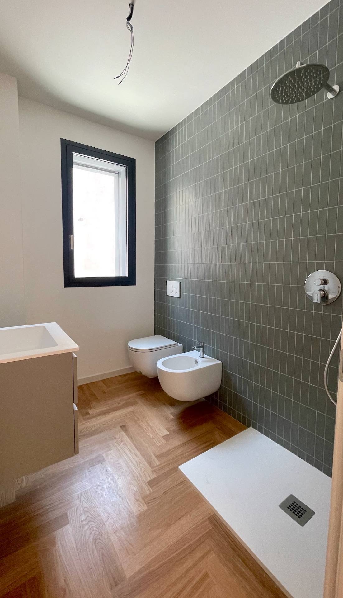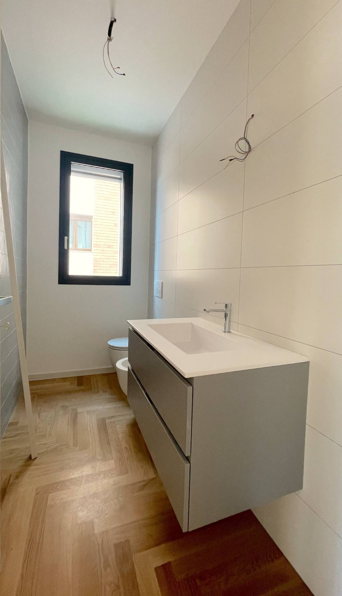 L'unità immobiliare è rifinita con materiali di primissima scelta, come pavimentazione in parquet o grès porcellanato, infissi ad alta efficienza termo-acustica, cappotto, riscaldamento a pavimento, clima DAIKIN, impianto di deumidificazione e ricircolo dell'aria, tapparelle microforate elettriche ed - in generale - con materiali a scelta dell'acquirente su un ricco capitolato incluso nel prezzo.