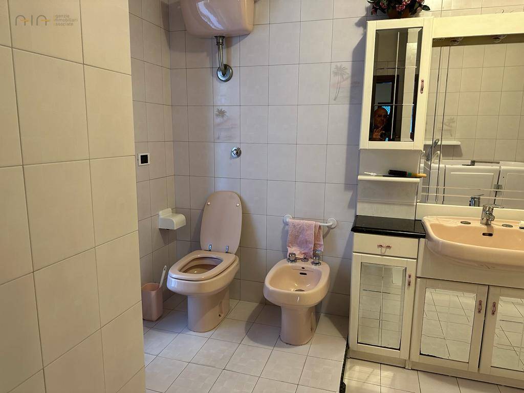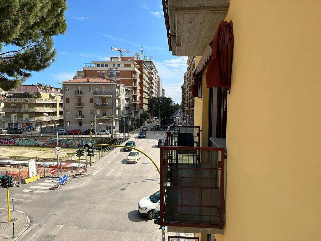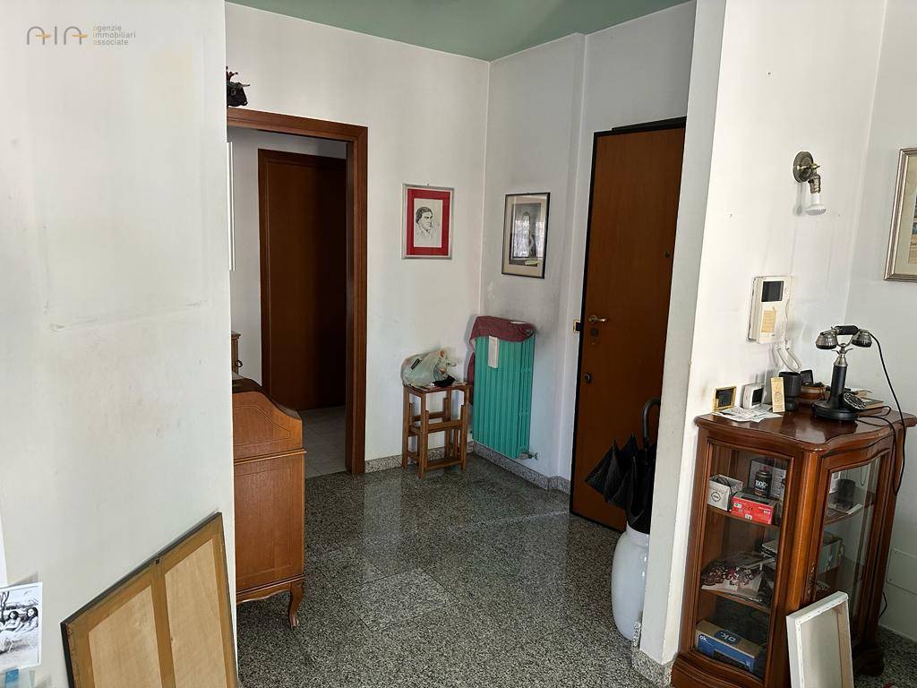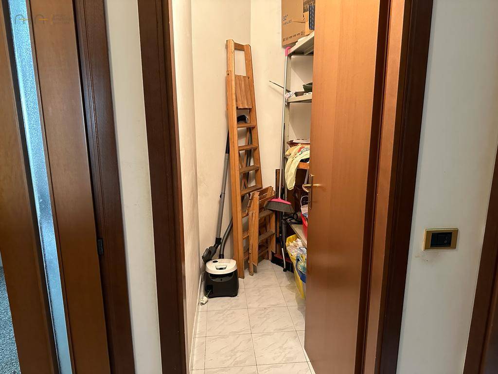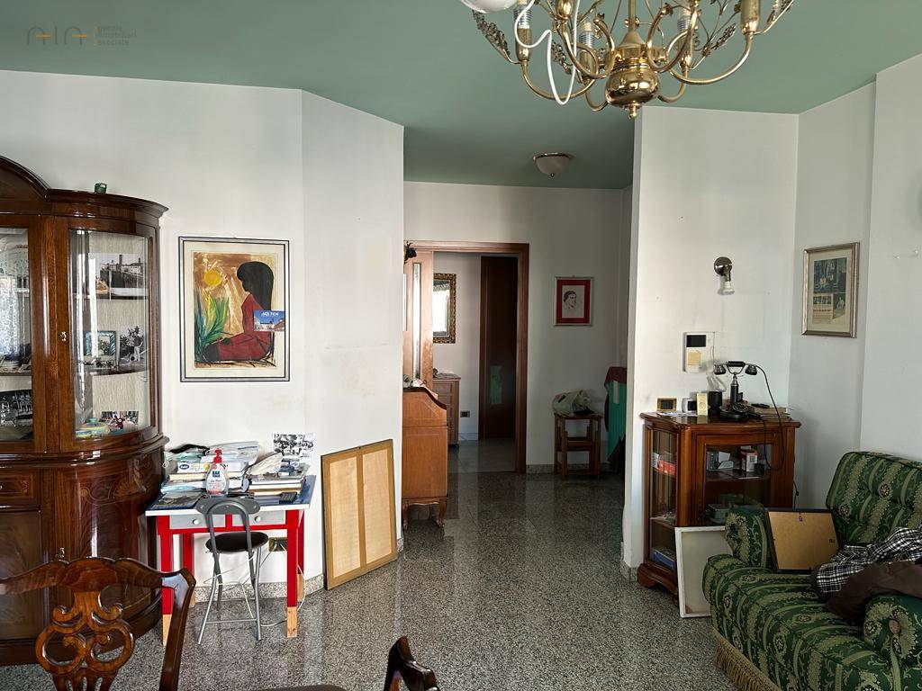 Appartamento delle dimensioni di circa 135 mq, posto al secondo piano e completo di ingresso, ampio soggiorno con camino e vista mare, cucina abitabile, tre camere da letto di cui due matrimoniali e una doppia, due bagni di cui uno con finestra, ripostiglio, 5 balconi per complessivi 12 mq circa oltre a doppia cantina di circa 15 mq al piano seminterrato. L'immobile si presenta in buone condizioni rifinito con materiali tipici dell'epoca di costruzzione ( anni 90'), pavimentazione in granito nel reparto giorno e monocottura nel reparto notte e cunica, infissi in legno con vetro camera, portoncino blindato ed impianti autonomi e a norma. L'Appartamento è inserito in un piccolo ed elegante contesto condominiale a ridosso dell'isola pedonale e vicino al mare.