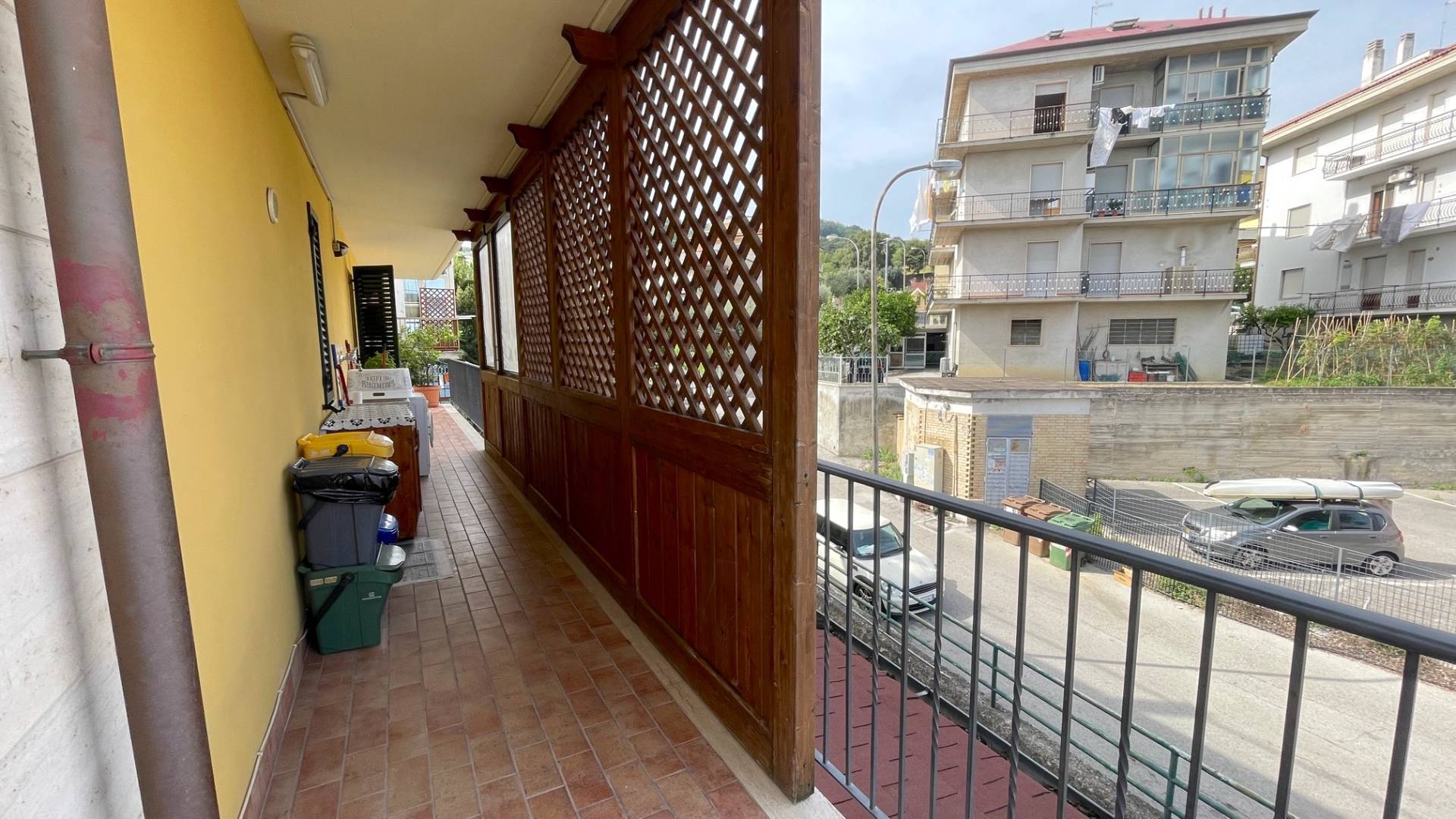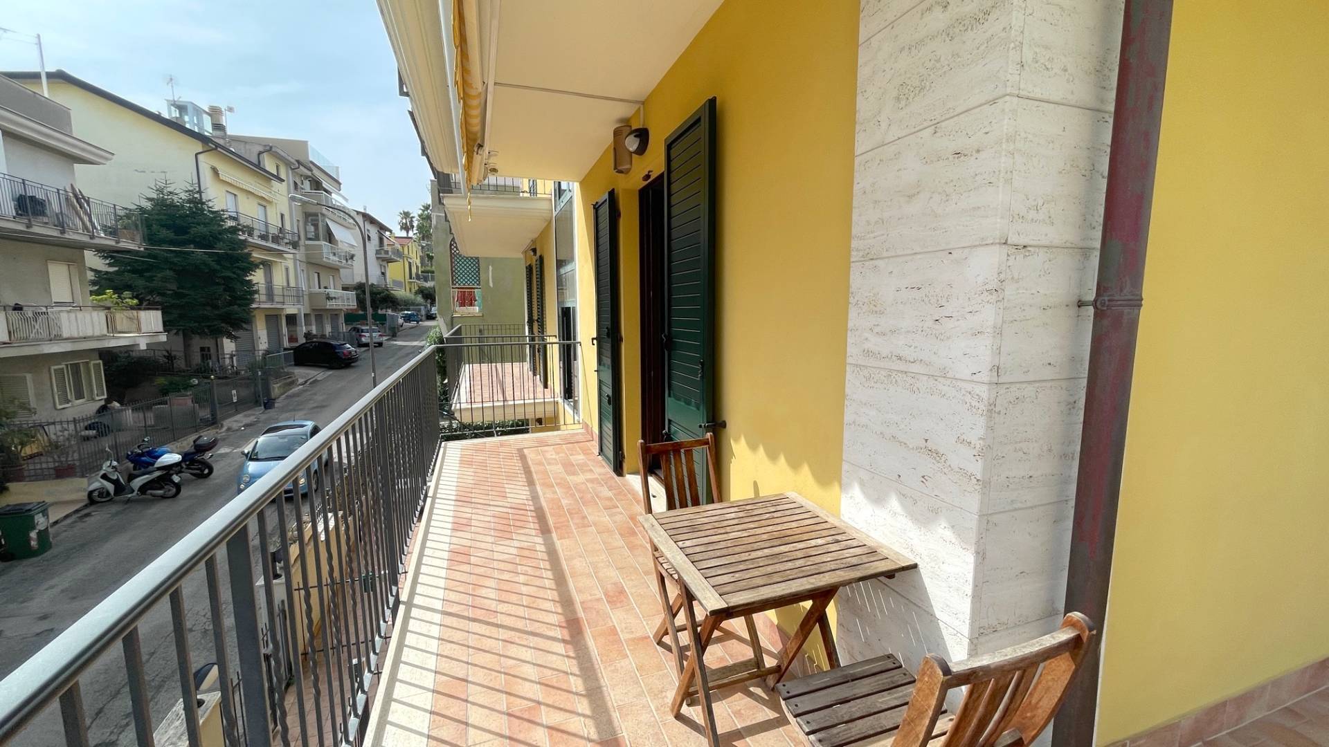 Appartamento occupante l'intero Piano Primo della palazzina, delle dimensioni di 120 mq. circa, composto da soggiorno con angolo cottura, disimpegno, 3 camere da letto (singola, media e matrimoniale), 2 bagni (principale con vasca - di servizio con doccia - entrambi finestrati) e ampi balconi perimetrali di complessivi 40 mq. circa.