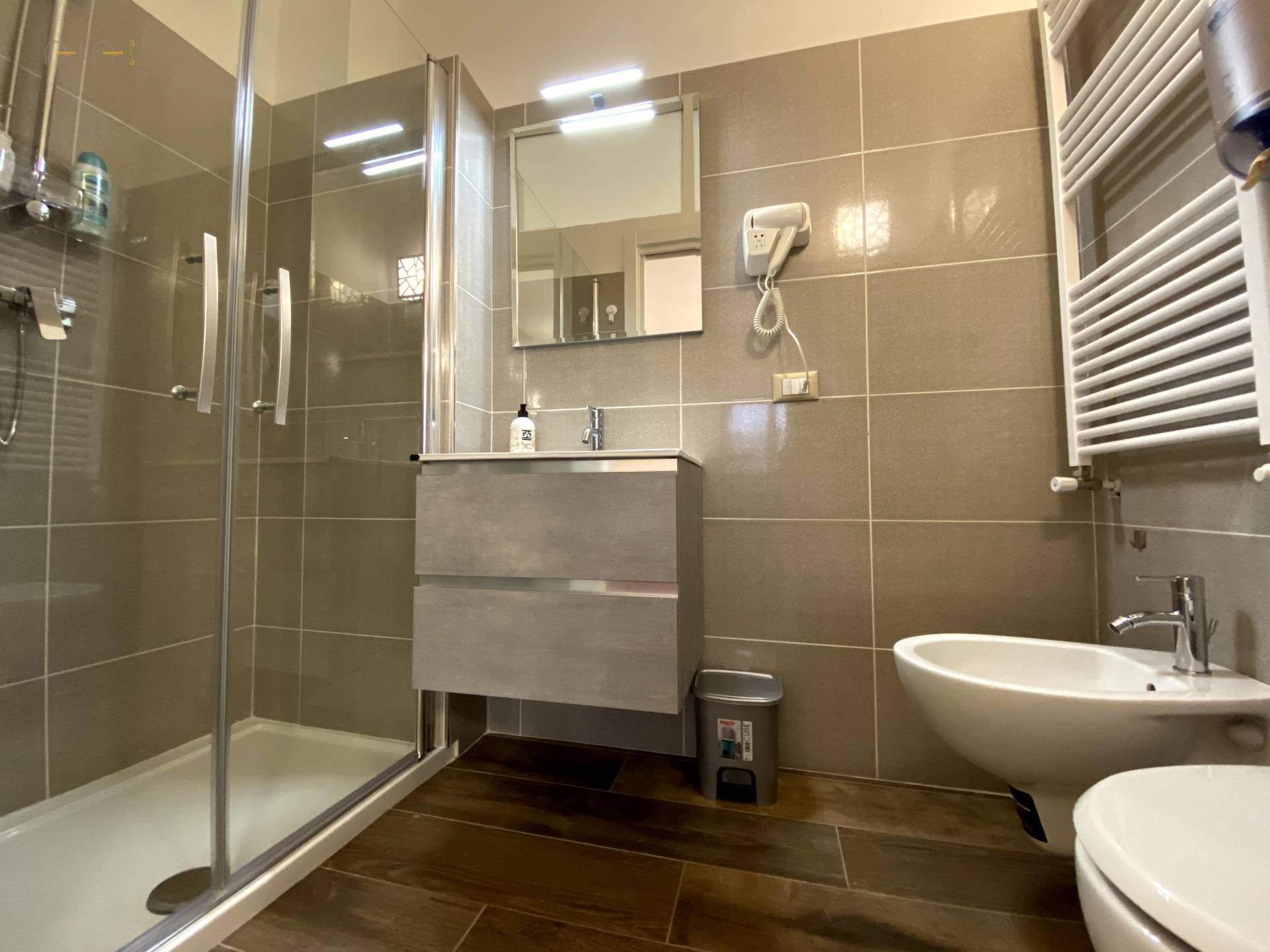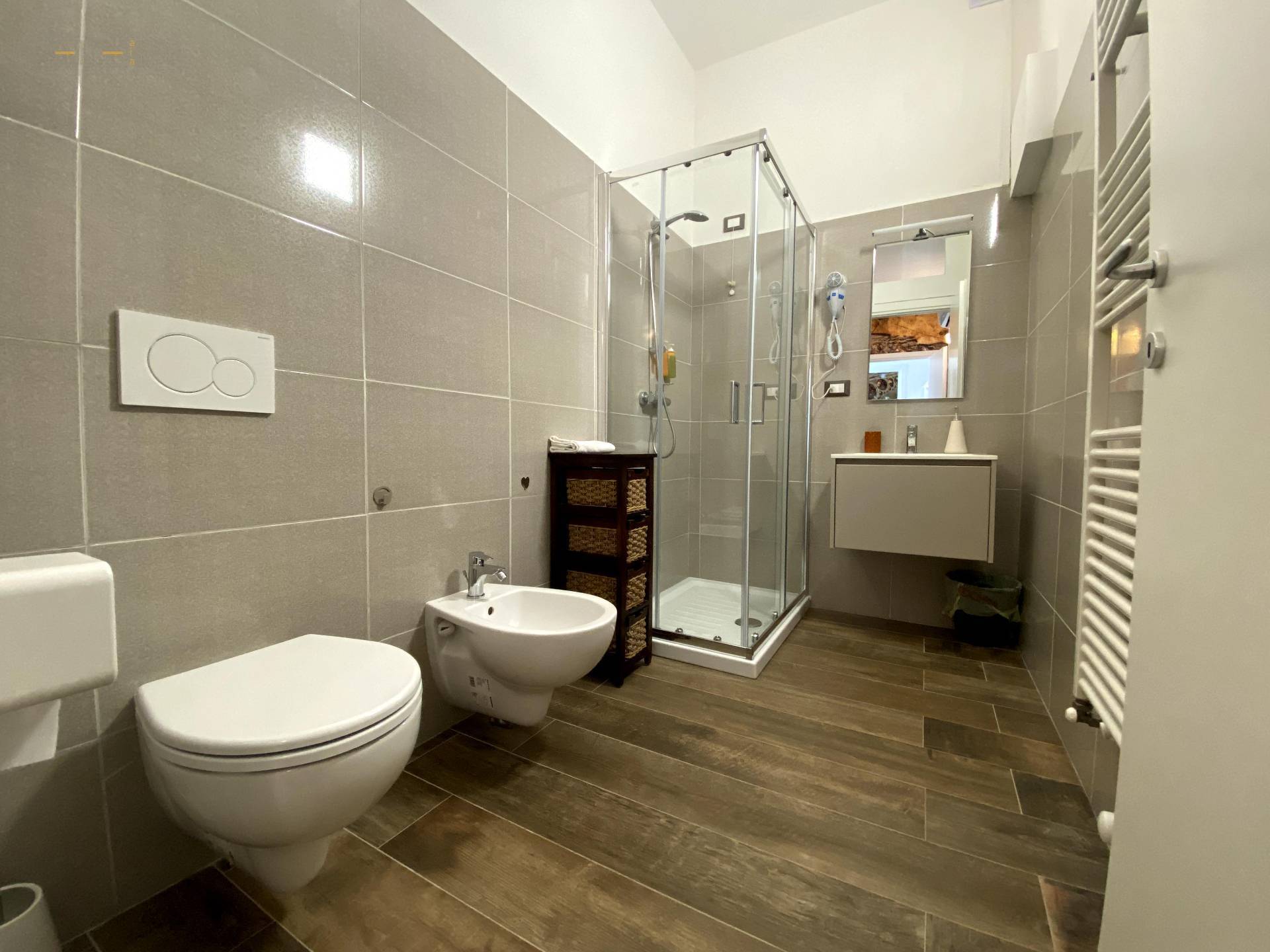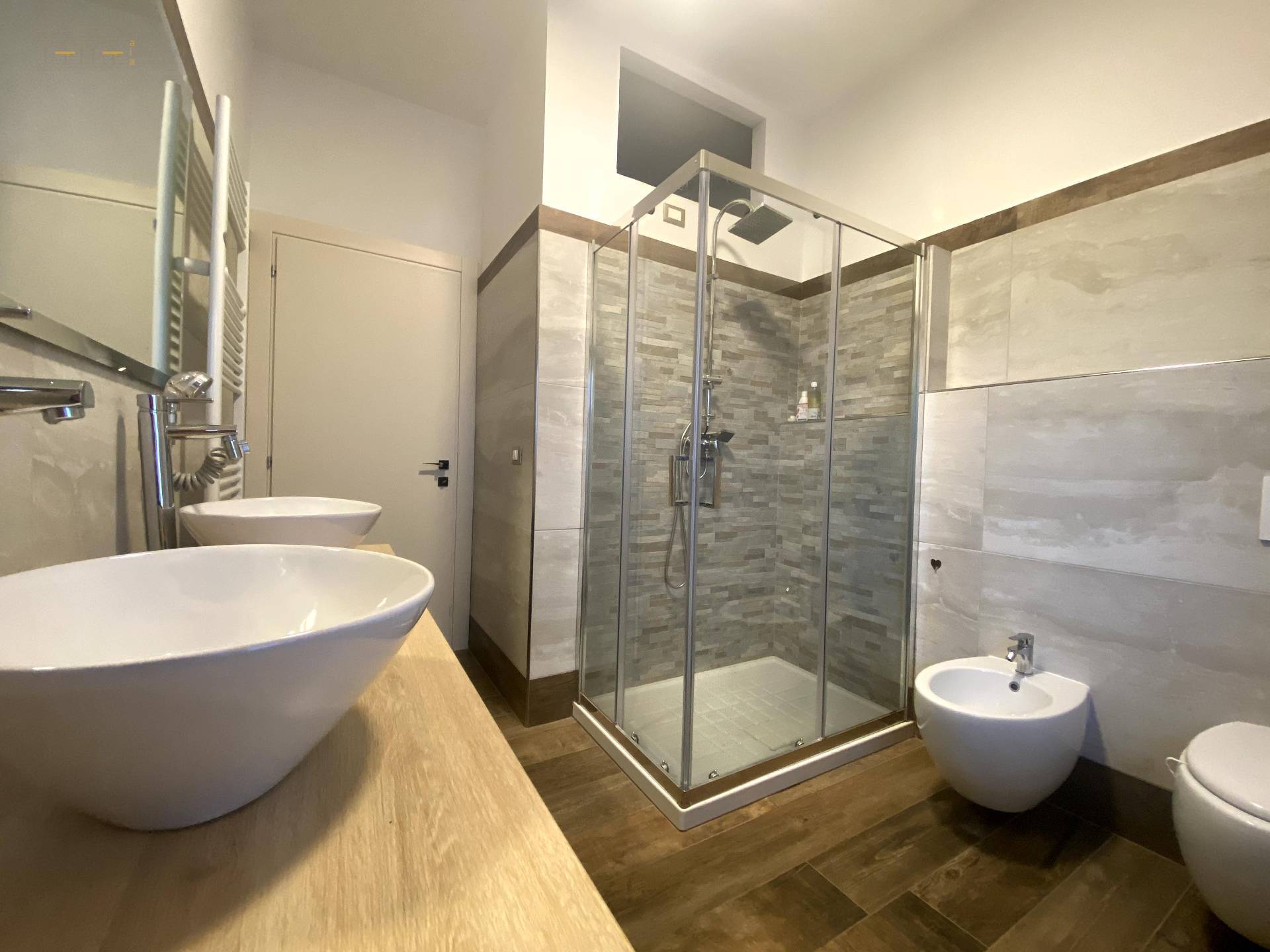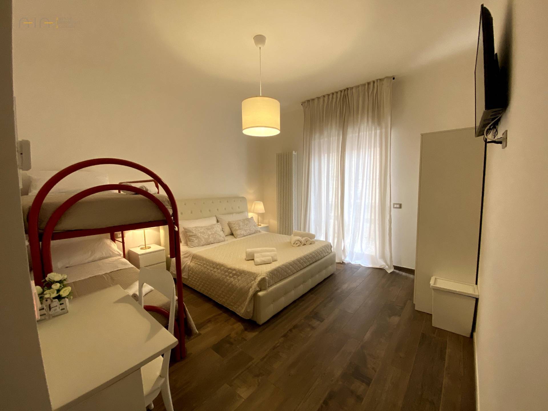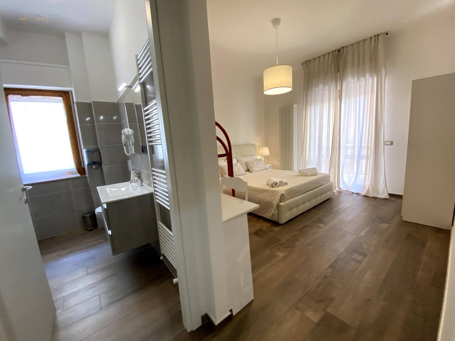 Nelle immediate adiacenze di Viale De Gasperi, ubicato all'interno di un piccolo condominio, proponiamo in Vendita un Appartamento di mq. 420 complessivi disposto su due livelli. L'Appartamento, che occupa l'intero piano terra e l'intero primo piano, è stato ristrutturato pari al nuovo nel 2020 con ottime finiture e stato di manutenzione. Al piano terra, circondato per due lati da una corte esclusiva pavimentata adibita anche a posti auto scoperti, troviamo un ampio ingresso, due stanze pluriuso con bagno, un grande salone con adiacente studio, tre camere da letto matrimoniali con bagno en suite, la centrale termica ed una scala di collegamento al piano superiore. Il primo piano, dotato doppio ingresso sul pianerottolo condominiale, è suddiviso in una ampia zona soggiorno con cucina a vista, 6 camere matrimoniali con bagno en suite, un locale lavanderia ed un balcone a servizio di tutte le stanze del piano. Per le sue dimensioni e distribuzione interna, l'Appartamento può essere trasformato in 4 unità immobiliari distinte ed indipendenti, effettuando poche modifiche interne. Ubicato in una zona servitissima ed a breve distanza anche dal mare, l'Appartamento è ottimo per più nuclei familiari o per attività imprenditoriali tipo bed&breakfast, o studi professionali.