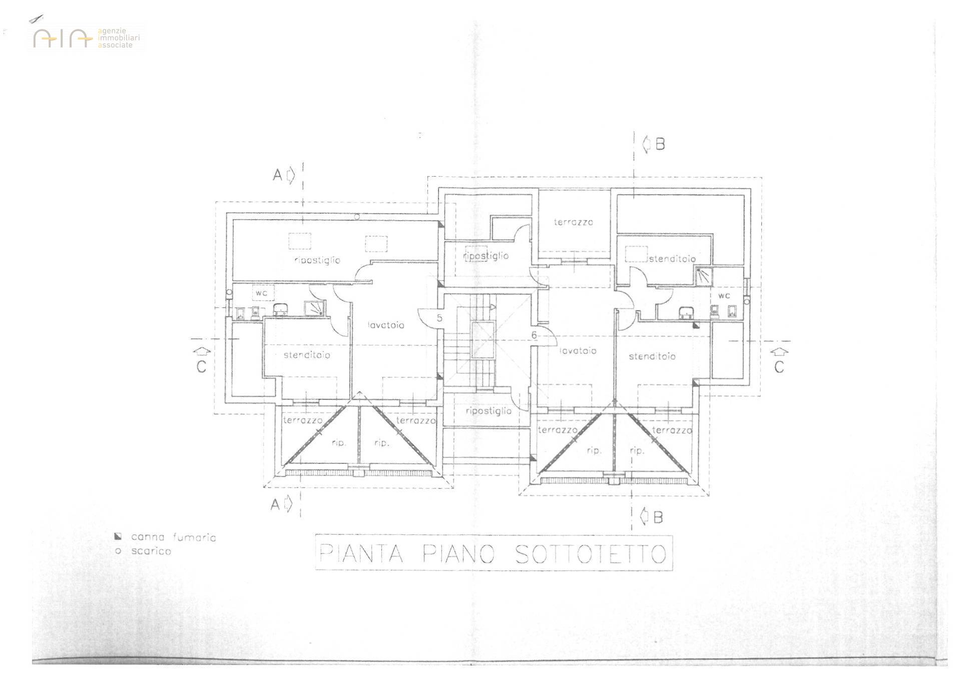 - Piano secondo mansardato della superficie di mq 152 circa, escluso il vano scala, composto da due appartamenti attualmente privi di divisori interni ma progettati per avere uno di mq 90 circa oltre balconi di mq 13 circa, con tre camere da letto, e l'altro di mq 62 oltre balconi di mq 6 circa, con due camere da letto;