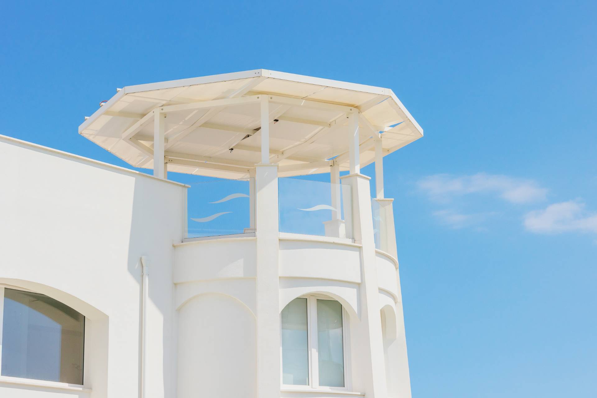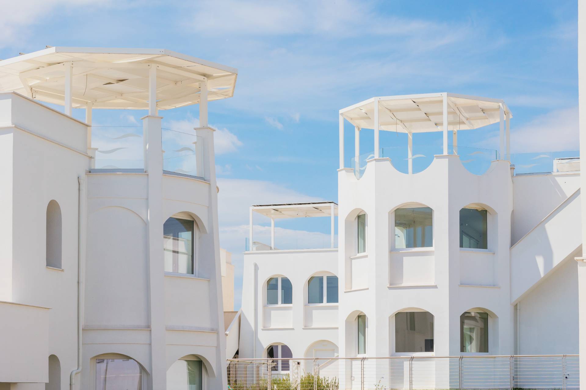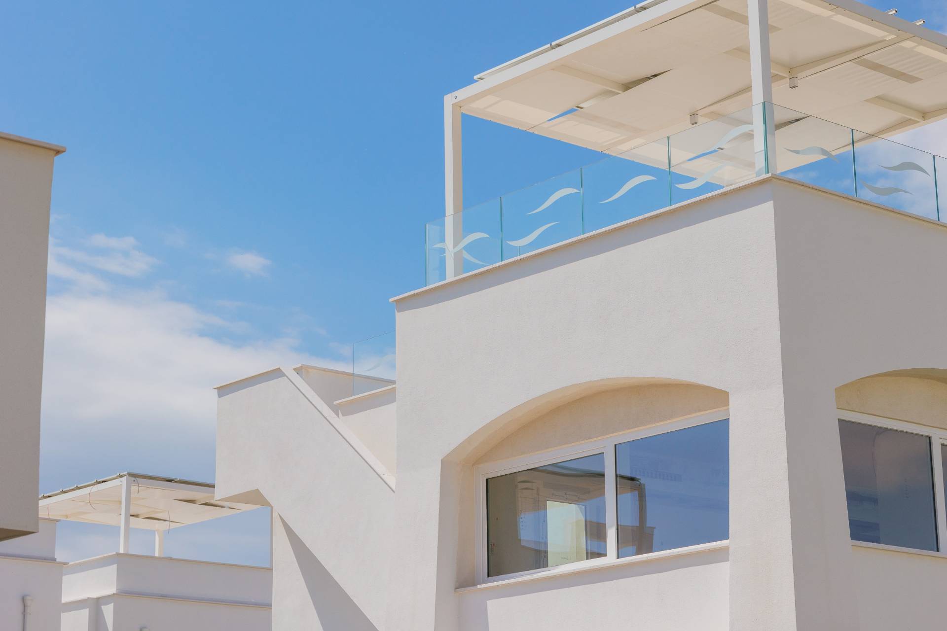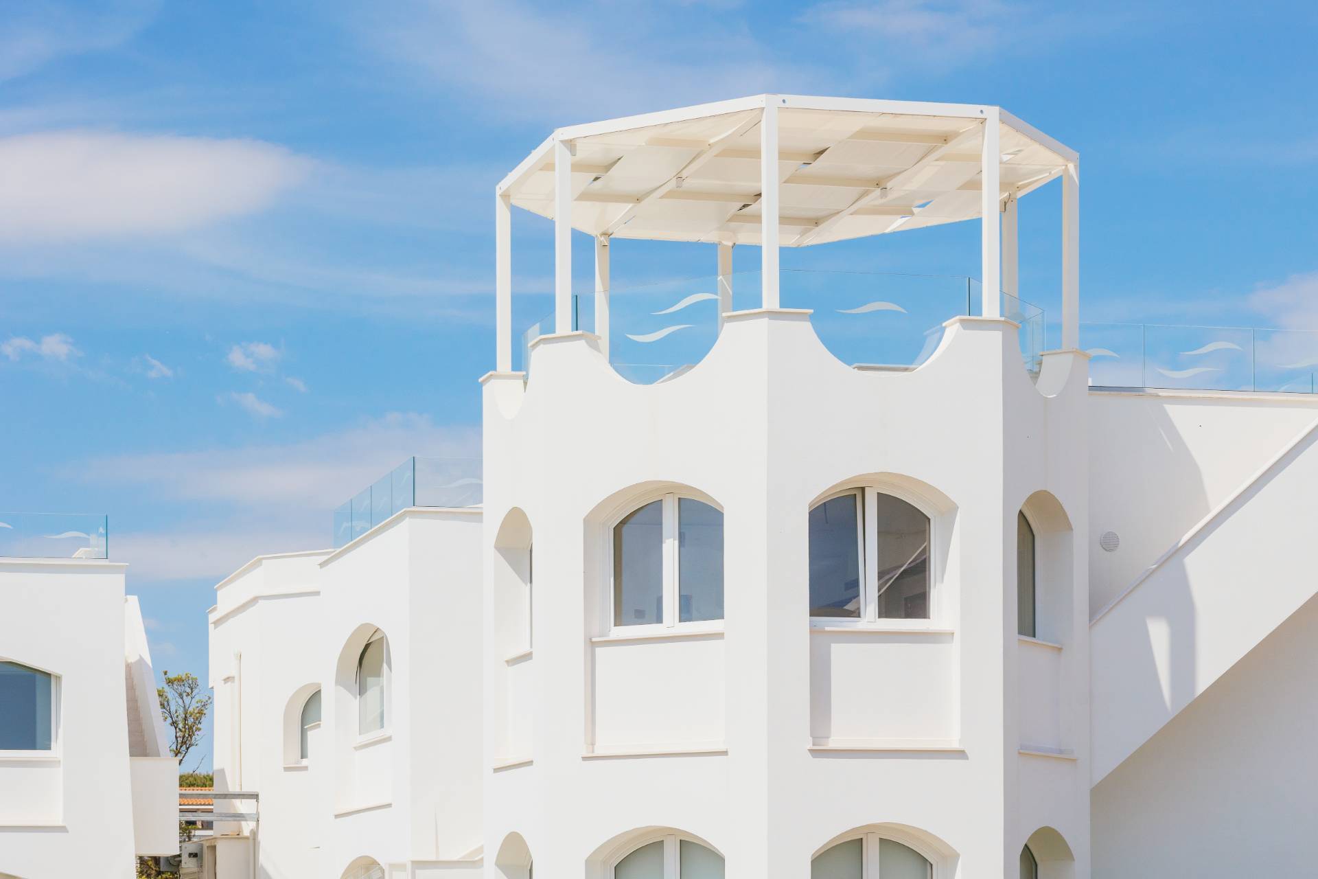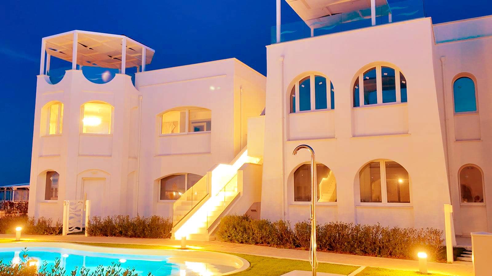 - Piano secondo con meravigliosa terrazza solarium privata al piano superiore delle dimensioni di 78 mq circa, con vista del mare, allestita con cucina all'aperto e gazebo ombreggiante.
