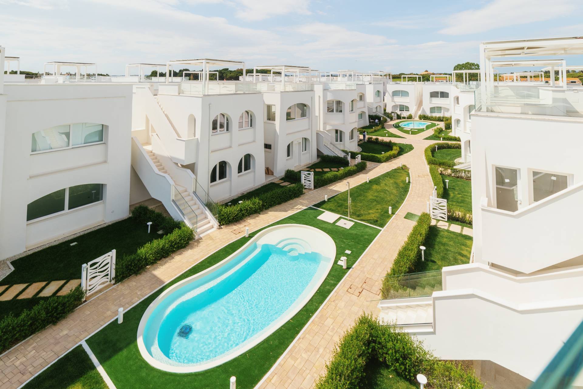 La residenza, di nuova costruzione dispone di ingresso completamente indipendente. Realizzato con rifiniture veramente di alto pregio come pavimentazione in parquet e gres porcellanato, infissi di alta qualità, impianto di climatizzazione caldo freddo, predisposizione con sistema domotica di controllo a distanza degli impianti dell'alloggio.
