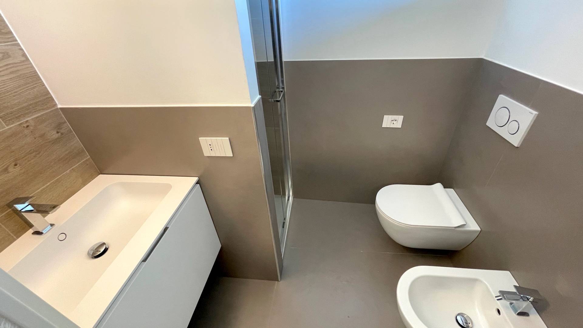 L'abitazione vanta finiture di pregio, tra cui pavimenti in gres effetto resina di grande formato, riscaldamento a pavimento, climatizzazione in tutti gli ambienti e predisposizione per impianto di allarme.