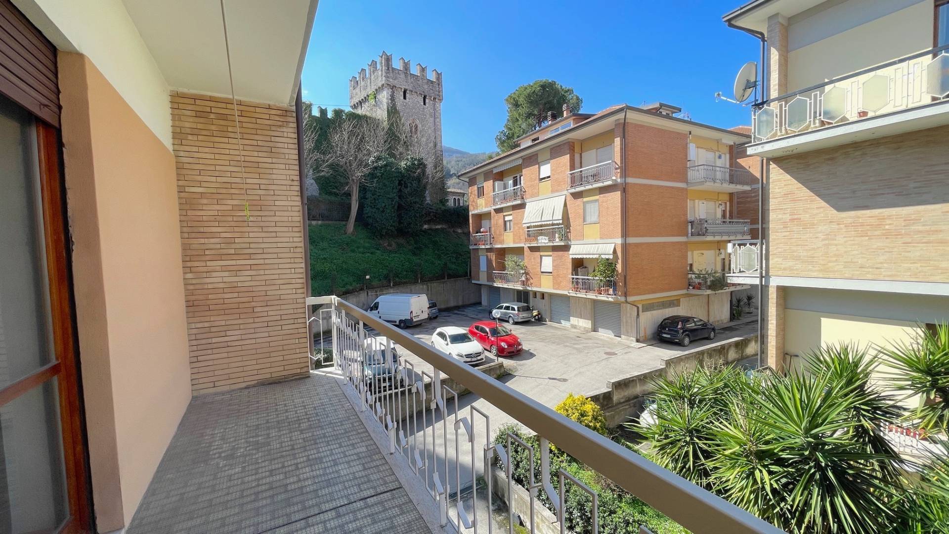 Appartamento al Piano Secondo, delle dimensioni di 150 mq. circa, composto da ampio ingresso, soggiorno, cucina abitabile con retro, 4 camere da letto (2 matrimoniali + 2 medie), 2 bagni (principale con doccia e finestra; di servizio solo sanitari) e 4 ampie balconate di 30 mq. circa complessivi. Completo di fondaco al piano terra.