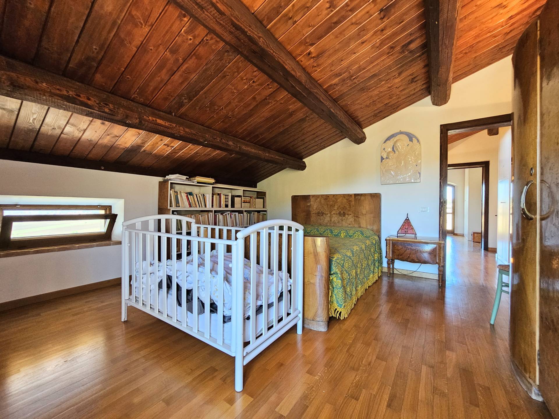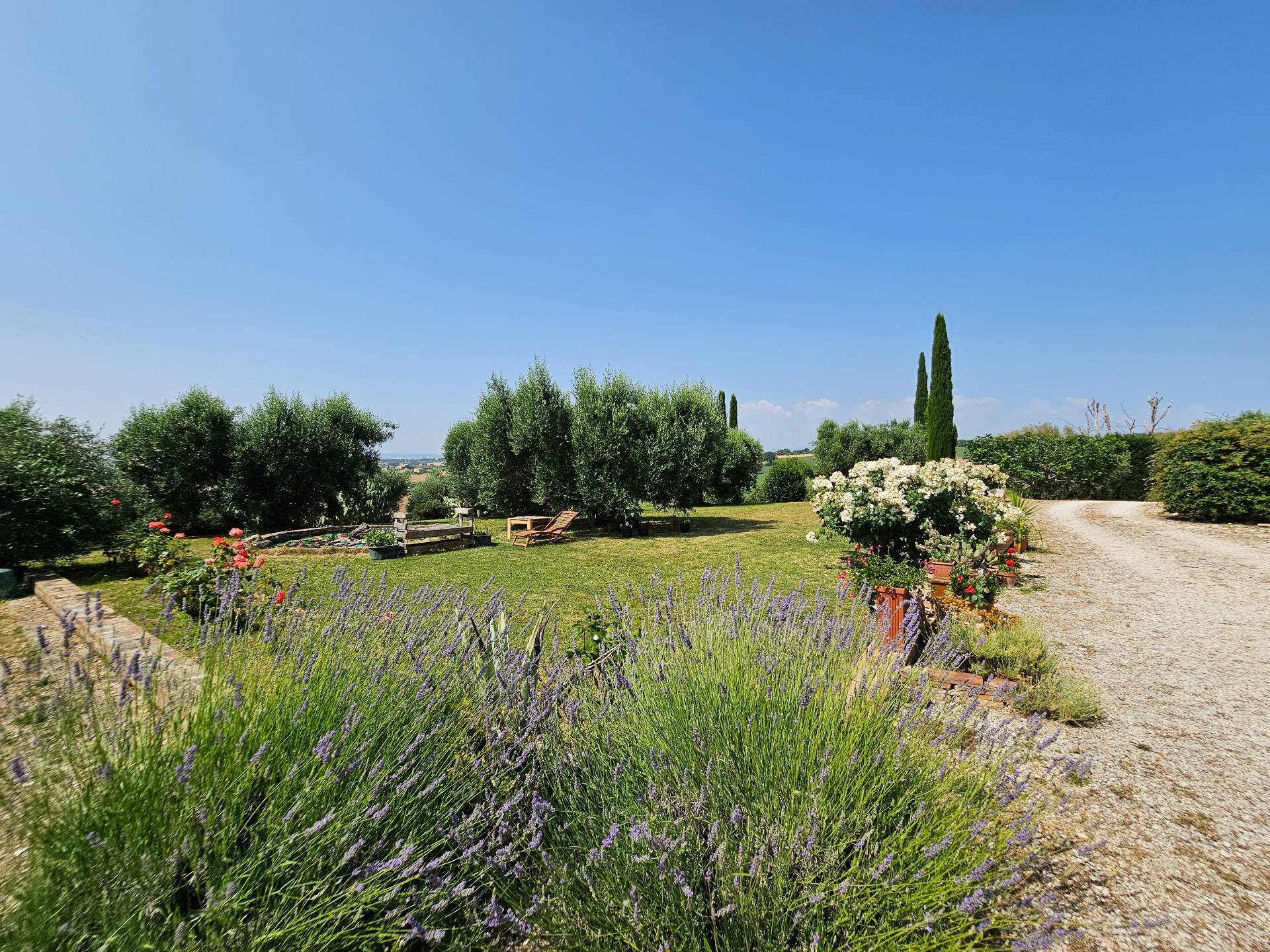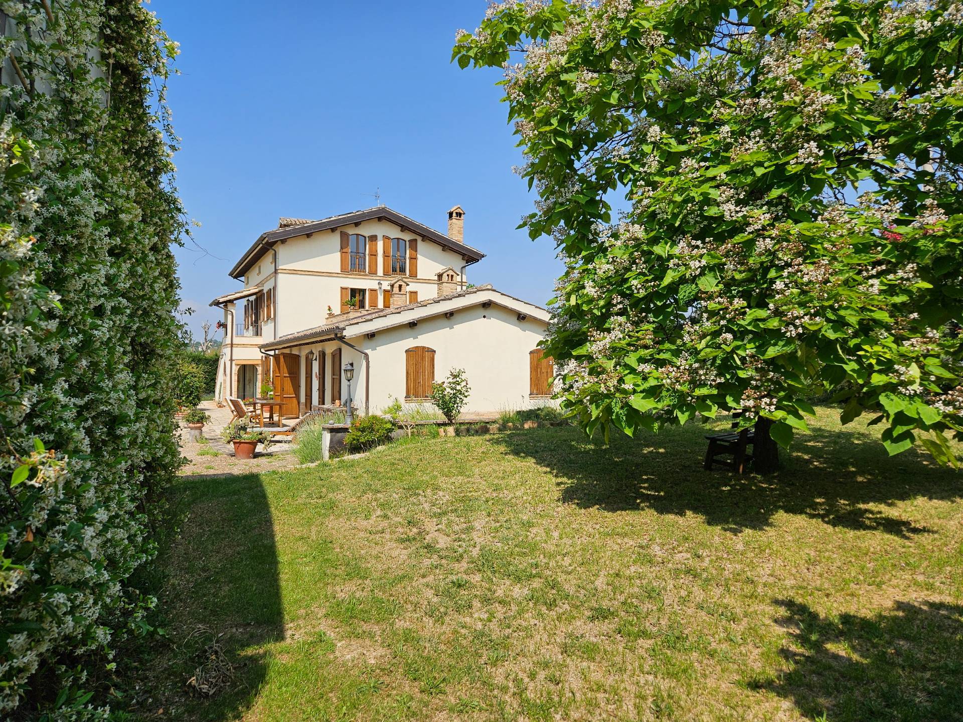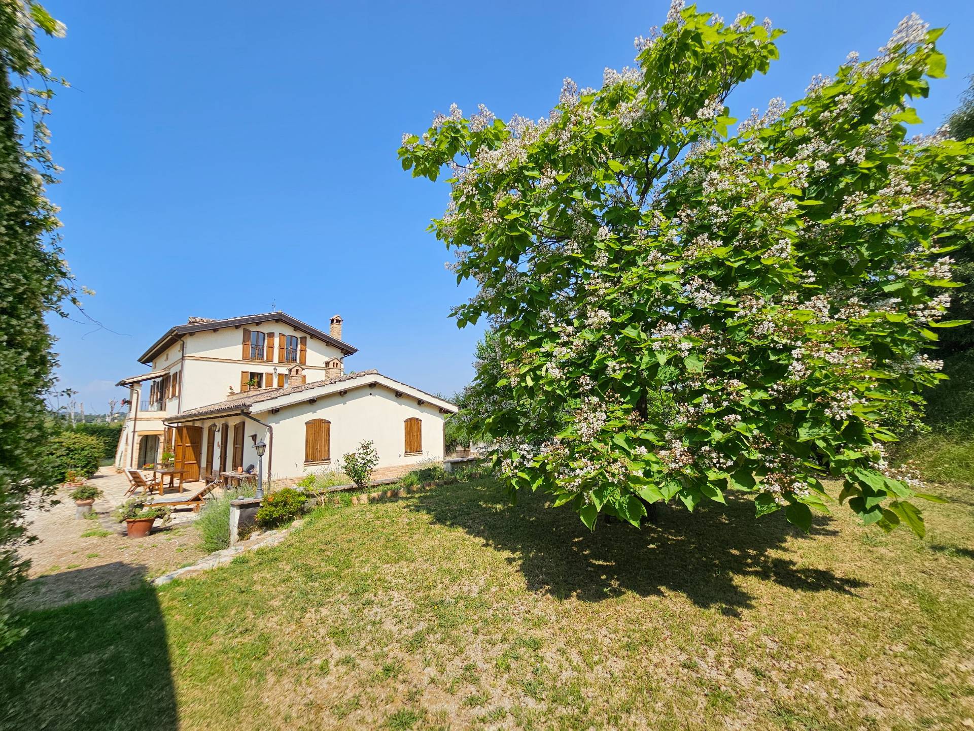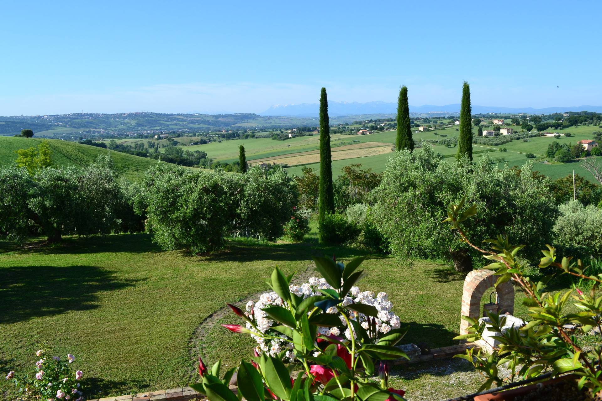 circa 2 km dal centro storico di Montecassiano, in posizione riservata ed estremamente panoramica, caratteristico casale ristrutturato con ampio giardino.