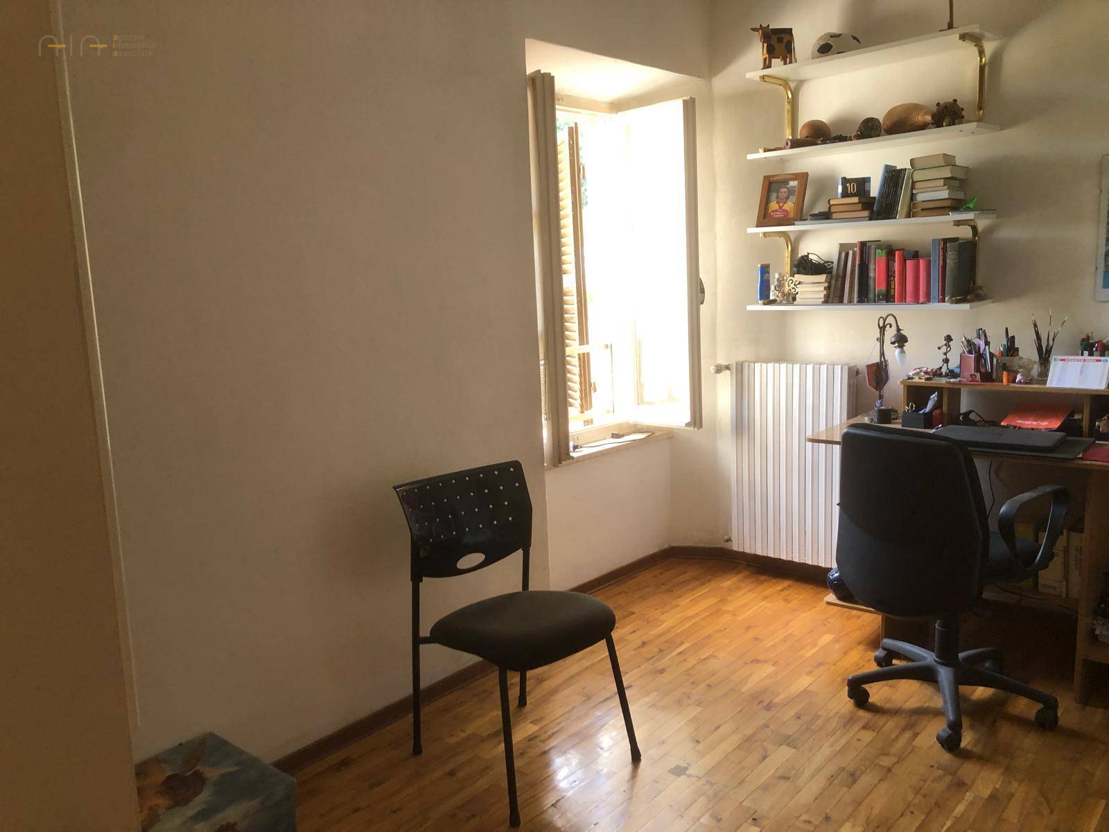 Luminoso e spazioso Appartamento posto al secondo piano, senza ascensore, per complessivi 100 mq circa, con ingresso su soggiorno/sala da pranzo, retro cucina, tre camere da letto ed un bagno; entrata dal balcone verandato di 8 mq circa. Completano la proprietà una soffitta al piano terzo sottotetto di circa 75 mq ed un locale al piano terra di circa 24 mq.