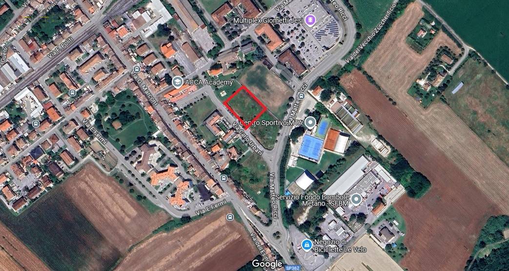 Jesi - Santa Maria del Piano, Via Matteo Ricci, a 500 metri dalla stazione FF.SS., proponiamo in Vendita lotto edificabile con destinazione residenziale Inserito in un quartiere di recente edificazione, con tutti i principali servizi, il lotto prevede una alta capacità edificatoria di mq. 3.300 di S.L.V., per la realizzazione di circa 40 appartamenti, in una o più palazzine, da progettare secondo le norme del Piano di recupero vigente. Interessante opportunità per Imprese ed Investitori. Opere di urbanizzazione già versate €uro 477.000 circa.