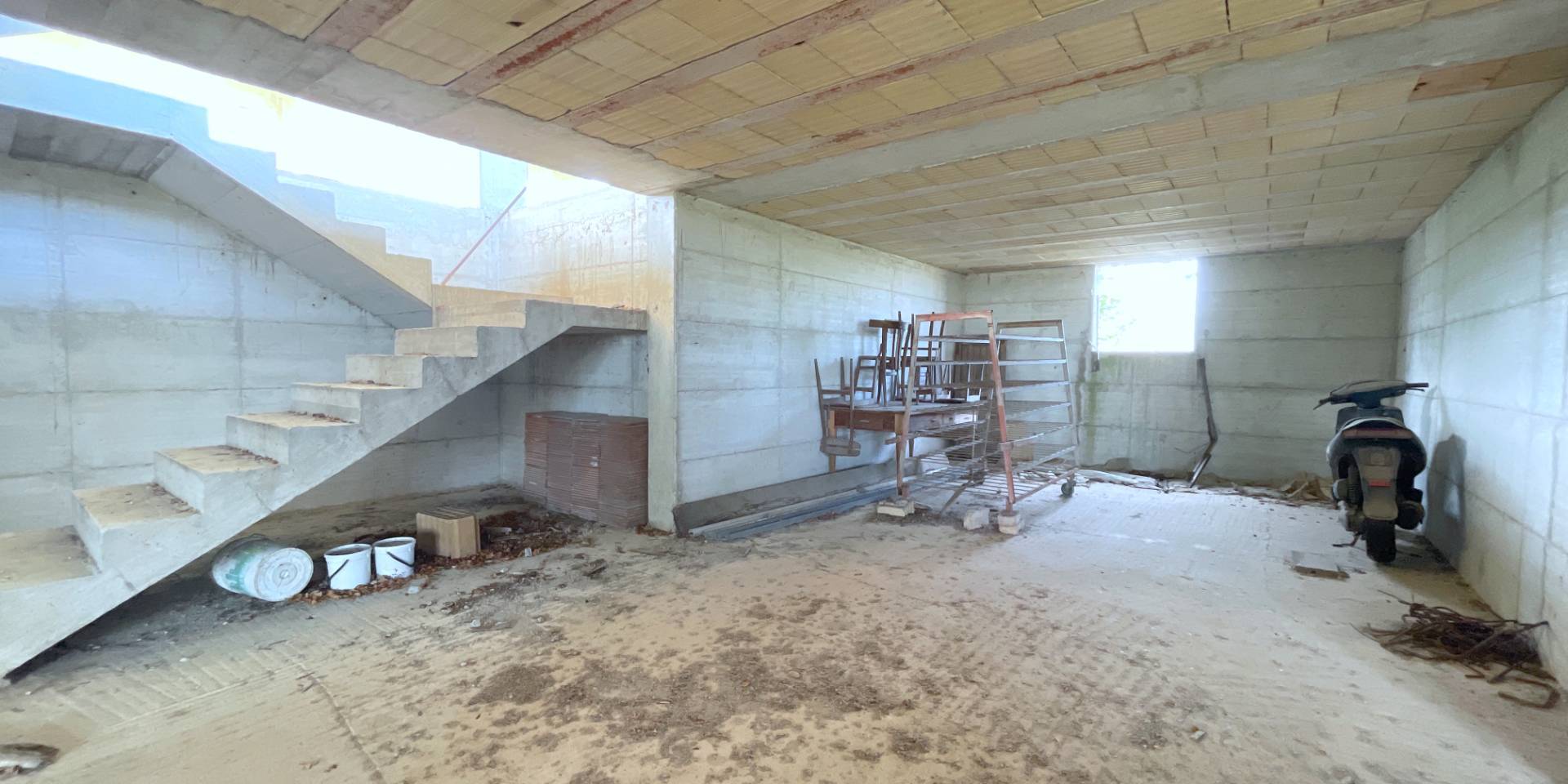 Piano seminterrato di circa 134 mq, perfetto per realizzare un'ampia taverna, un garage spazioso e locali tecnici. La struttura è dotata di scala interna che collega i piani.