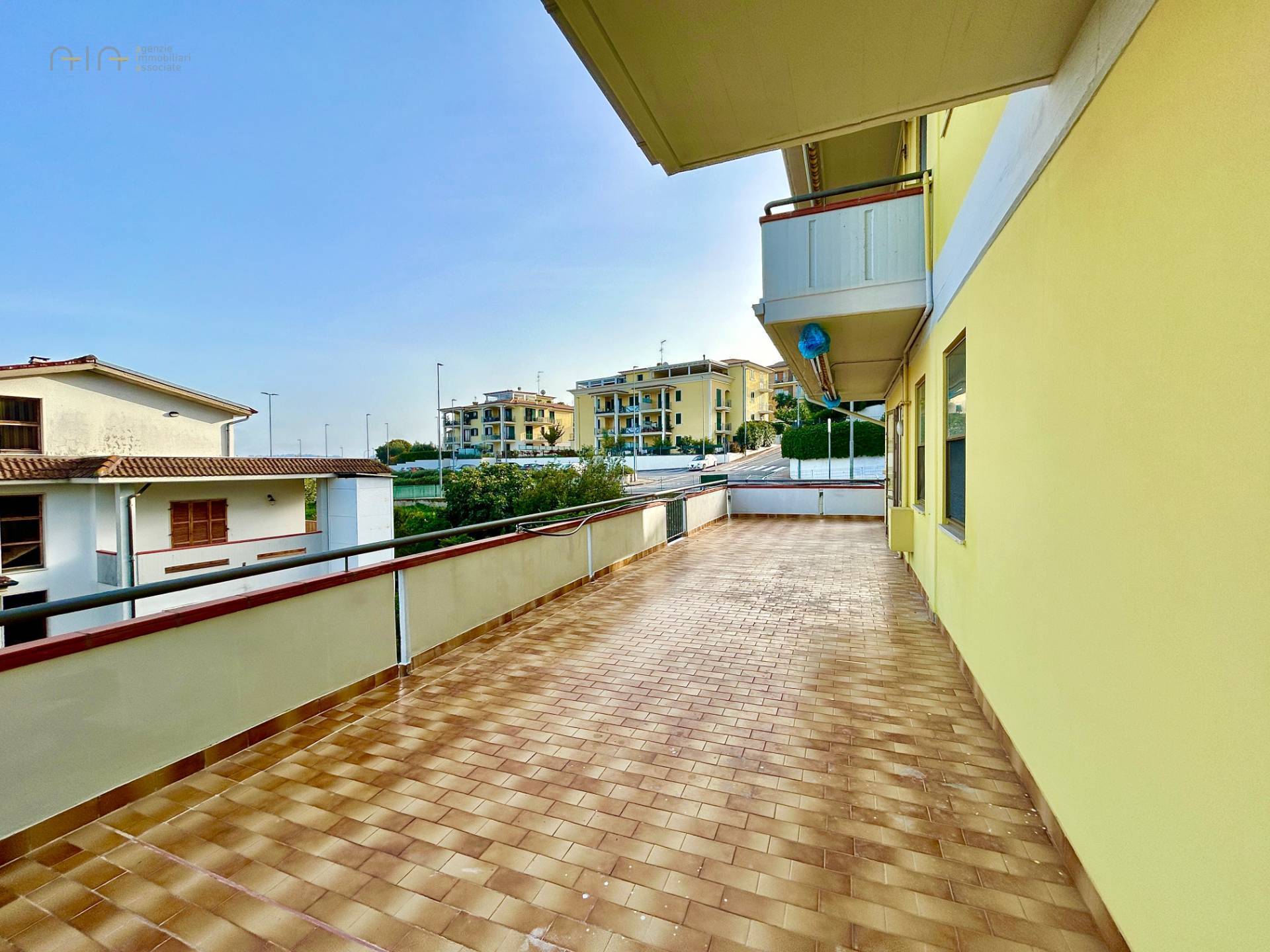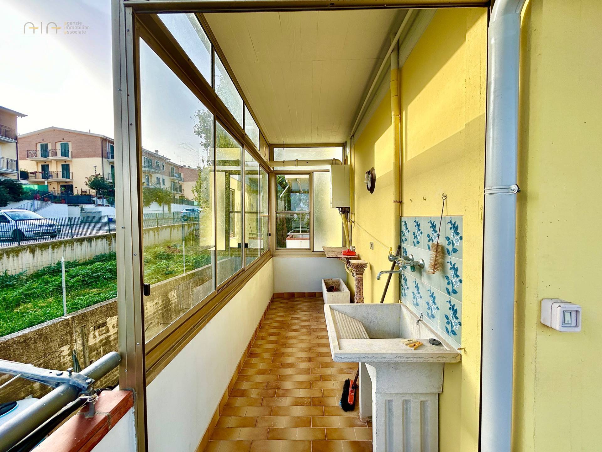 In zona residenziale e panoramica, a Monteprandone, proponiamo in Vendita un Appartamento di 142 mq circa, posto al secondo piano con ascensore, così composto: ingresso su disimpegno, soggiorno con retro cucina, salone; nella zona notte troviamo tre camere da letto matrimoniali e due servizi. Dalla zona giorno abbiamo l'accesso ad un ampio terrazzo per godere di una splendida vista panoramica ed altri due balconi accessibili dalle camere. L'immobile si presenta in discrete condizioni con pavimentazione in marmo nella zona giorno, parquet nella zona notte, portoncino d'ingresso rinforzato. Grazie alla sua quadrupla esposizione gode di un' ottima luminosità. Conclude la proprietà un garage di circa 18 mq ed un magazzino di 71 mq. Localizzata a pochi passi dal centro di Monteprandone, questa residenza è ideale per chi cerca una soluzione tranquilla.