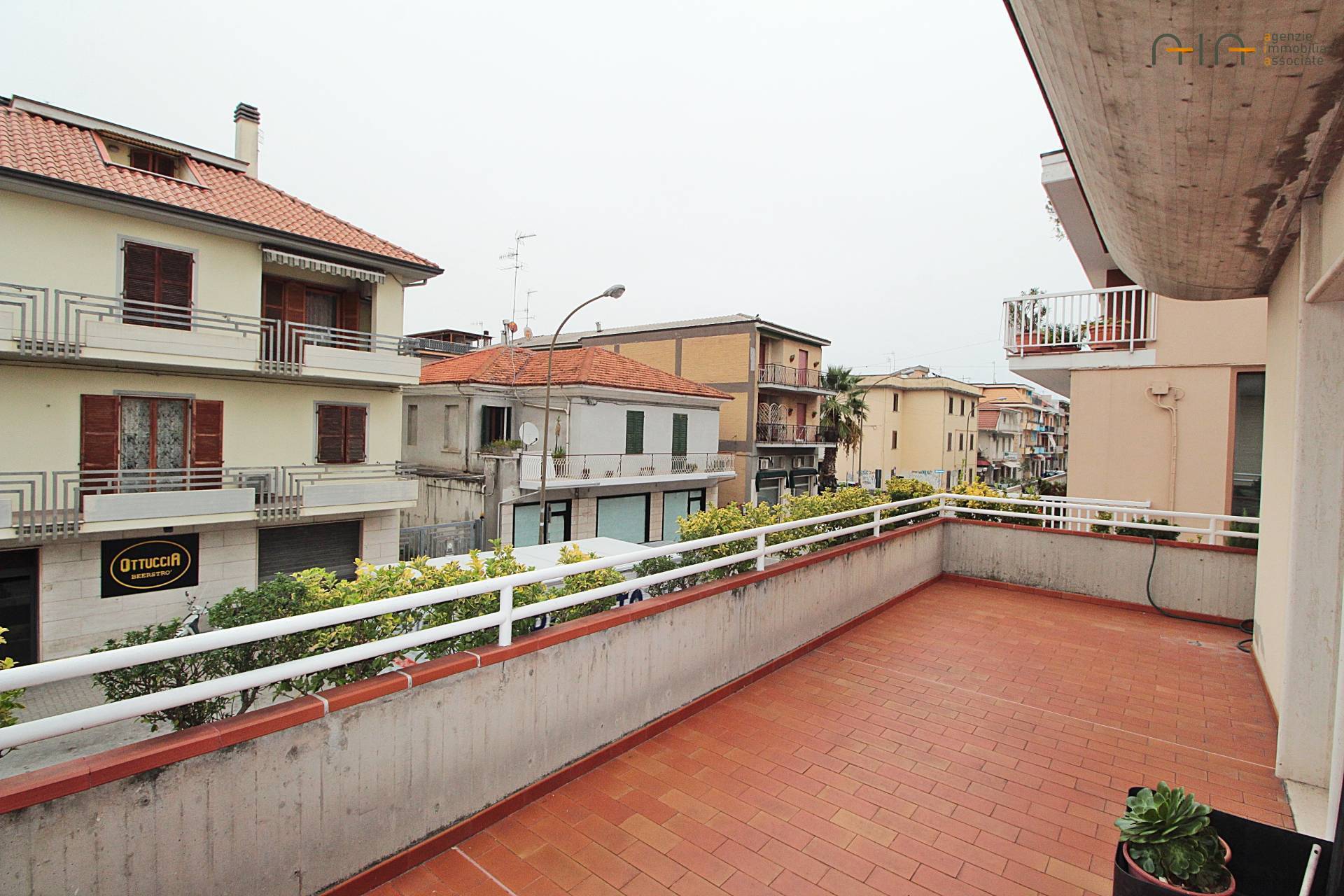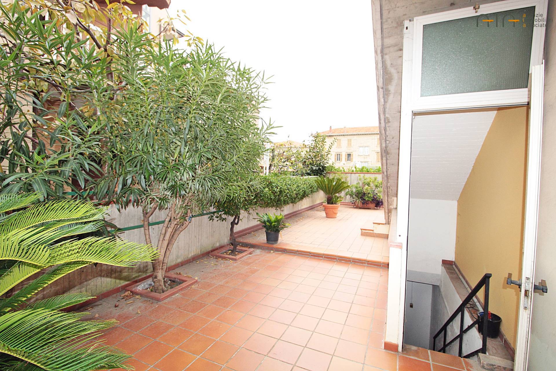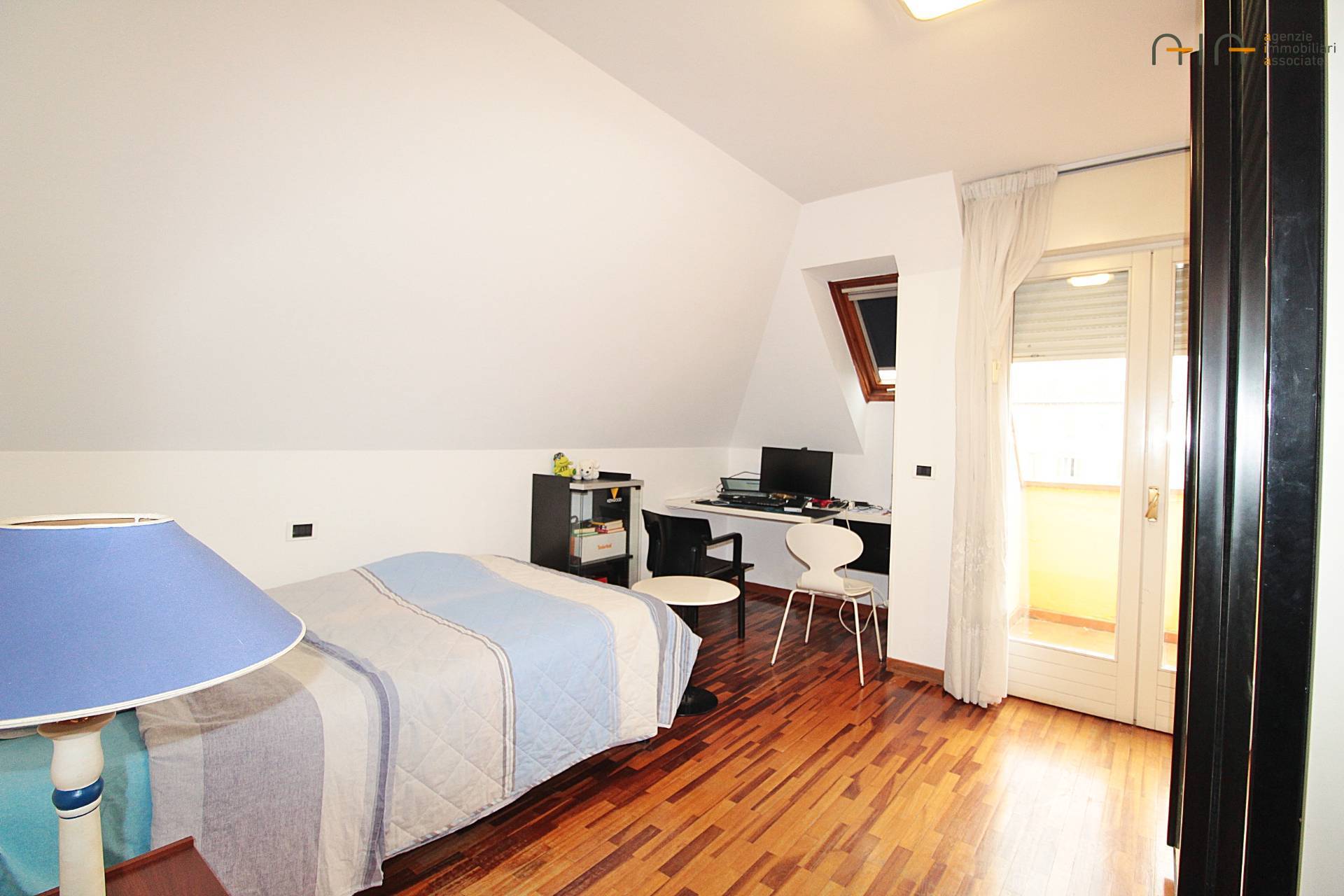 Appartamento disposto su due livelli, avente ingresso indipendente, delle dimensioni totali di mq 180 circa, composto al piano primo da ampio e luminoso soggiorno con camino, cucina abitabile, ripostiglio, cameretta e bagno finestrato con doccia, terrazza abitabile di mq 30 e balcone di mq 10 circa, oltre a scala per accedere al piano primo, composto da quattro camere da letto, bagno finestrato con doccia e quattro balconi per un totale di mq 17 circa. L'Appartamento si presenta in buone condizioni generali, con portone d'ingresso blindato, videocitofono, pavimentazione in monocottura al piano giorno e parquet nella zona notte, infissi in legno con doppio vetro, impianto termoautonomo e impianto elettrico a norma. Completano la proprietà una corte esterna pavimentata, di proprietà esclusiva, al piano terra di mq 100 circa, locale cantina di mq 15 circa e possibilità di acquistare garage di mq 74 circa nello stesso stabile con prezzo da computare a parte.