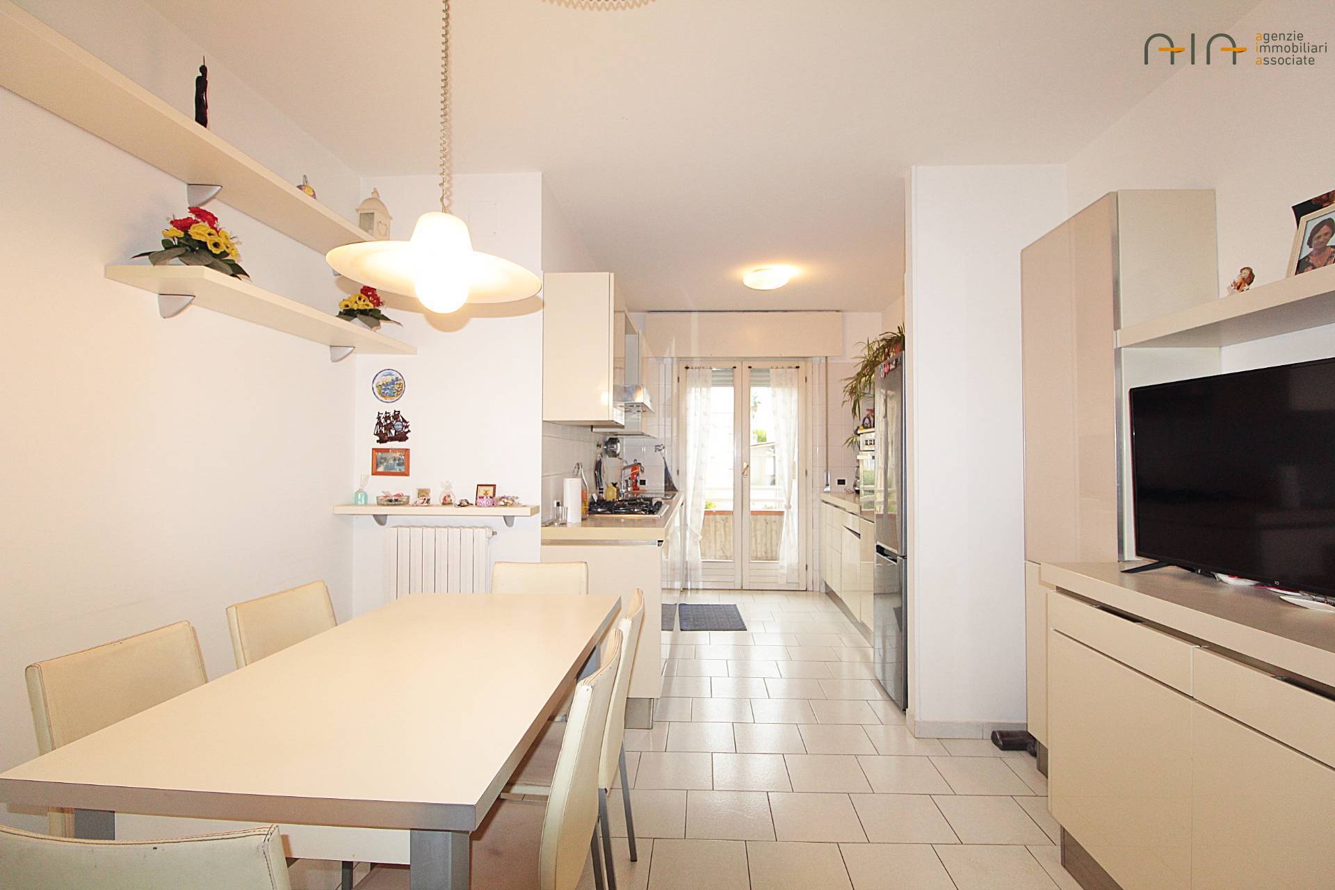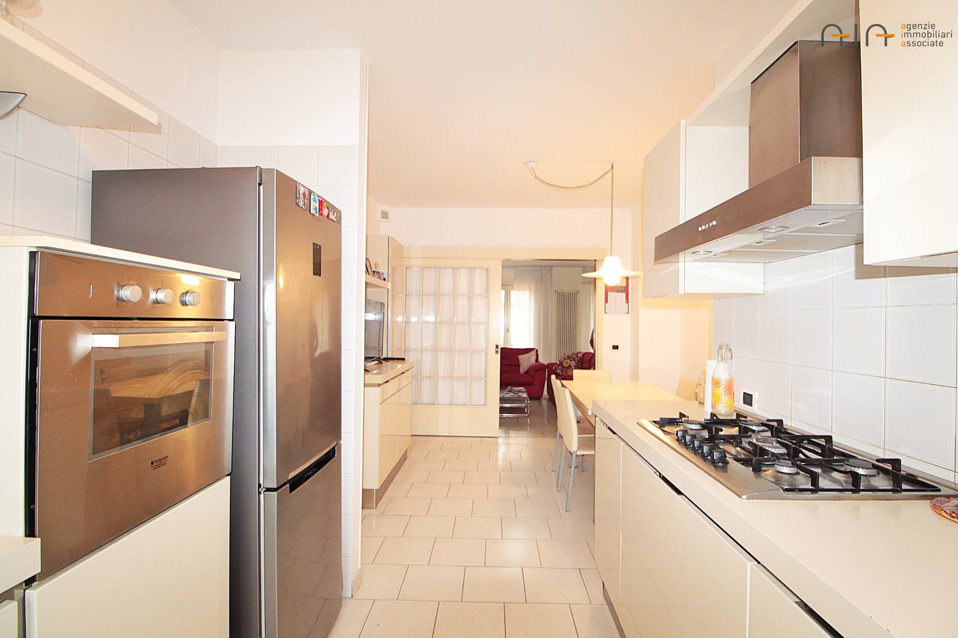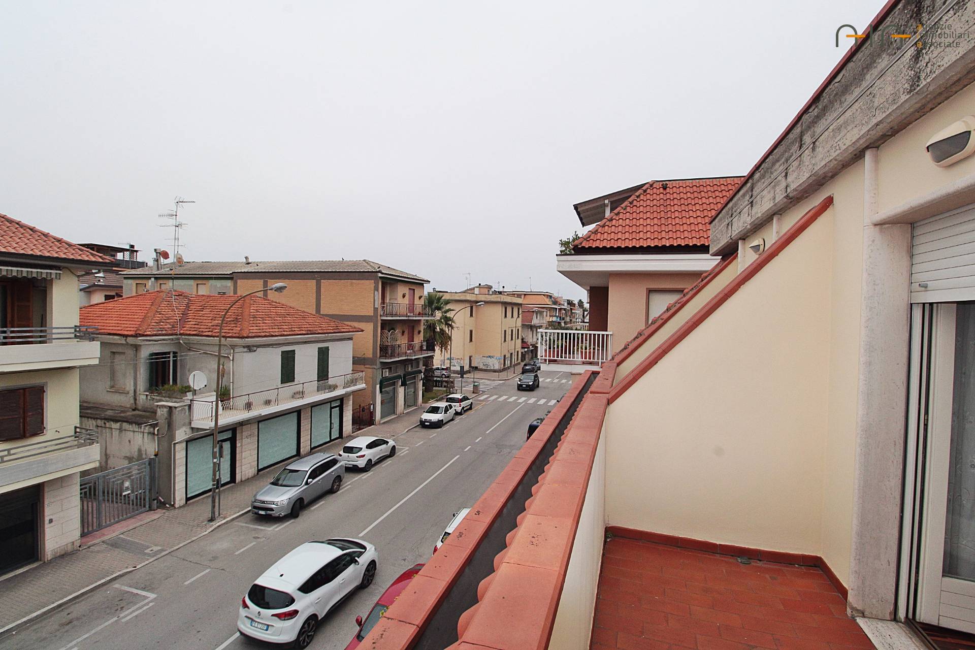 Appartamento disposto su due livelli, avente ingresso indipendente, delle dimensioni totali di mq 180 circa, composto al piano primo da ampio e luminoso soggiorno con camino, cucina abitabile, ripostiglio, cameretta e bagno finestrato con doccia, terrazza abitabile di mq 30 e balcone di mq 10 circa, oltre a scala per accedere al piano primo, composto da quattro camere da letto, bagno finestrato con doccia e quattro balconi per un totale di mq 17 circa. L'Appartamento si presenta in buone condizioni generali, con portone d'ingresso blindato, videocitofono, pavimentazione in monocottura al piano giorno e parquet nella zona notte, infissi in legno con doppio vetro, impianto termoautonomo e impianto elettrico a norma. Completano la proprietà una corte esterna pavimentata, di proprietà esclusiva, al piano terra di mq 100 circa, locale cantina di mq 15 circa e possibilità di acquistare garage di mq 74 circa nello stesso stabile con prezzo da computare a parte.
