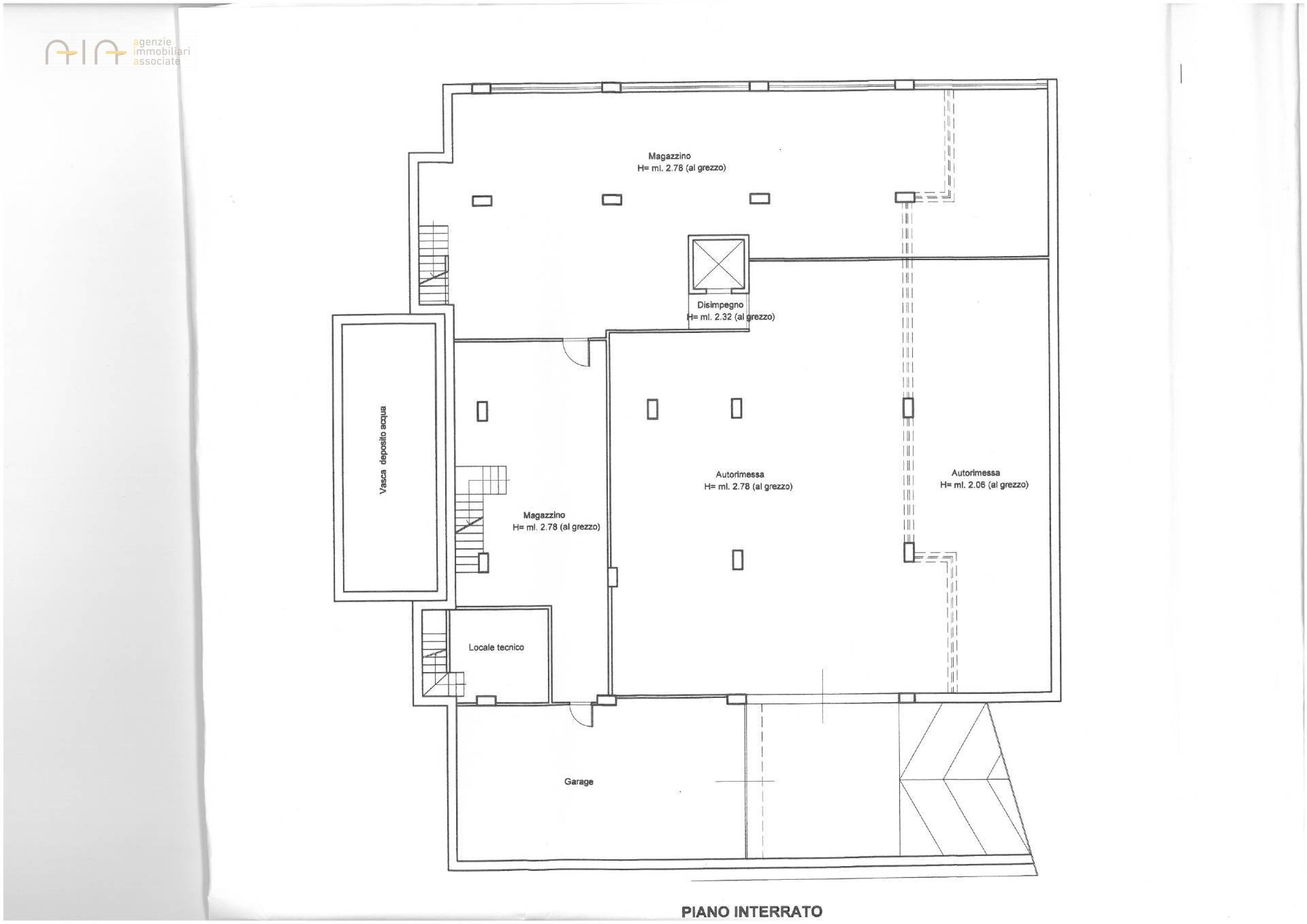 - piano seminterrato di mq 446 circa, dotato di due corpi con due accessi, uno di mq 394 e l'altro di mq 52, adibiti ad autorimessa con circa 15 posti auto e vari locali tecnici;