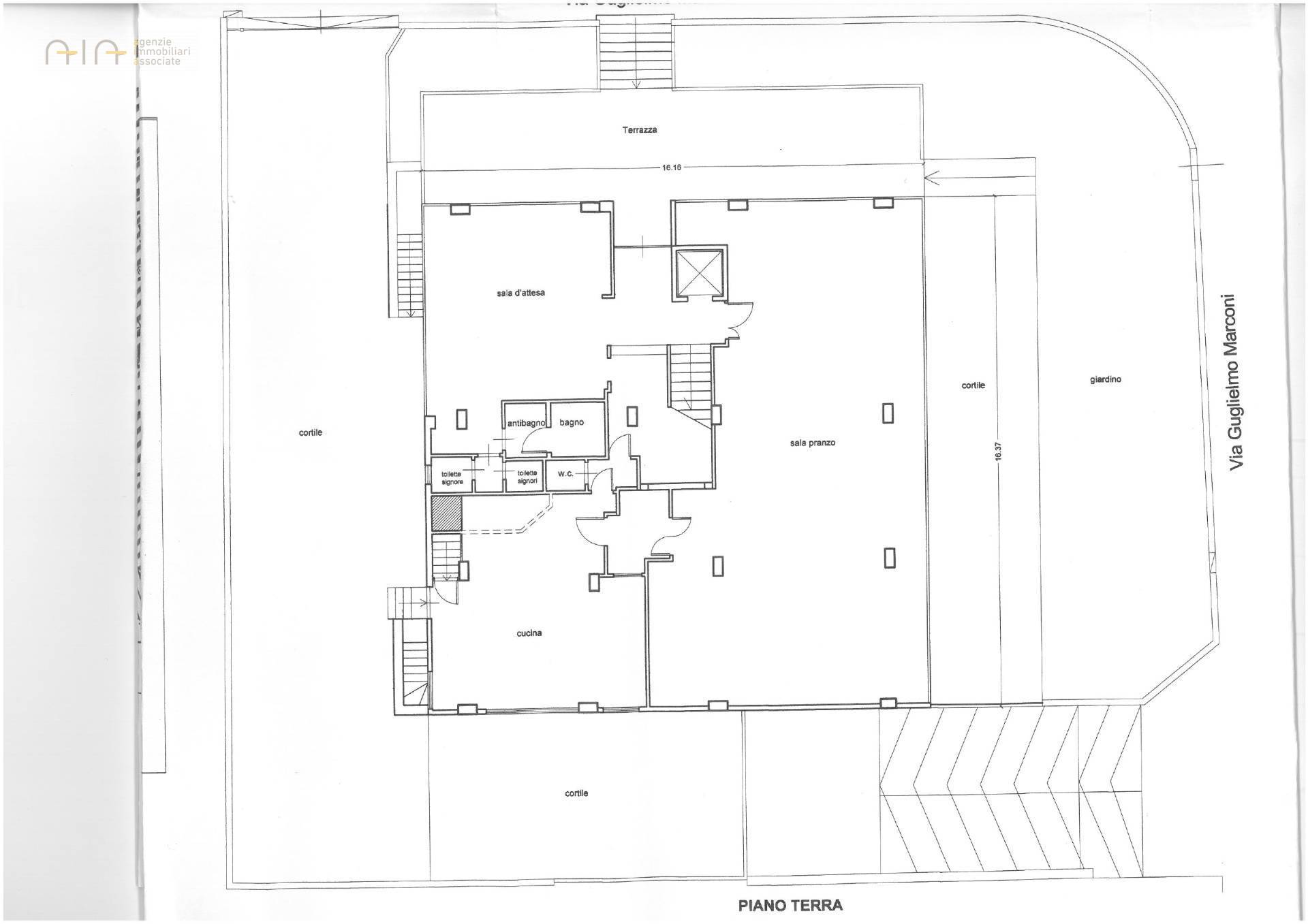 - piano rialzato di mq 264 circa, costituito da una Hall con angolo bar, un'ampia sala da pranzo, ampia cucina attrezzatissima, n 2 servizi igienici, ampio terrazzo all'ingresso, corte esterna al fabbricato (in parte pavimentata ed in parte giardino), parcheggio di utilità logistica nei pressi della cucina;