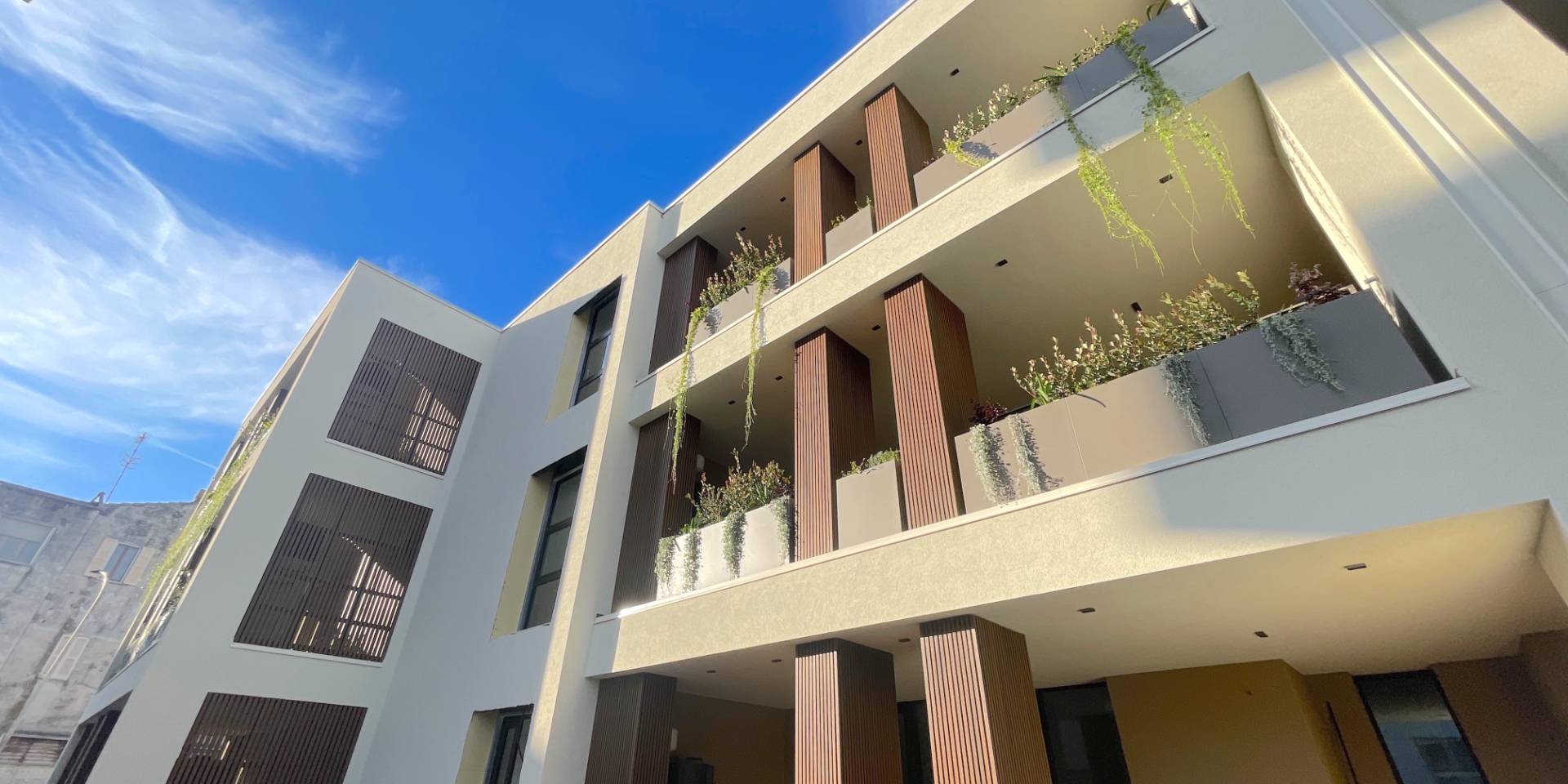 Il complesso è circondato da un incantevole giardino interno, con piante ornamentali su tutte le balconate e logge esterne, e l'irrigazione è gestita da un sistema centralizzato con accumulo d'acqua. L'edificio è stato progettato per garantire la massima efficienza energetica ed è certificato in classe energetica Nzeb (Near Zero Energy Building), grazie all'impianto fotovoltaico centralizzato da 44 kW, cappotto termico esterno e numerosi accorgimenti come il controllo dell'irraggiamento naturale e l'ombreggiatura naturale tramite balconi aggettanti.