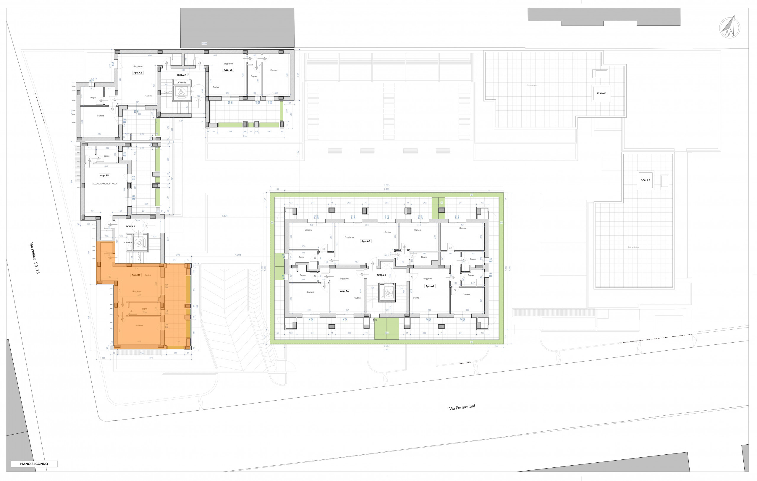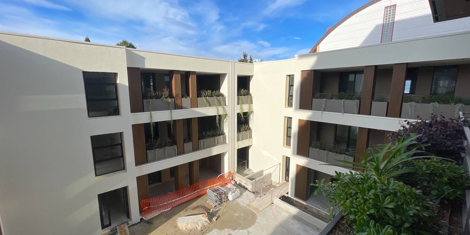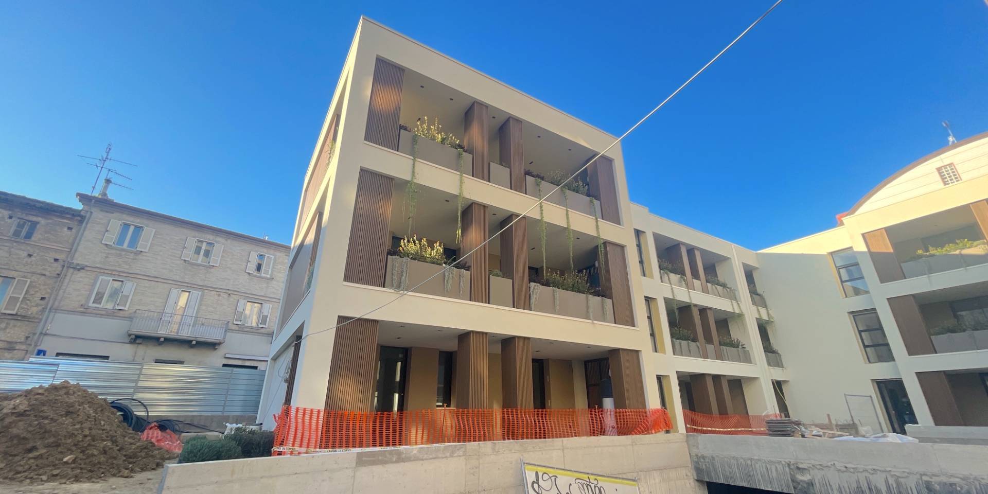 L'intero complesso è circondato da un bellissimo giardino interno, con piante su tutte le balconate e logge esterne, irrigato tramite un sistema centralizzato con accumulo d'acqua. Inoltre, l'edificio è stato progettato secondo i principi della classe energetica Nzeb (Near Zero Energy Building), grazie all'impianto fotovoltaico centralizzato da 44 kW e ad altri accorgimenti come cappotto esterno, gestione dell'irraggiamento naturale e ombreggiatura tramite balconi aggettanti.