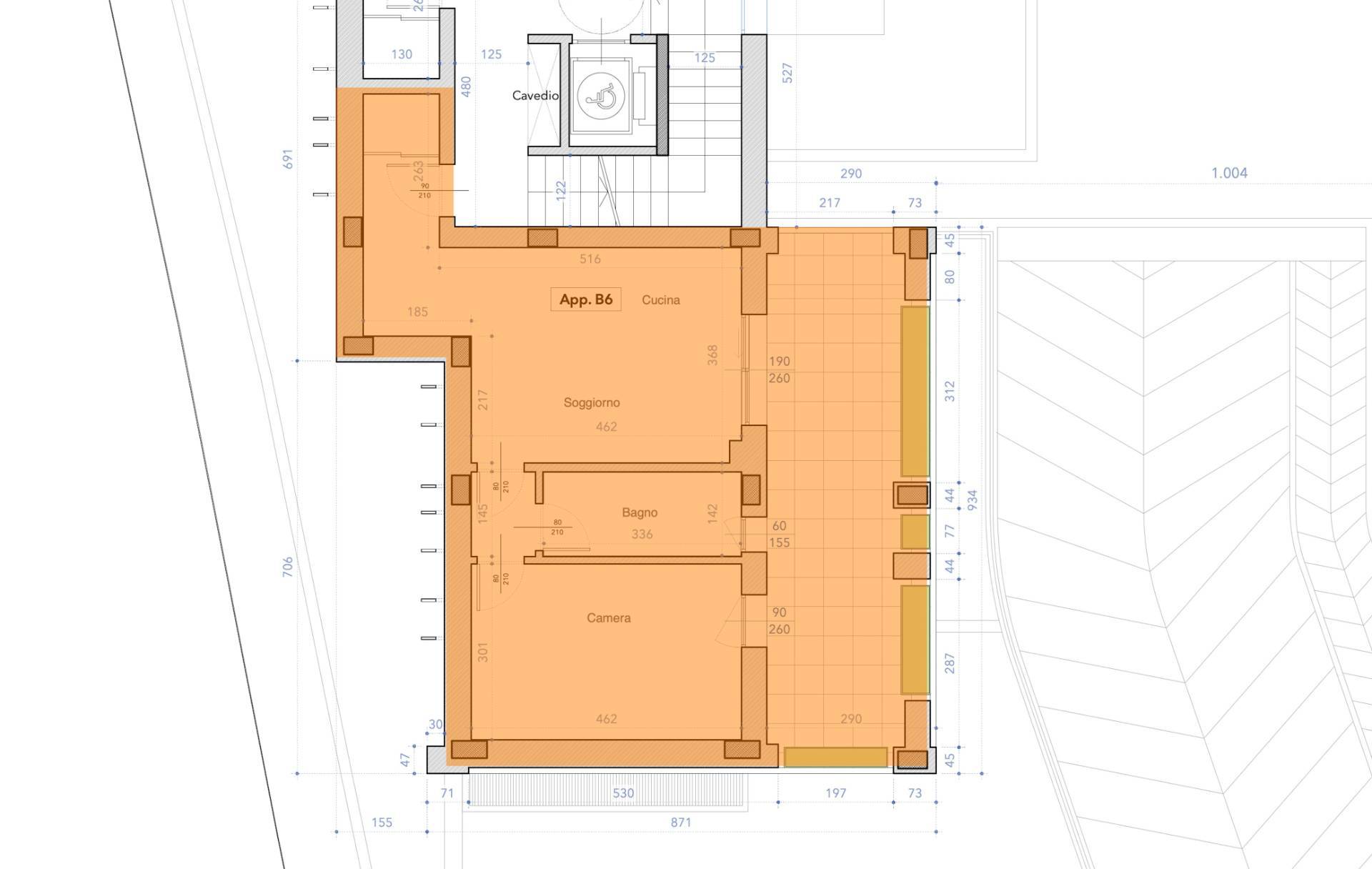 Appartamento sito al secondo piano attico, con una superficie di circa 59 m², composto da ingresso su corridoio, ampio soggiorno con angolo cottura, una camera matrimoniale, un bagno finestrato, un ripostiglio lavanderia e un piccolo disimpegno nel reparto notte. L'Appartamento è inoltre dotato di una terrazza a loggia coperta di circa 26 m², ideale per soggiornare all'aperto durante la bella stagione.