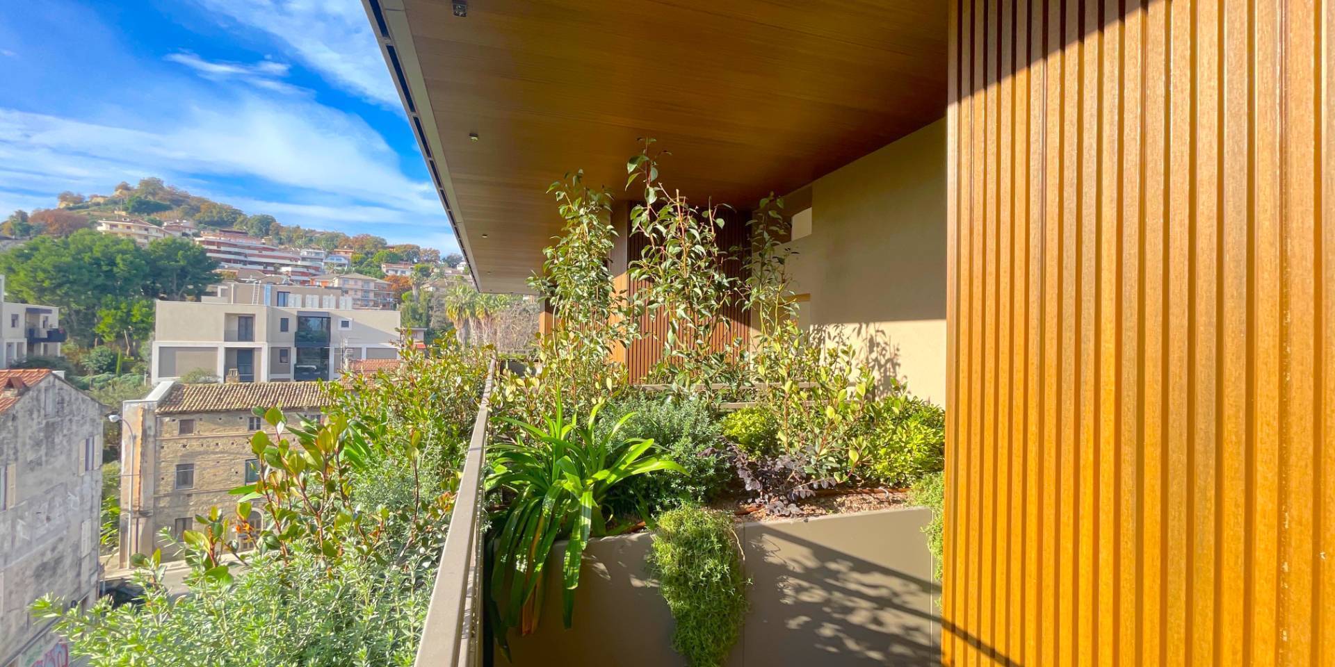 L'intero complesso è circondato da un bellissimo giardino interno e da piante che adornano tutte le balconate e logge esterne, con un sistema di irrigazione centralizzato che garantisce la cura del verde. Inoltre, l'edificio è stato progettato in classe energetica Nzeb (Near Zero Energy Building), con un impianto fotovoltaico centrale da 44 kW, e numerosi accorgimenti come il cappotto esterno, il controllo dell'irraggiamento naturale degli alloggi e l'ombreggiatura naturale tramite balconi aggettanti.