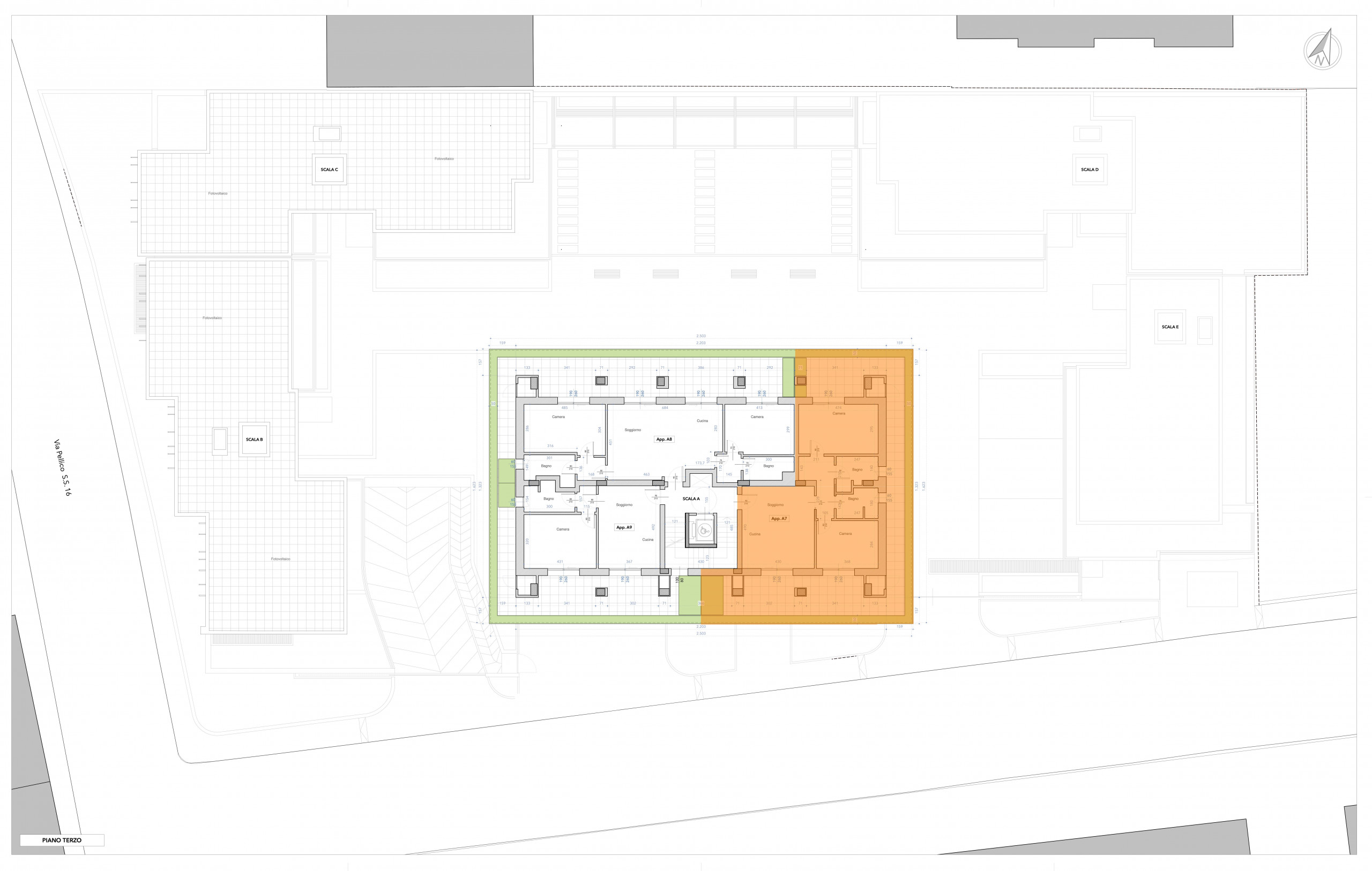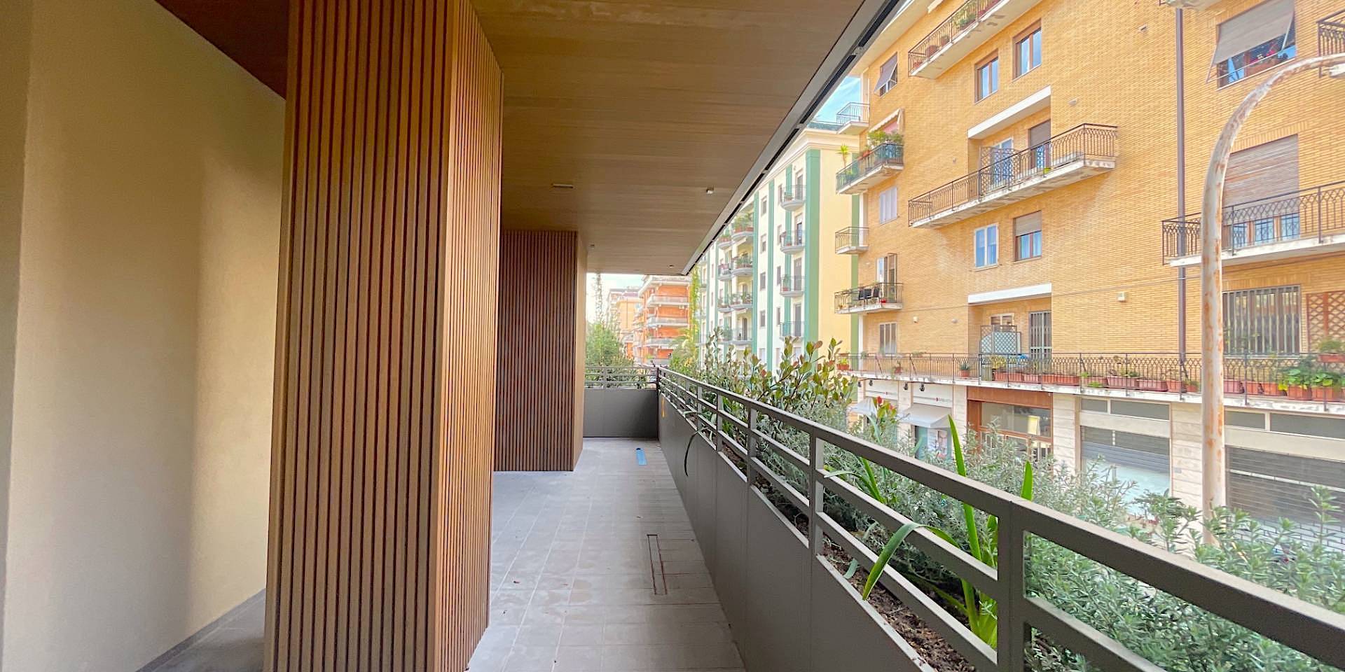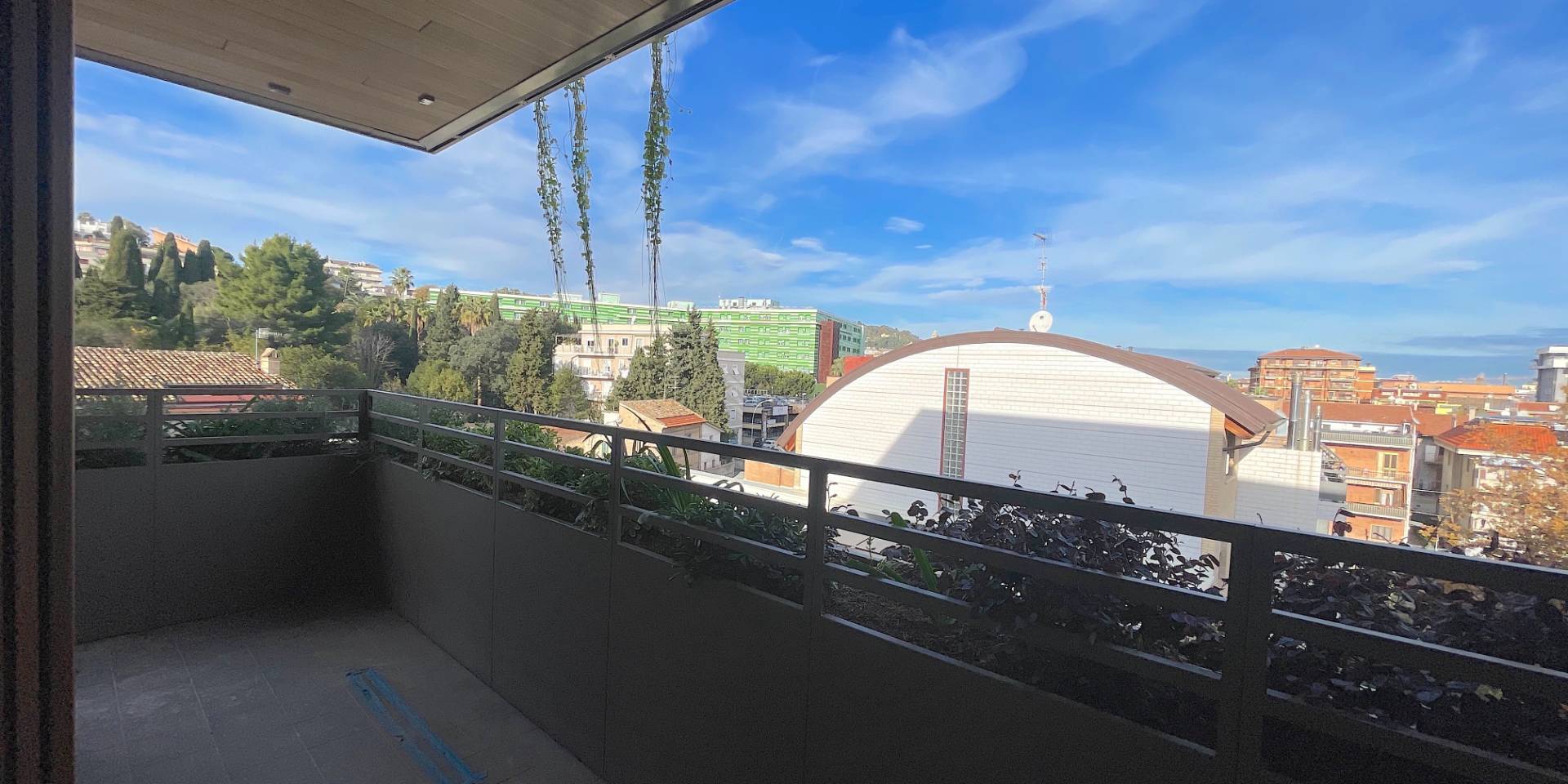 Appartamento situato al terzo piano di un elegante complesso residenziale, con una superficie di circa 75 m². L'unità è composta da ingresso su un ampio soggiorno con angolo cottura, due camere da letto (una matrimoniale e una spaziosa singola), due bagni finestrati, entrambi dotati di doccia, e un pratico disimpegno nella zona notte. Completano l'Appartamento una terrazza a loggia esterna coperta di circa 71 m², ideale per godere della bella stagione in totale privacy.