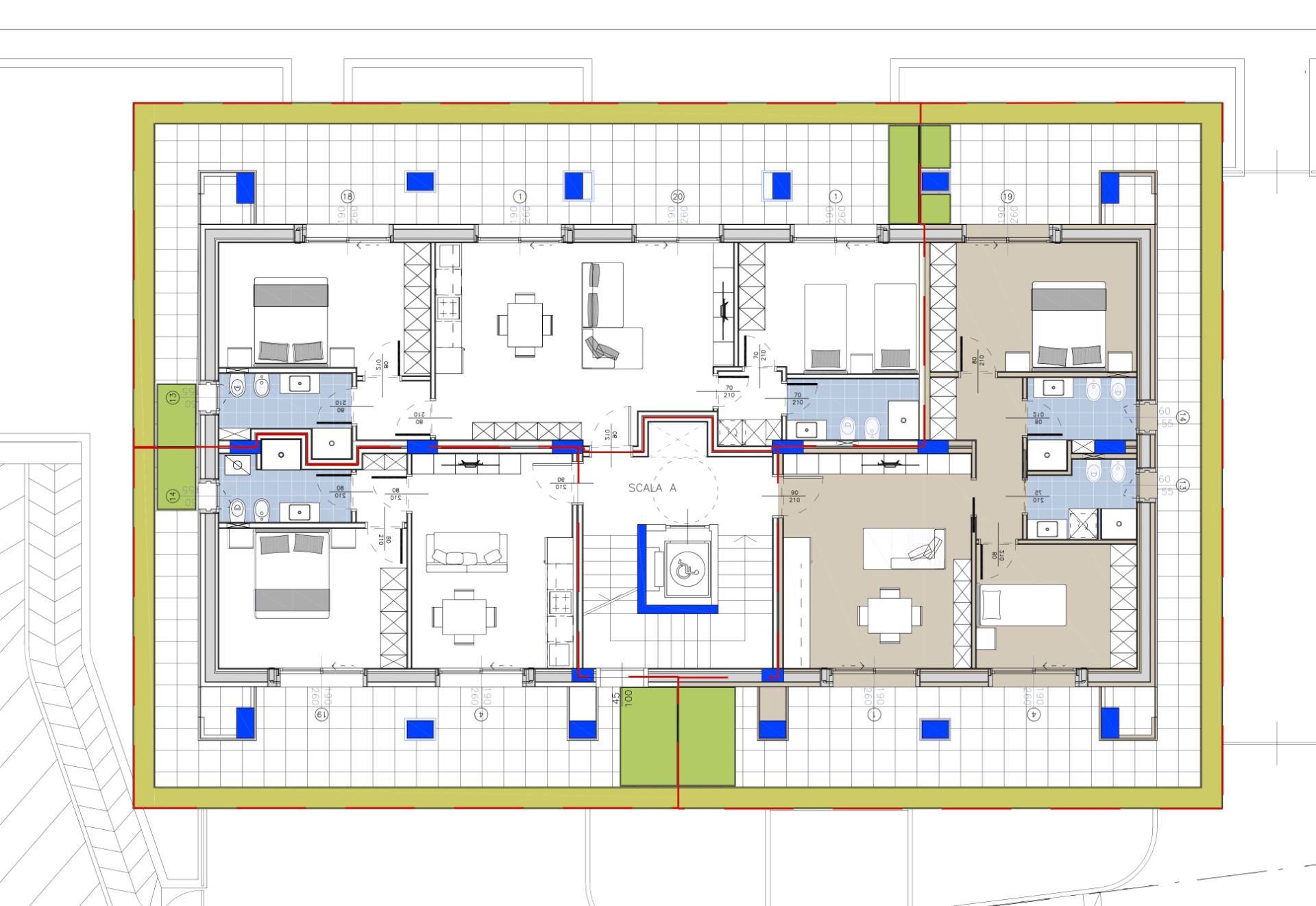 Il complesso è circondato da un meraviglioso giardino interno e da piante che adornano tutte le balconate e logge esterne, con un sistema di irrigazione centralizzato che ne garantisce il mantenimento. Inoltre, l'intero edificio è stato realizzato secondo i più alti standard di efficienza energetica, raggiungendo la classe Nzeb (Near Zero Energy Building). Grazie all'impianto fotovoltaico centrale da 44 kW e a soluzioni innovative come il cappotto esterno e l'ottimizzazione dell'irraggiamento solare, l'edificio consuma quasi zero energia.