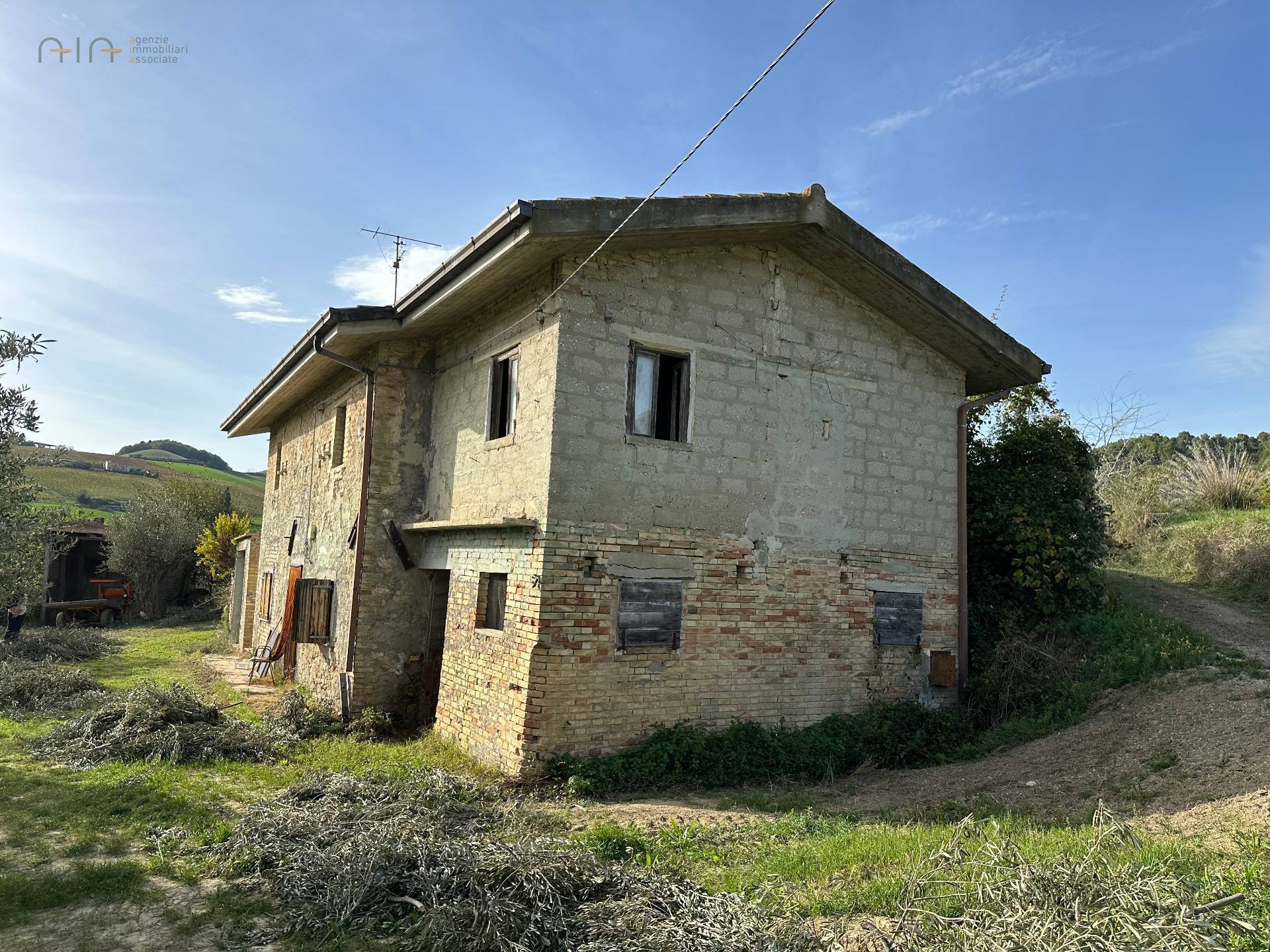 Casolare colonico disposto su due livelli delle dimensioni complessive di mq. 135,00 circa e composto di piano terra con soggiorno cucina, con piccolo wc ricavato nel sottoscala, locale adiacente adibito a garage/magazzino e scala esterna che conduce al piano primo composto da tre vani. Il fabbricato risulta in mediocre stato i conservazione e necessita di una completa e radicale ristrutturazione negli impianti e finiture. Completa la proprietà un terreno agricolo circostante di circa 7.600 mq. attualmente piantumato ad uliveto. Comoda strada bianca di accesso e non distante da San Benedetto.