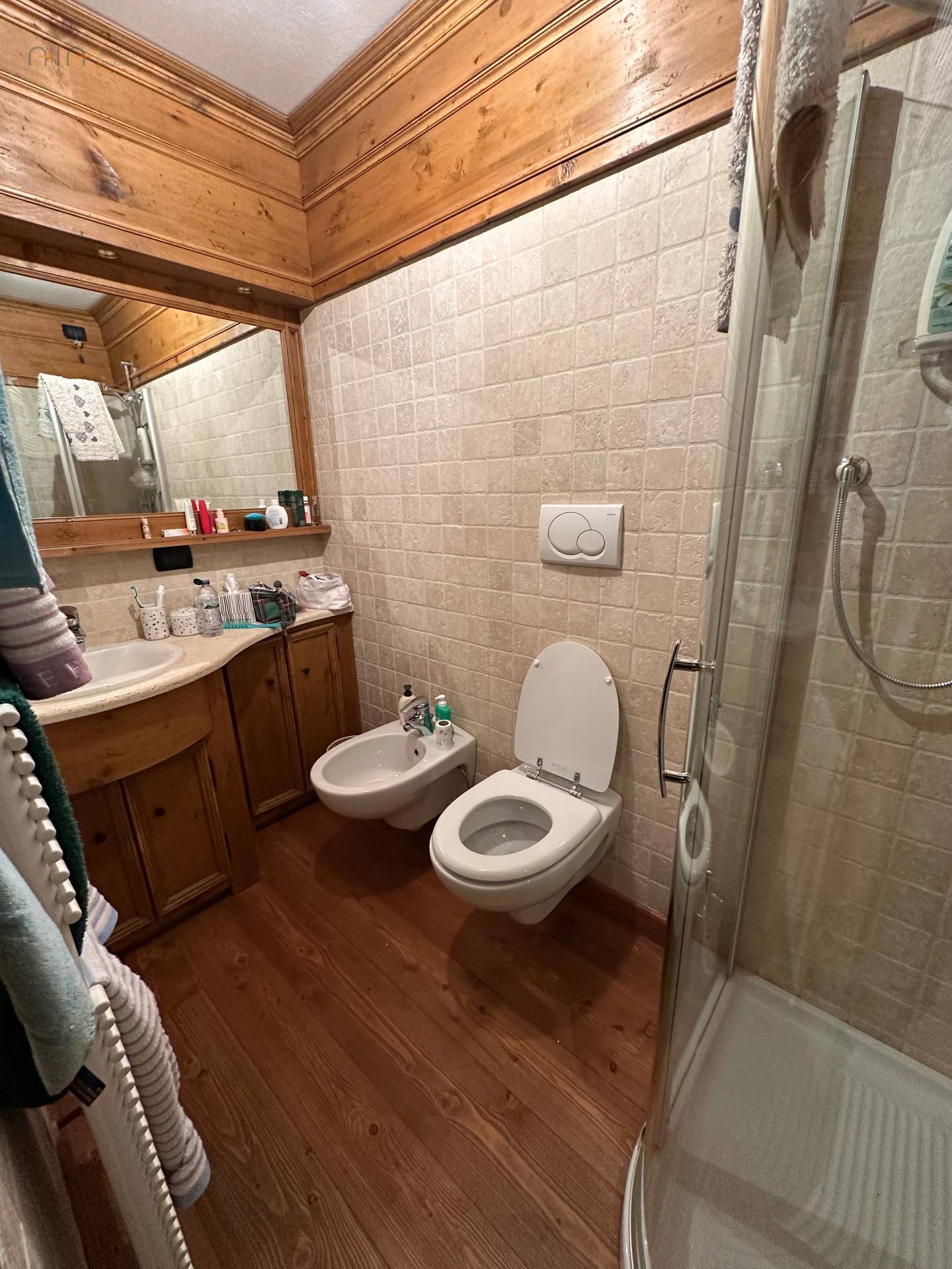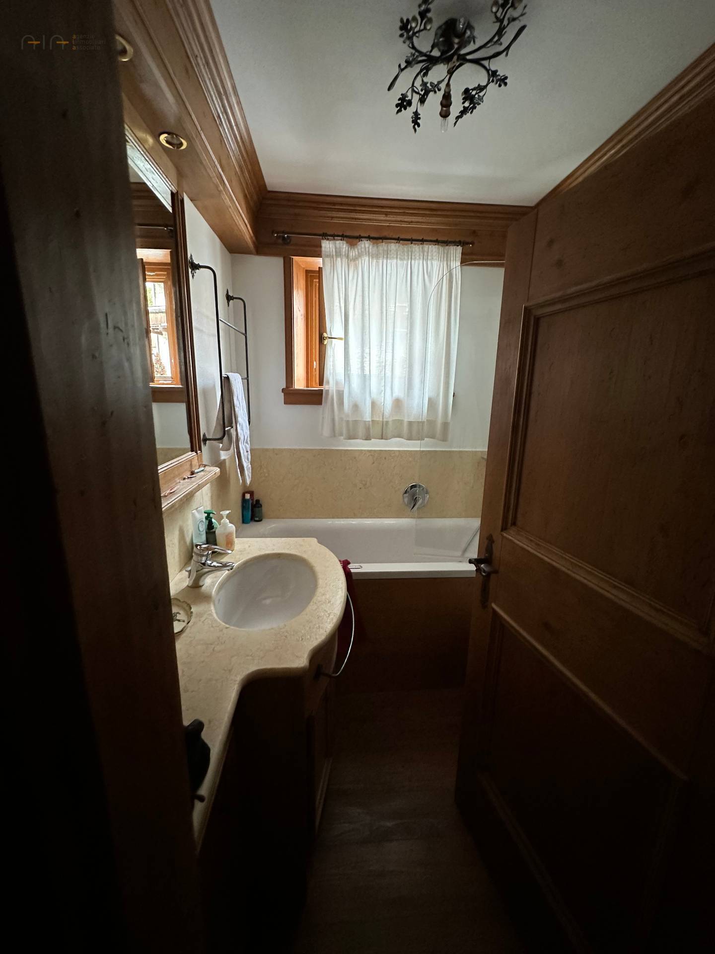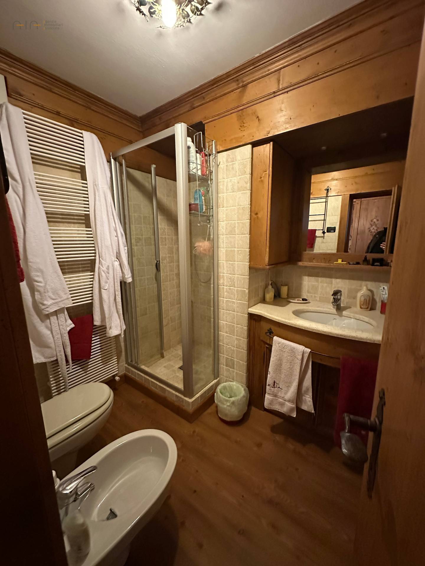 Appartamento disposto su due livelli ( piano terra e piano seminterrato) delle dimensioni complessive di circa 230 mq e così composto:piano terra delle dimensioni di circa 90 mq avente ingresso indipendente e completo di ingresso su ampio soggiorno, cucinino solo cottura, due camere da letto matrimoniali oltre due bagni di cui uno nella zona notte e uno di servizio; piano seminterrato collegato con scala interna di circa 140 mq avente ingresso autonomo completo 6 ampi vani e 4 bagni locale lavanderia. Completa la proprietà un giardino esclusivo perimetrale di circa 300 mq oltre vari ripostigli ricavati nel perimetro dell'Appartamento e 3 posti auto di cui due coperti e uno coperto. L'immobile si presenta in ottimo stato con rifiniture in legno tipiche degli appartamenti di montagna, impiantistica di riscaldamento centralizzato sezionato in tre diversi ambienti, infissi in legno con vetro camera muniti di persiane. Ubicato a 700 mt dal centro con prevalente esposizione a sud est con vista sulle Tofane. Adatto a più nuclei familiario a uso investimento.