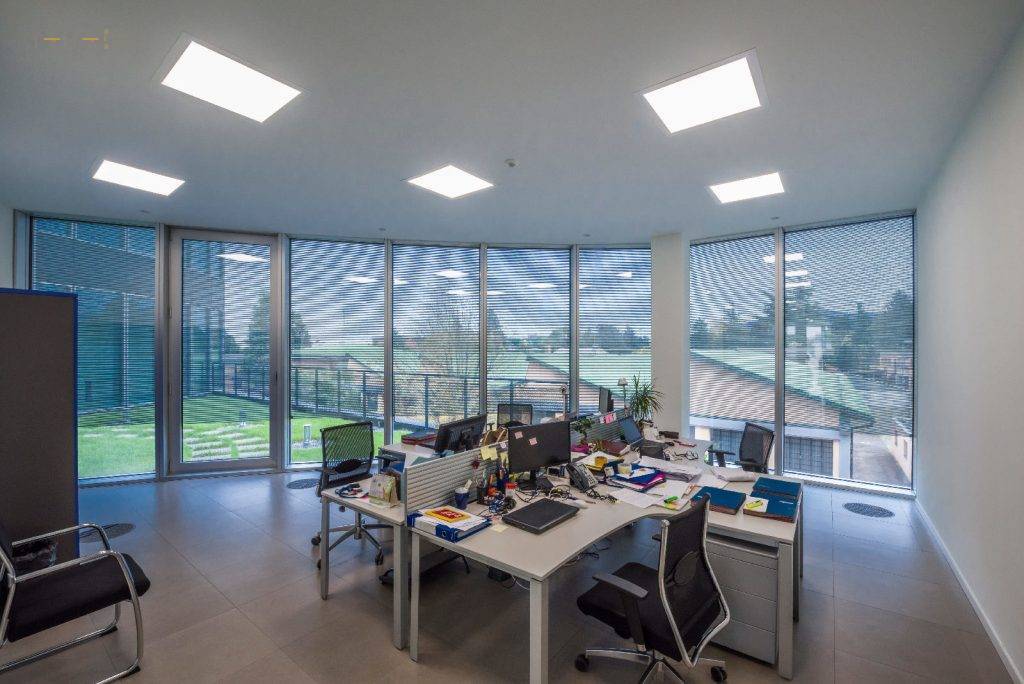 Il locale è composto da un unico vano attualmente diviso con pareti in vetro in sala riunioni, 2 ampi vani, area break, antibagno e wc, spazio esterno.