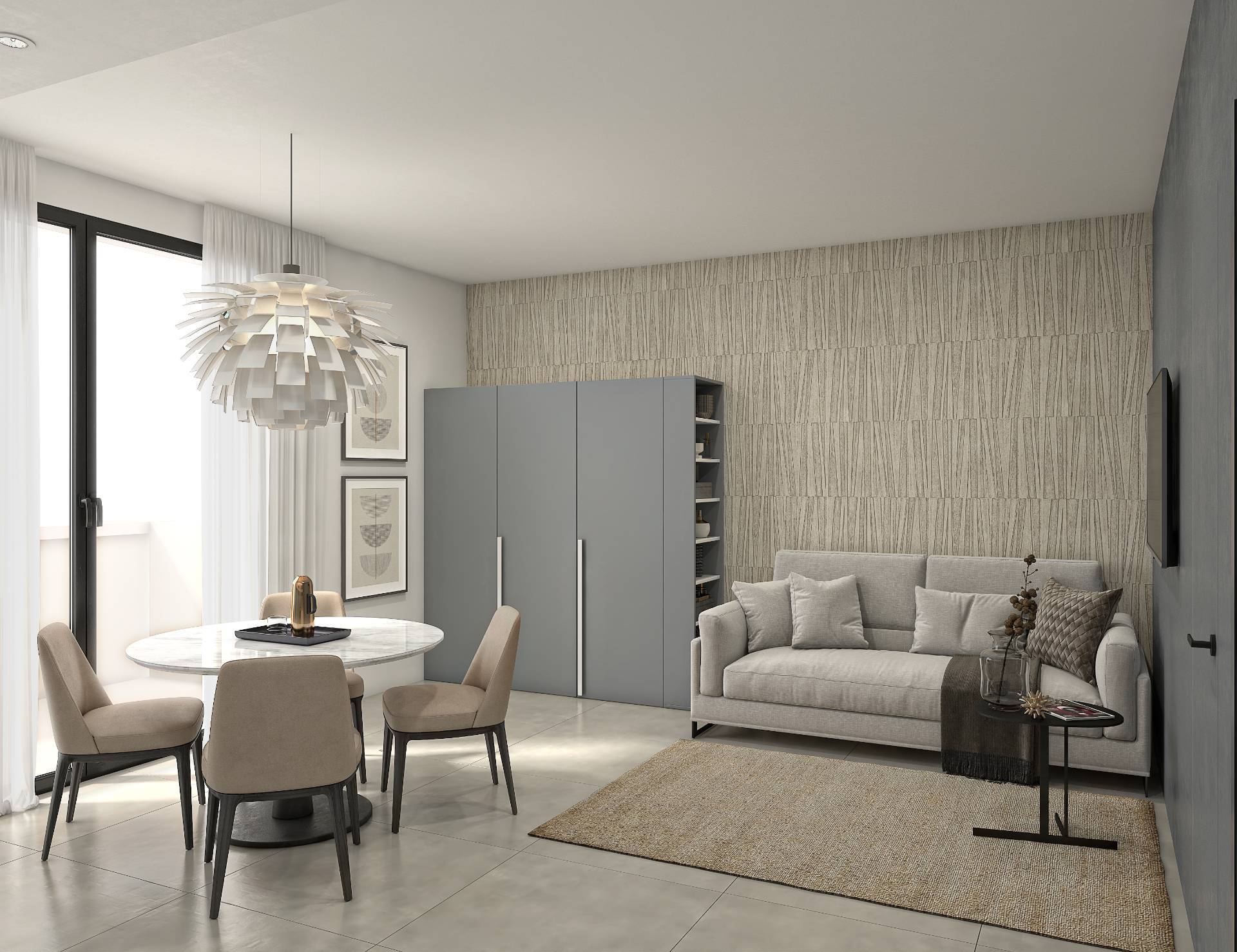Inserito in piccola palazzina di nuova costruzione con soltanto 6 unità immobiliari, è rifinito con materiali di ottima qualità quali pavimentazione in gres, impianto canalizzato caldo/freddo, infissi SCHUCO.