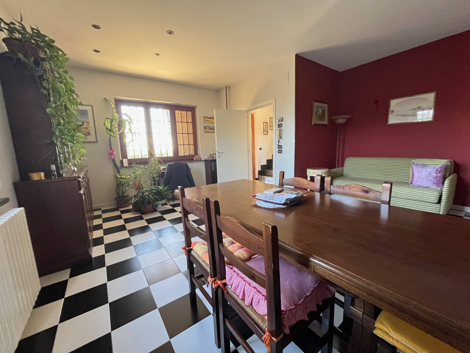 - al piano terra da ingresso su disimpegno, ampio salone doppio con angolo cottura, bagno di servizio, ripostiglio oltre scala di accesso al piano superiore;
