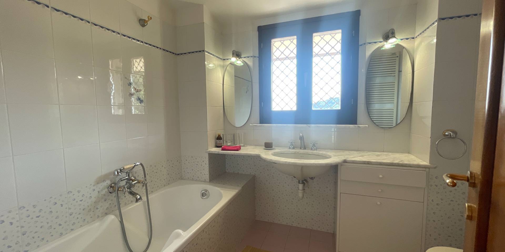 - Piano secondo, leggermente mansardato, con due grandi camere da letto, bagno con vasca e accesso a una terrazza panoramica con suggestiva vista mare.
