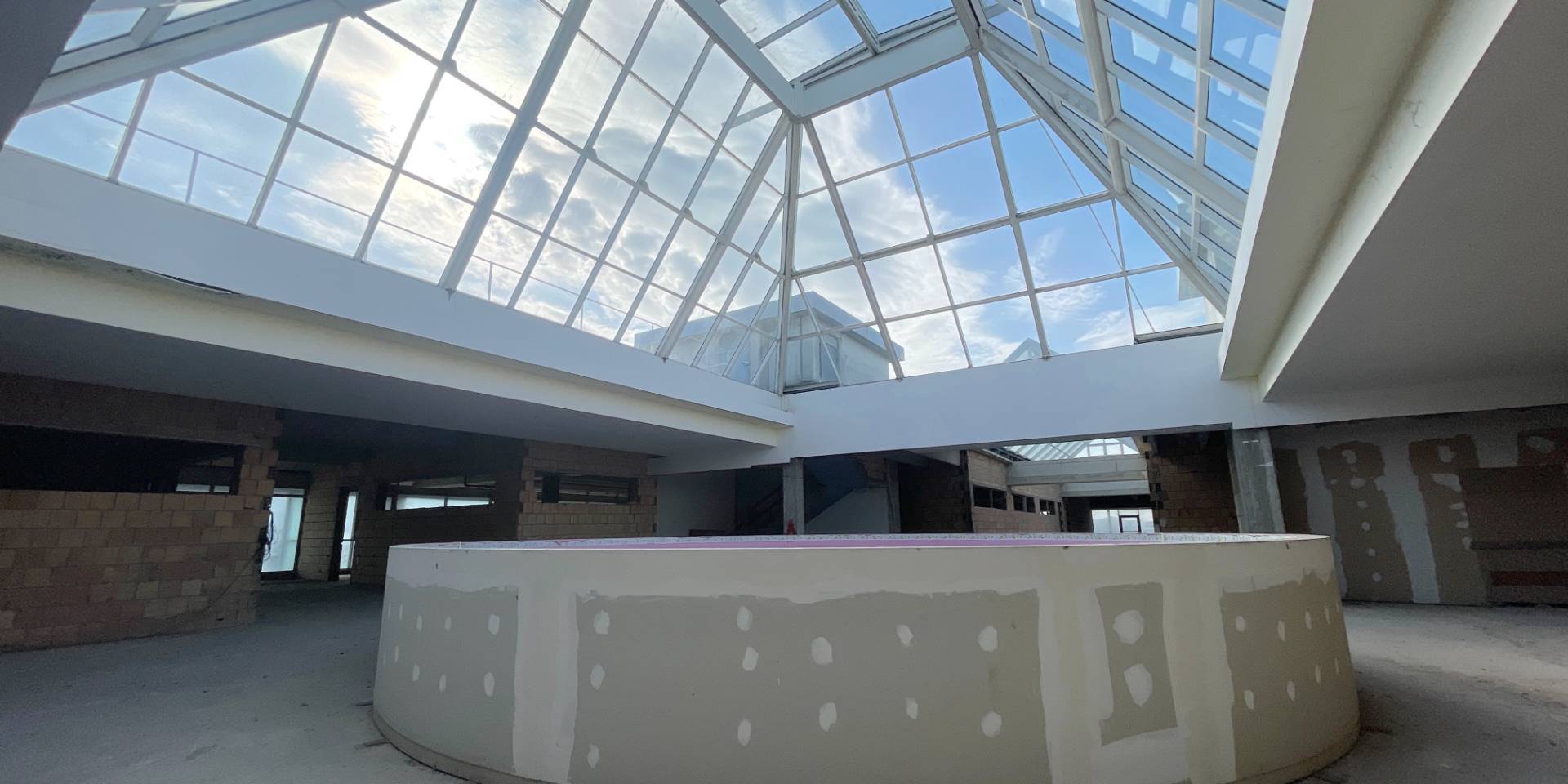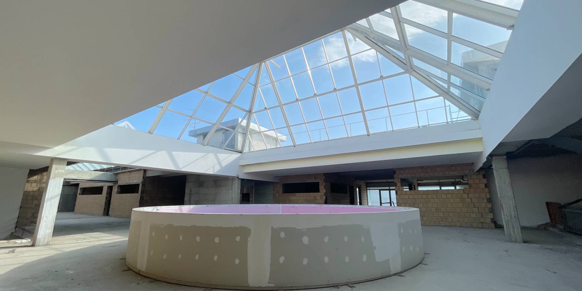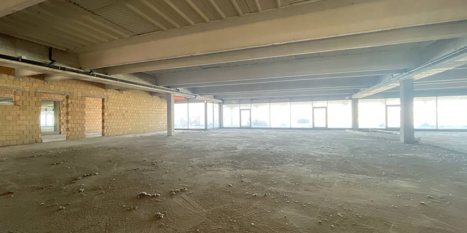 L'unità immobiliare, attualmente allo stato grezzo avanzato, è costituita da diversi lotti modulabili, con ingressi indipendenti e collegati da ampi corridoi centrali. Esternamente l'edificio è già ultimato e dotato di ampie vetrate; all'interno sono presenti alcuni divisori, ma mancano ancora le rifiniture, i massetti, le pavimentazioni e gli impianti.
