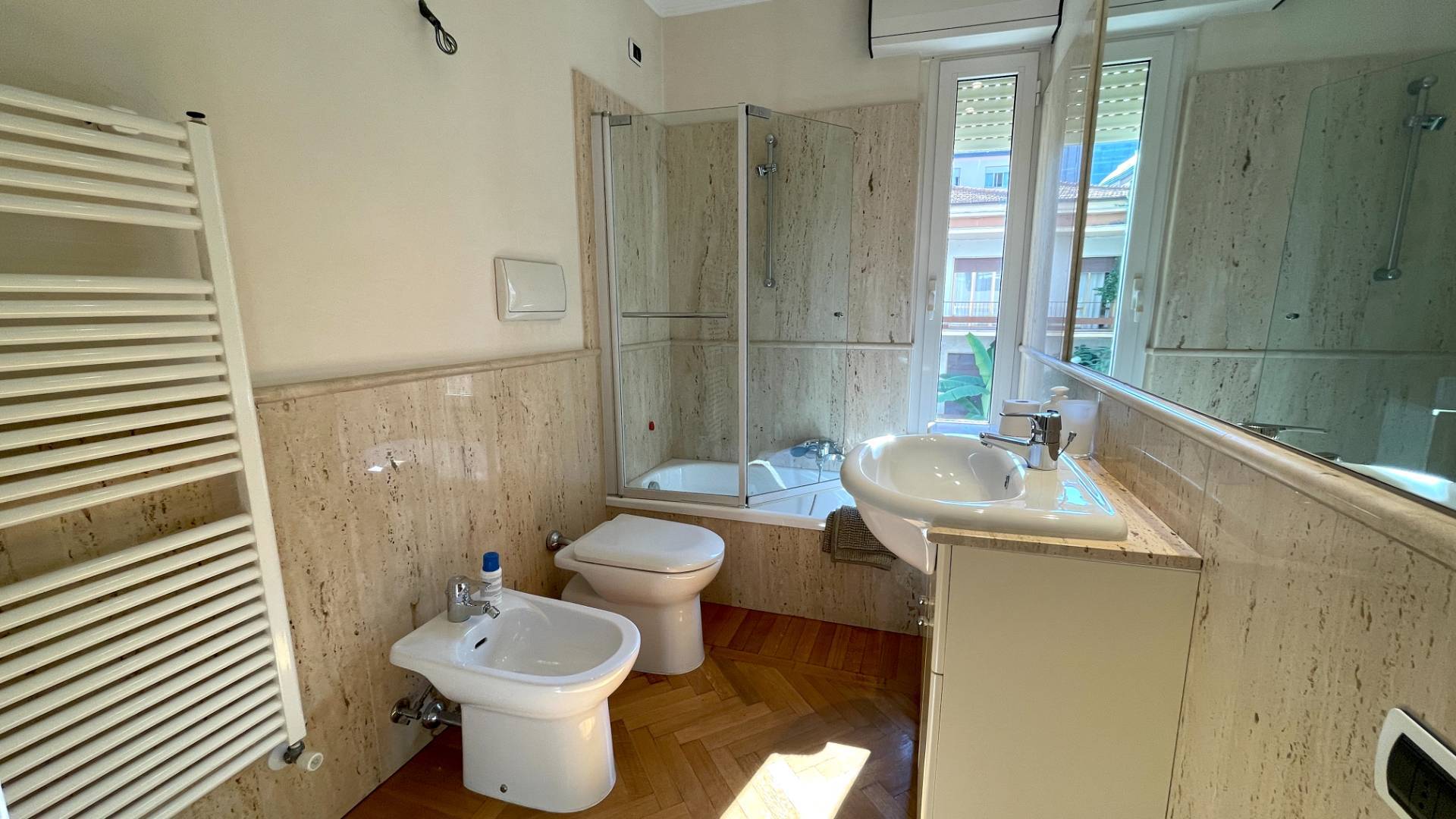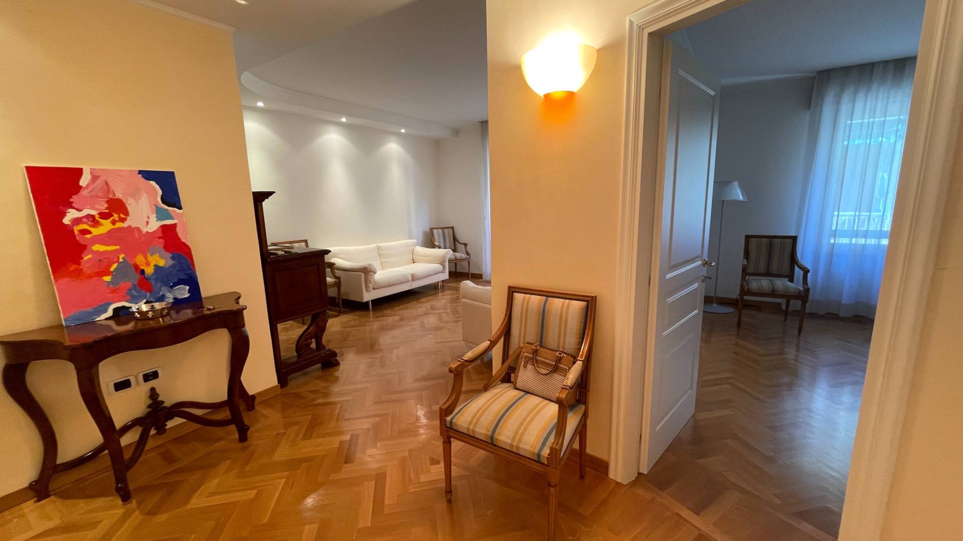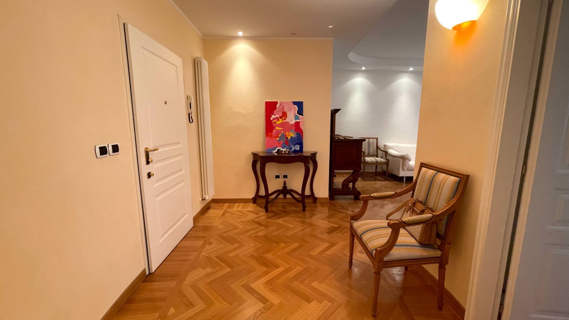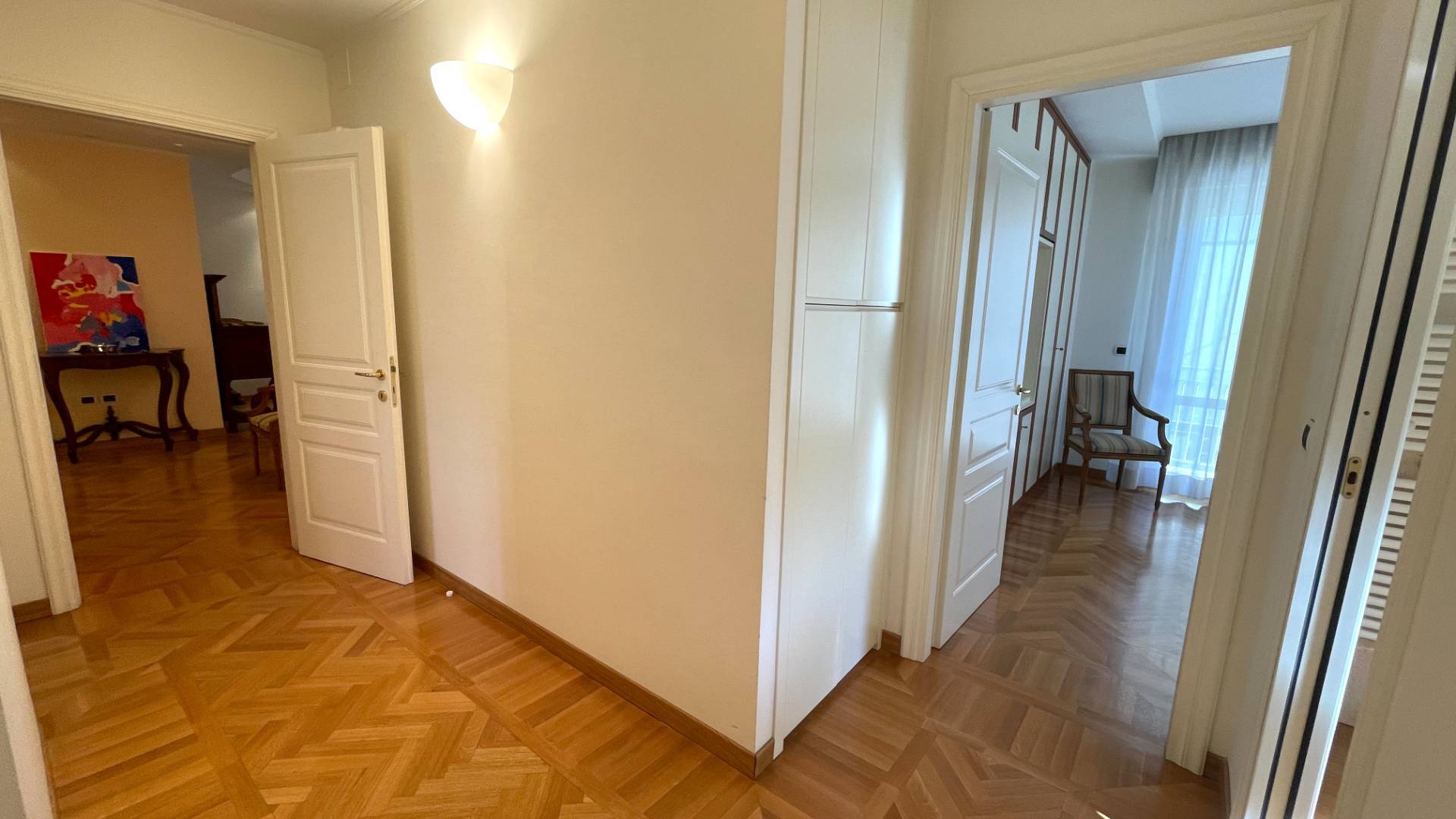 Frutto di una totale ristrutturazione avvenuta nel 2005, l'Appartamento si presenta in ottimo stato con pavimentazione in parquet di rovere montato in prevalenza a spina pesce, infissi in alluminio, clima in ogni ambiente, vari controsoffitti in cartongesso con faretti incassati, bagni in travertino, impianti nuovi a norma.