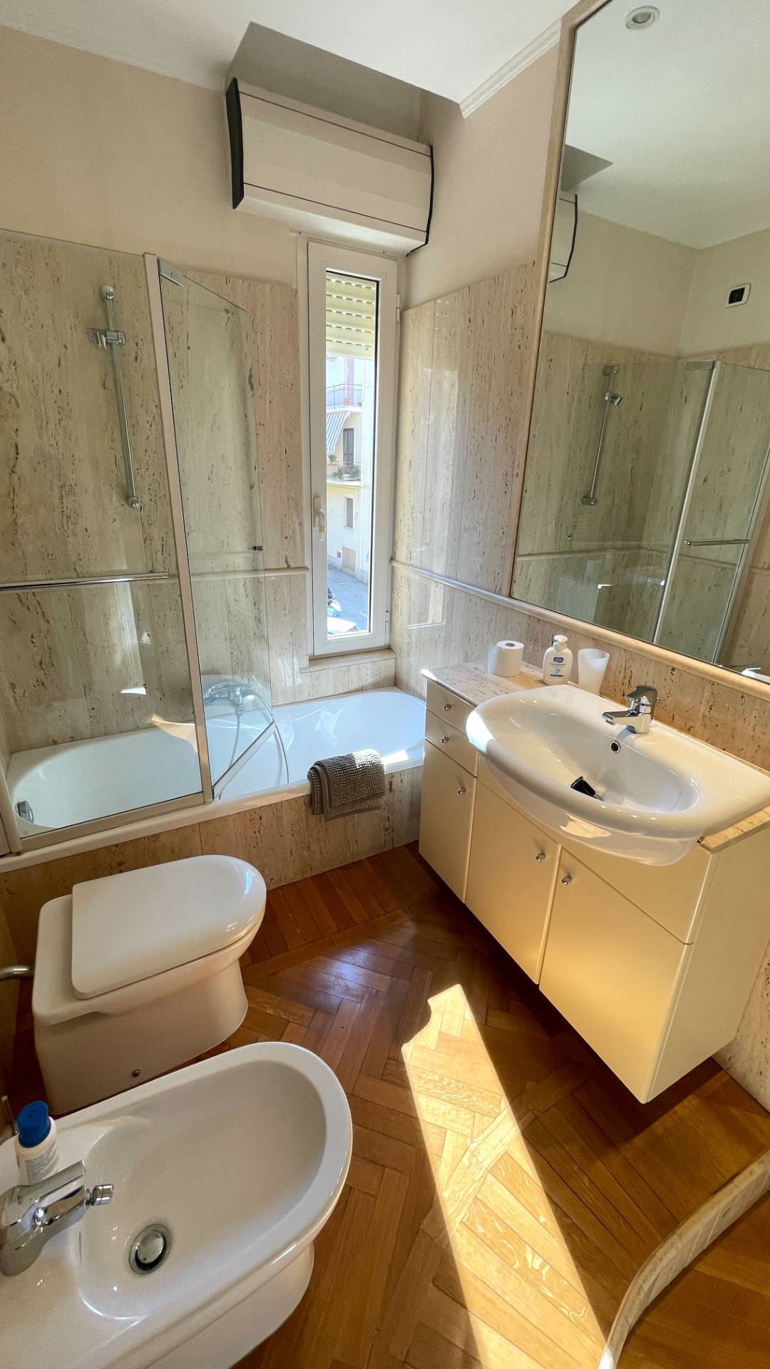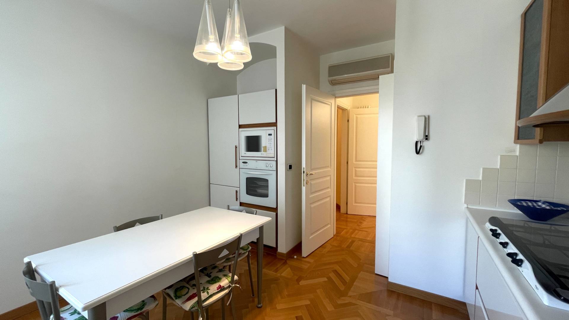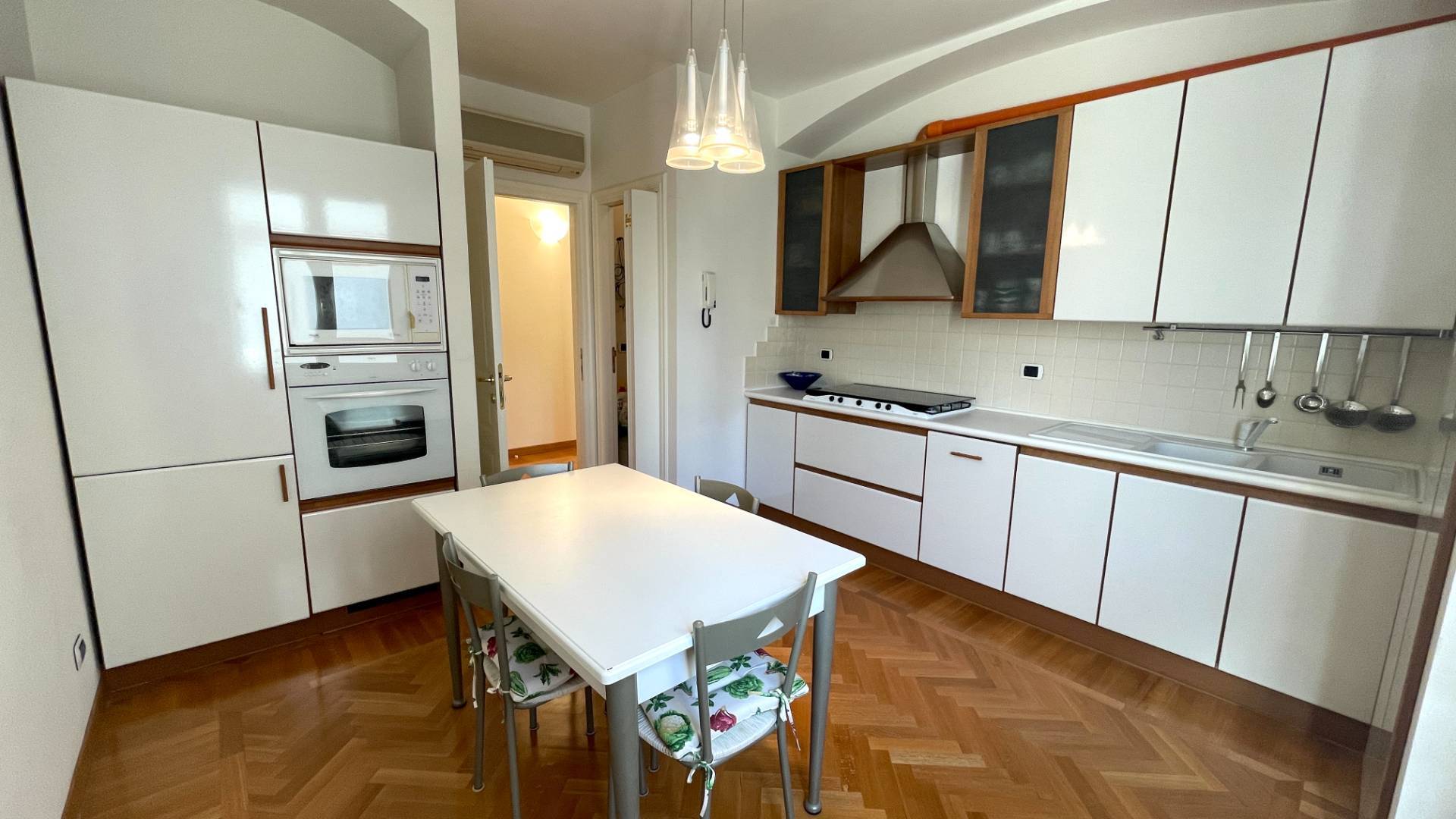 Frutto di una totale ristrutturazione avvenuta nel 2005, l'Appartamento si presenta in ottimo stato con pavimentazione in parquet di rovere montato in prevalenza a spina pesce, infissi in alluminio, clima in ogni ambiente, vari controsoffitti in cartongesso con faretti incassati, bagni in travertino, impianti nuovi a norma.