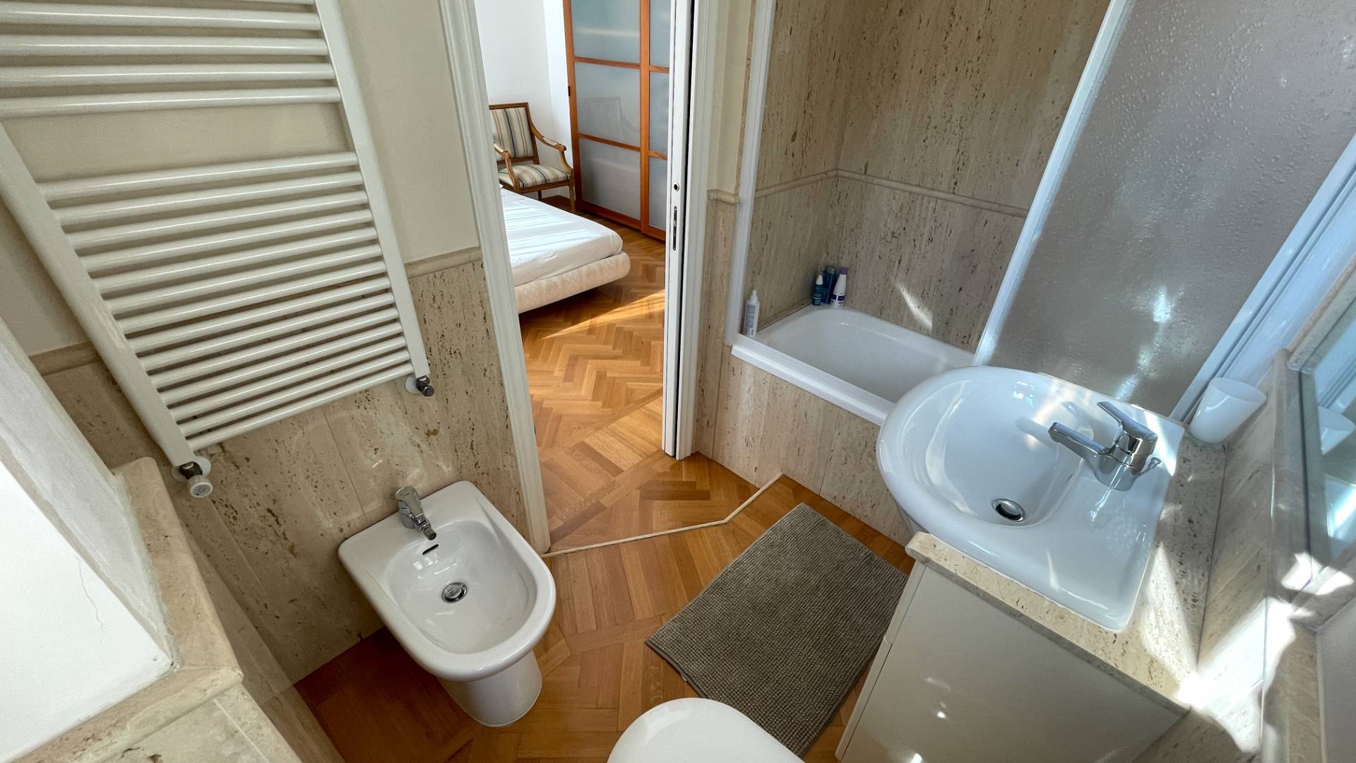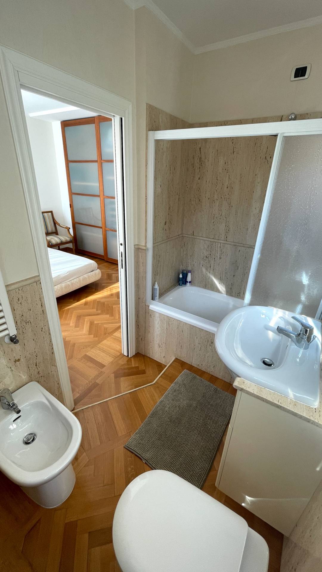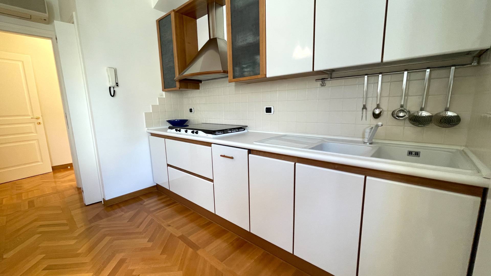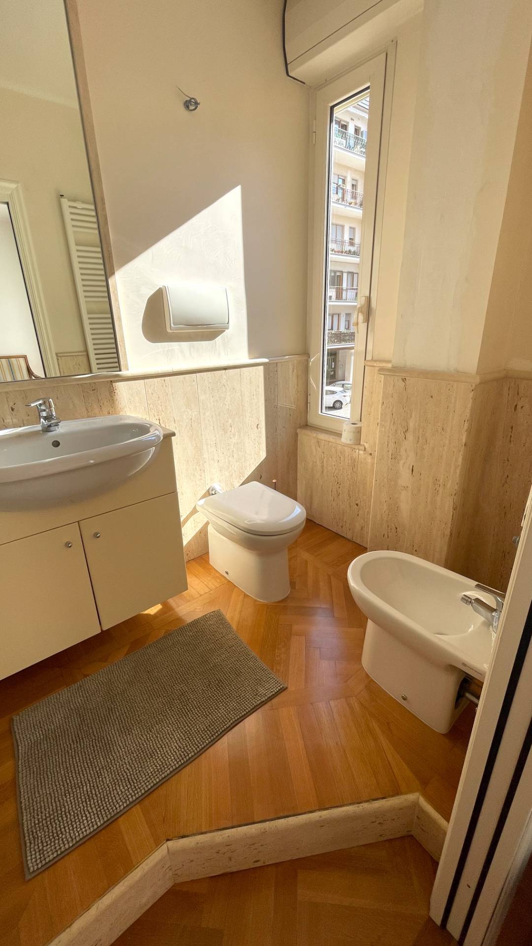 Frutto di una totale ristrutturazione avvenuta nel 2005, l'Appartamento si presenta in ottimo stato con pavimentazione in parquet di rovere montato in prevalenza a spina pesce, infissi in alluminio, clima in ogni ambiente, vari controsoffitti in cartongesso con faretti incassati, bagni in travertino, impianti nuovi a norma.