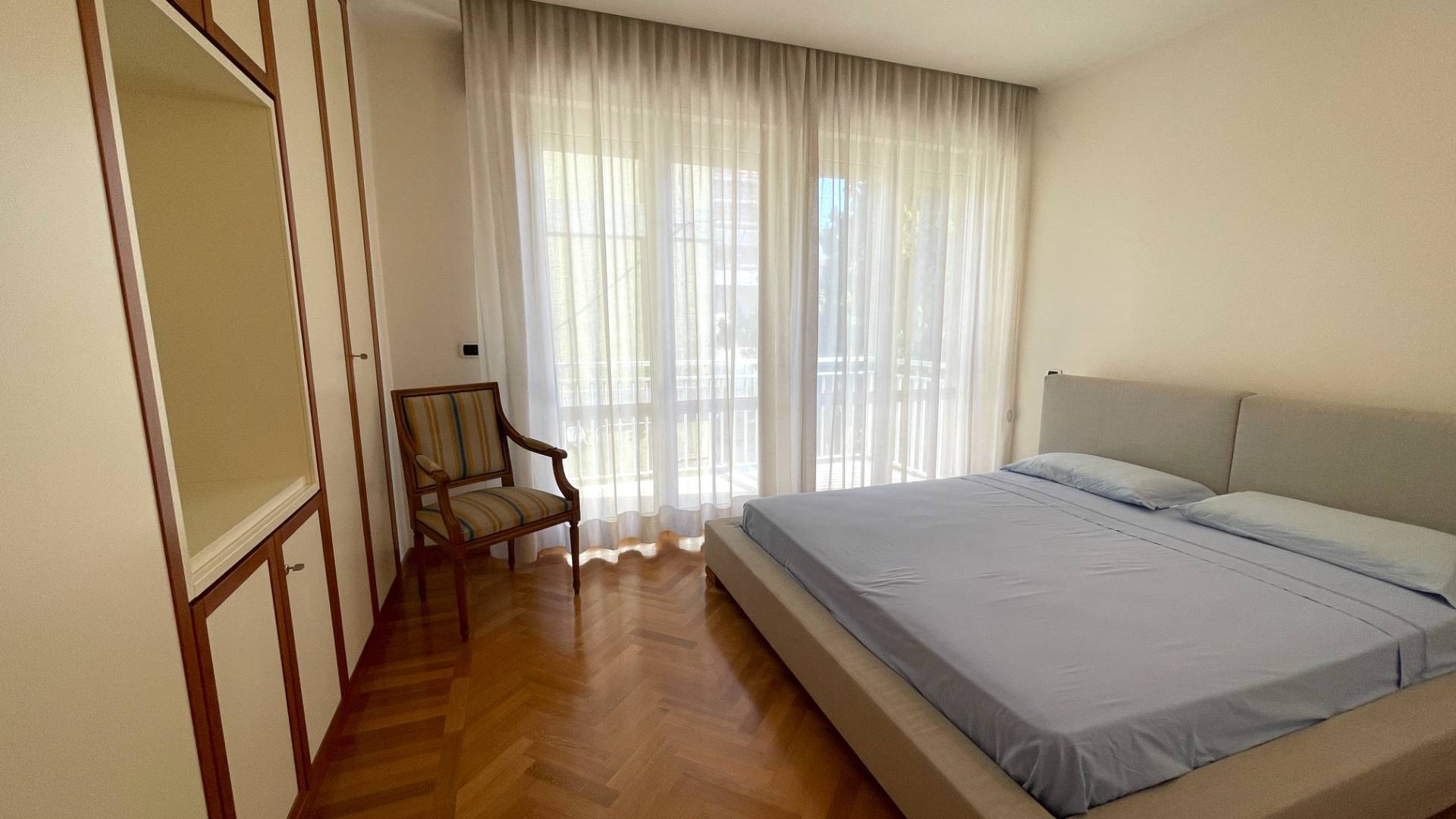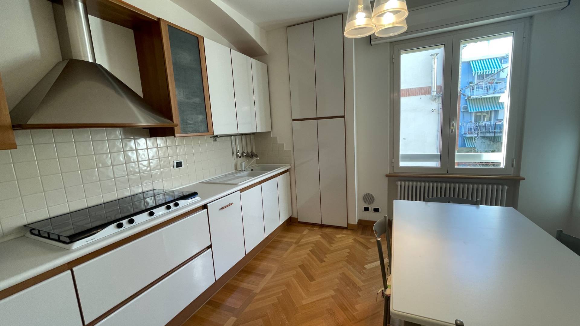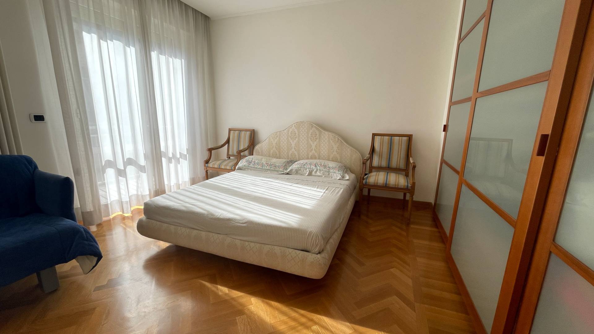 Appartamento al Piano Primo con ascensore, delle dimensioni di 120 mq. circa, composto da ingresso, soggiorno doppio (eventuale 3a camera da letto), cucina abitabile con annessa dispensa, 2 camere da letto matrimoniali, 2 bagni (di cui uno en-suite - entrambi con finestra) e 3 balconi per complessivi 14 mq. circa.
