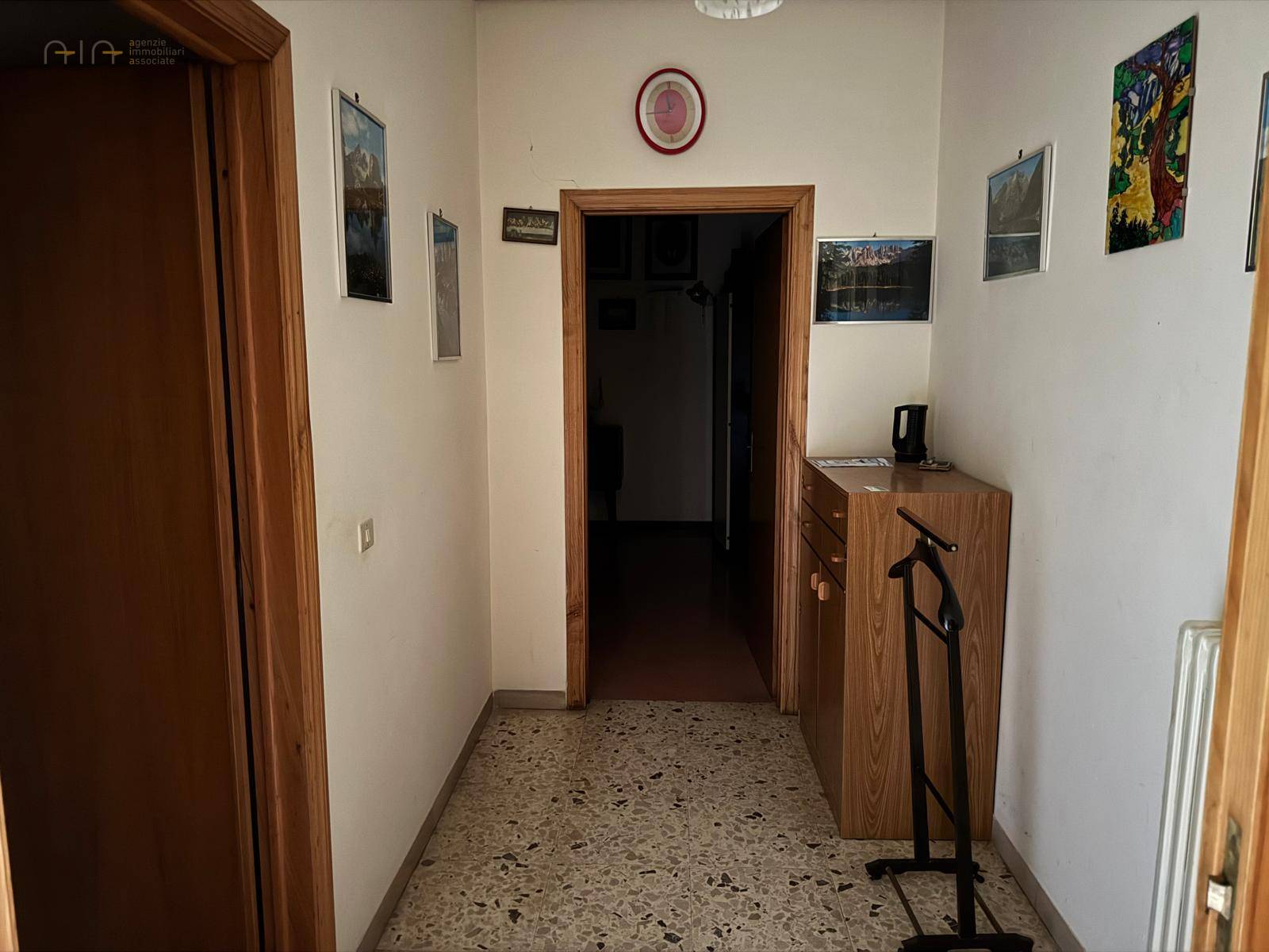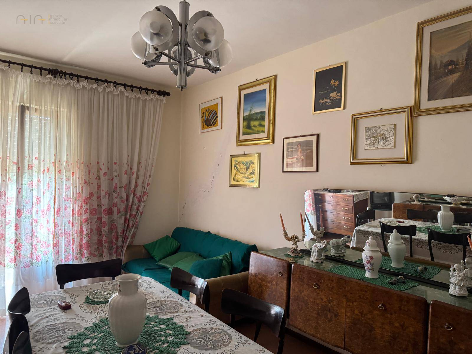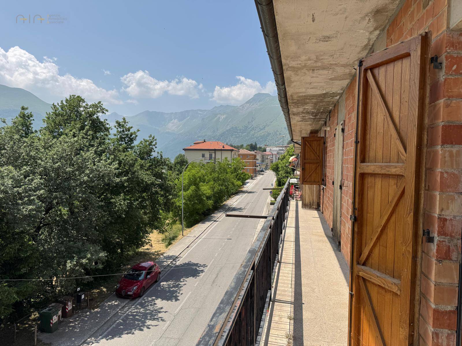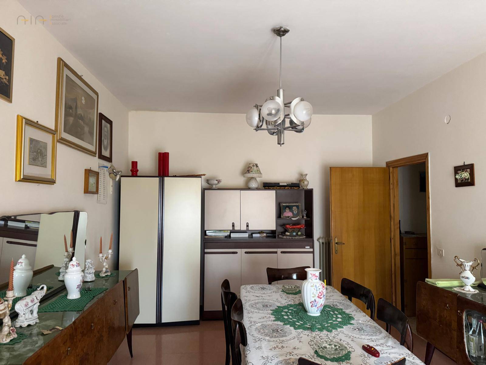 Appartamento di circa 85 mq posto al piano secondo, senza ascensore, composto da ingresso, soggiorno, sala da pranzo, retro cucina, una camera da letto e bagno; completano la proprietà una soffitta al piano superiore di 25 mq circa ed un balcone molto panoramico di 18 mq circa, con uscita da soggiorno, sala e camera. Splendida vista panoramica sui Monti Sibillini.