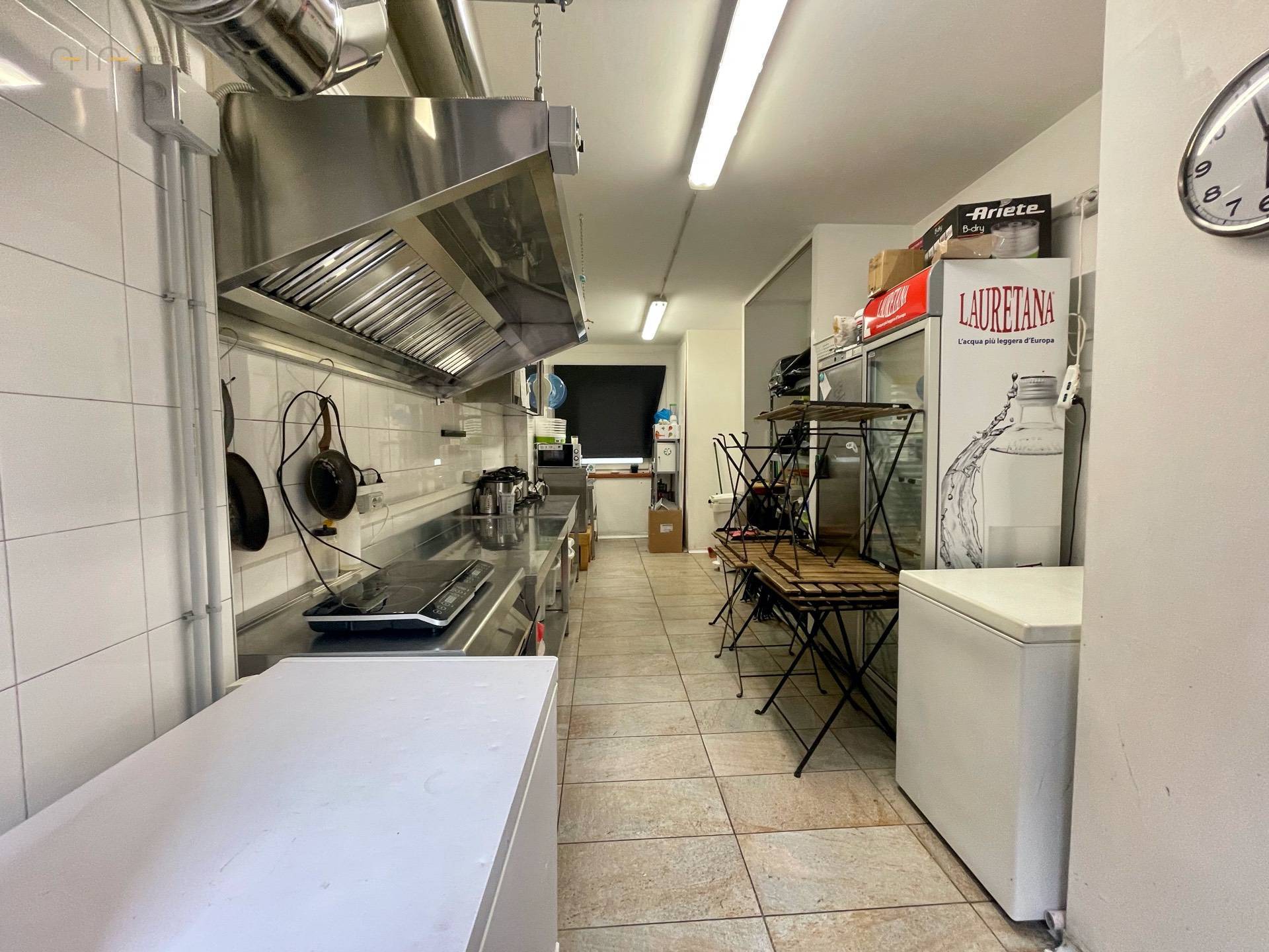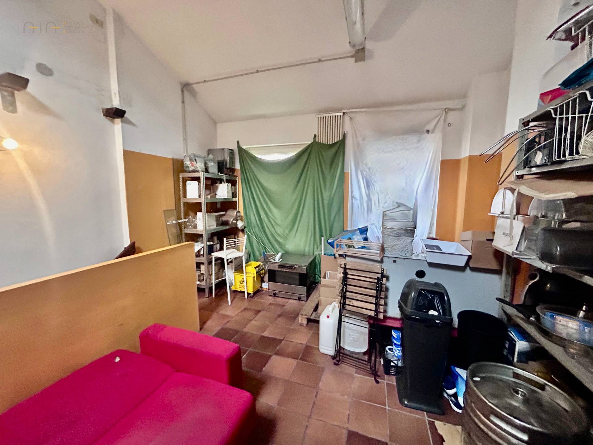 Al piano terra si trova il locale commerciale attualmente adibito a cocktail bar, con doppio ingresso su strada, area esterna coperta e arredata per la clientela, bancone moderno in legno e acciaio con retro banco attrezzato e due vetrine. L'ambiente si presenta curato e funzionale, con un'atmosfera giovane e accogliente. Il primo piano, collegato da scala interna, ospita una cucina professionale completamente attrezzata, con cappa aspirante in acciaio, piani di lavoro, frigoriferi e impianti a norma, ideale per attività di preparazione e servizio di ristorazione.
