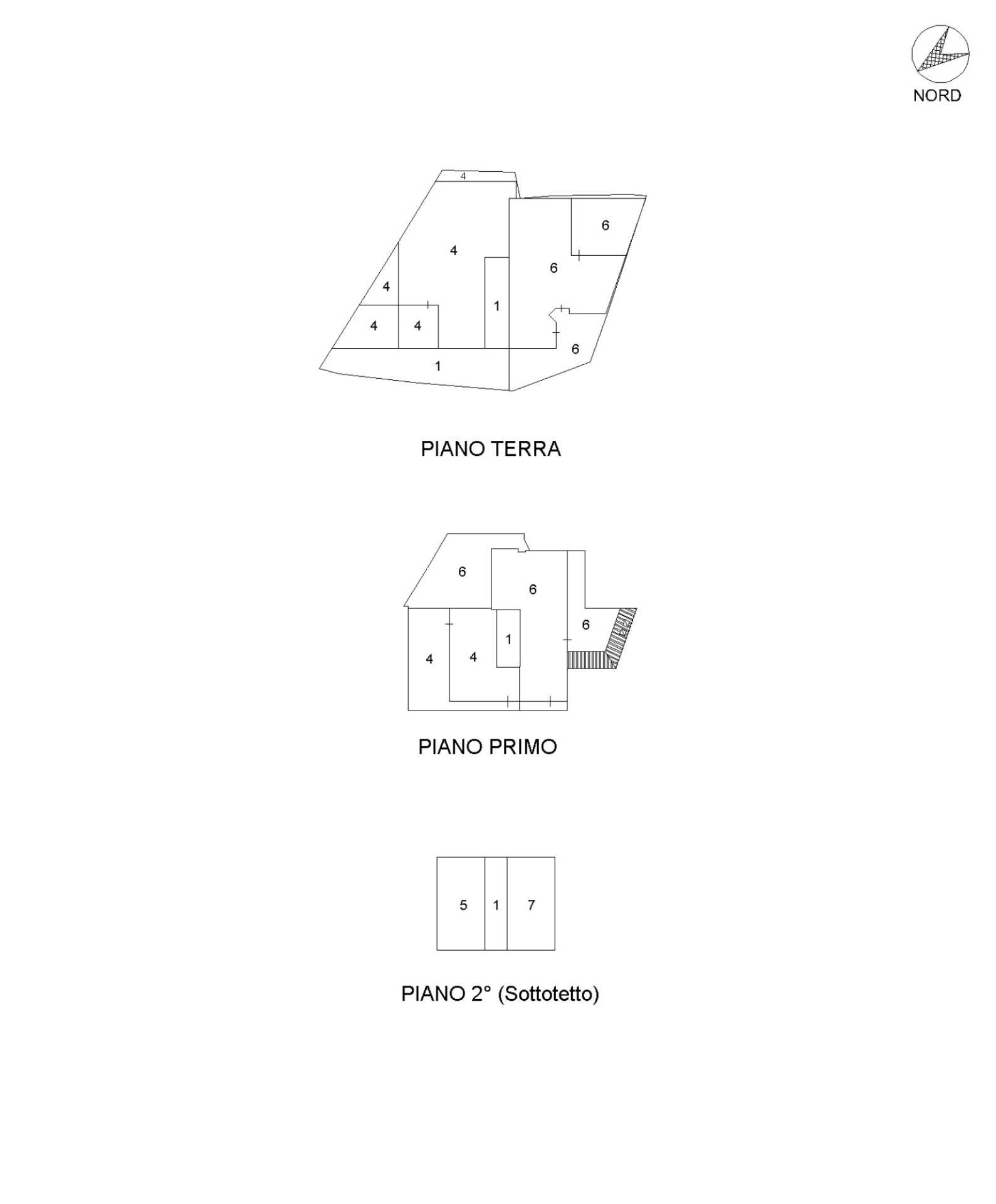 - Piano Secondo Soffitta (circa 104 m²): sottotetto allo stato grezzo, suddiviso in tre ambienti, da rifinire secondo le proprie esigenze.