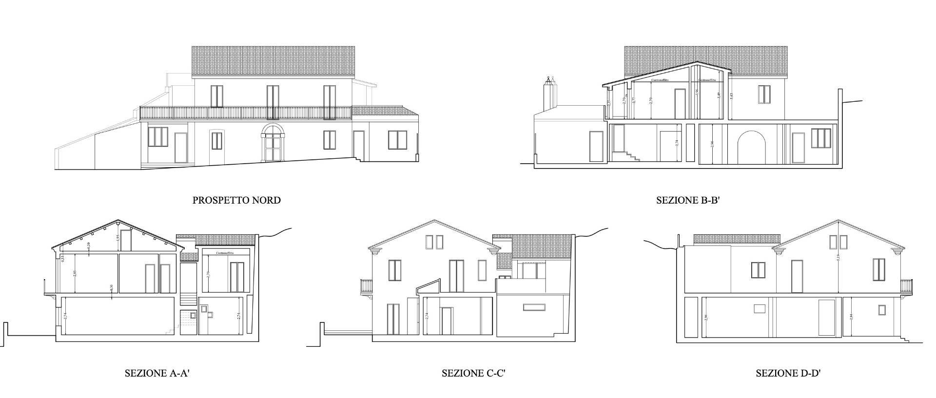 - Piano Primo (circa 128 m²): ampia camera matrimoniale, spazioso bagno, corridoio, due vani allo stato grezzo e due terrazze panoramiche per un totale di circa 40 m².