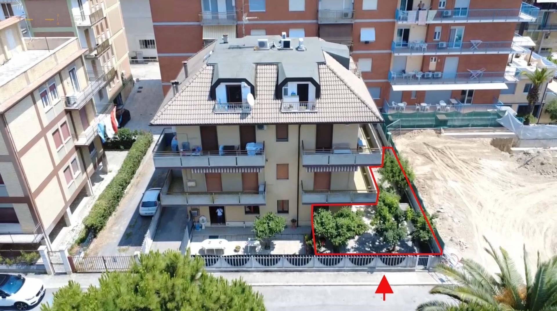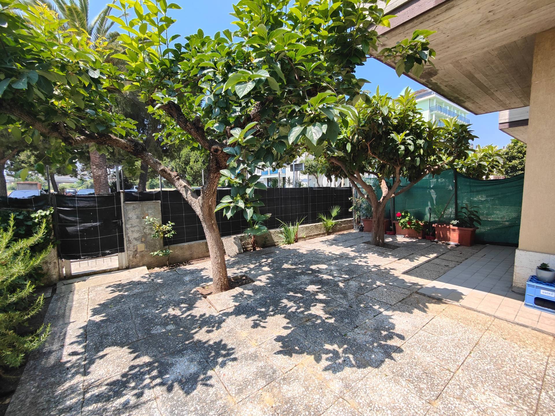 Appartamento in seconda fila mare di mq 52 circa, al piano terra con esposizione est-sud-ovest, dotato di ingresso indipendente e dotato di ampia corte esclusiva di 95 circa, recintata, in buona parte pavimentata ed arredata da aiuole e, attrezzata con aiuole ed alcune pianta.