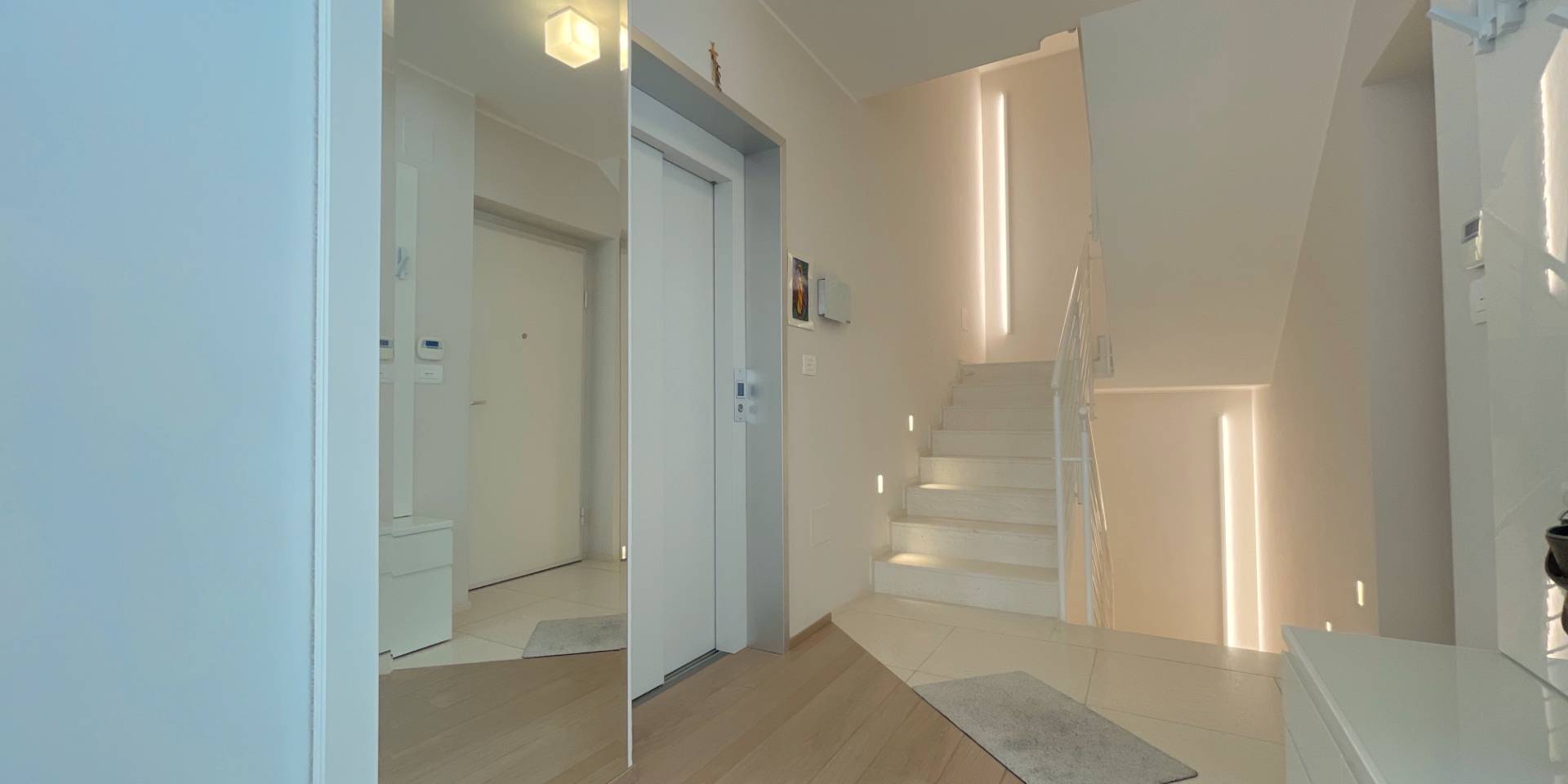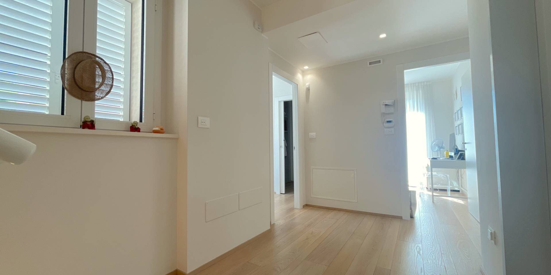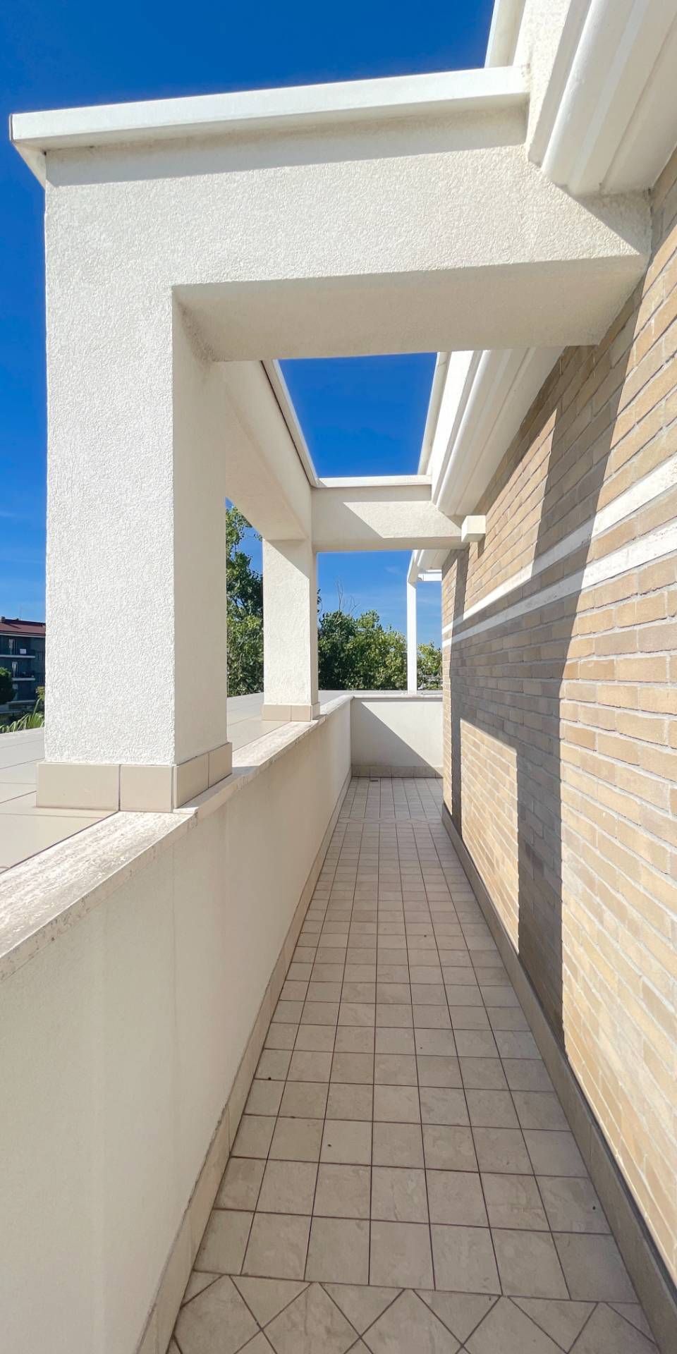 Salendo al primo piano, anch'esso di circa 70 m², si incontra la zona notte composta da tre camere da letto, di cui due matrimoniali e una singola. La camera padronale è dotata di bagno en suite, mentre un ulteriore bagno serve il piano. Gli ambienti sono completati da due terrazzi abitabili per complessivi 30 m² e da un balcone centrale che impreziosisce la facciata. Al secondo piano, troviamo invece il sottotetto, circa 30 m² da adibire a locale polifunzionale, arricchito da una splendida terrazza perimetrale di 48 m² con gazebo, ideale per momenti di relax all'aperto.