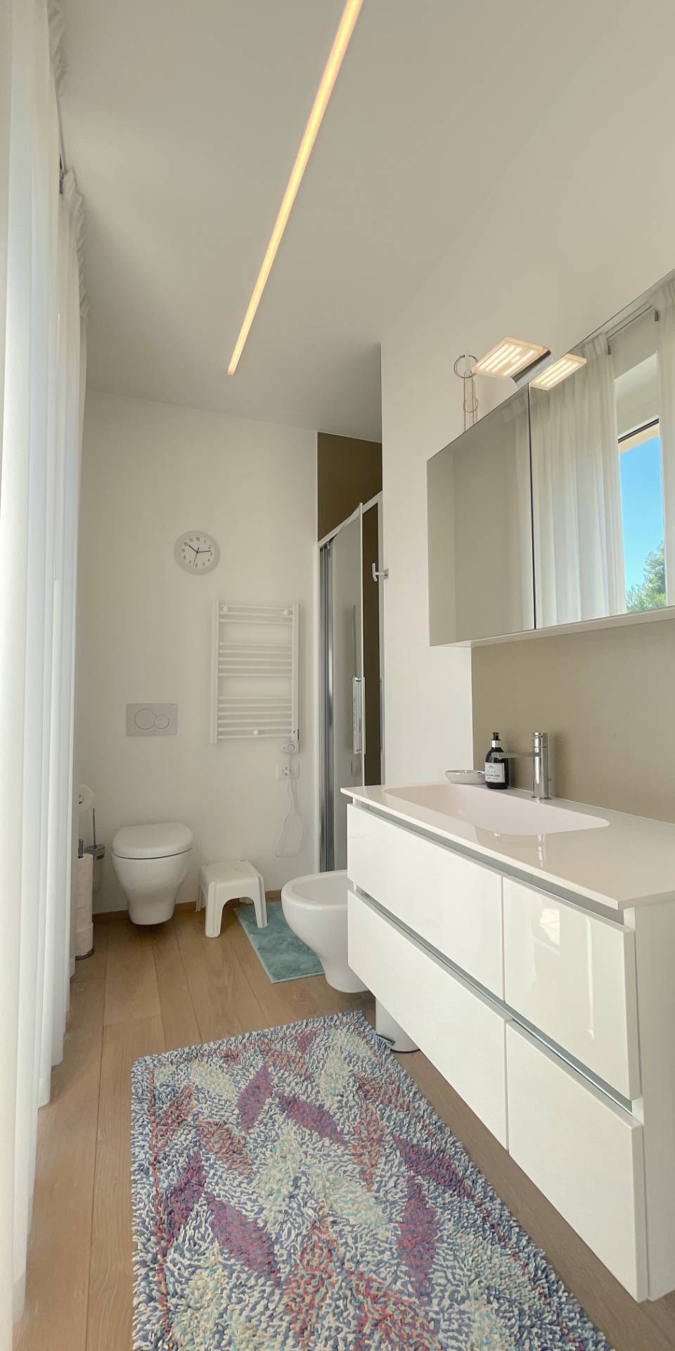 Realizzato appena otto anni fa, il villino si presenta in condizioni eccellenti, pari al nuovo, con finiture tutte extra capitolato: pavimenti in parquet di rovere su tutta la superficie, riscaldamento a pavimento, climatizzazione, impianto di deumidificazione, controsoffittature con illuminazione diffusa a luce calda, bagni rivestiti in mosaico e una moderna domotica che consente la gestione di vari servizi anche da remoto. L'esterno, rifinito in mattoncino faccia a vista, richiama uno stile neoclassico elegante e senza tempo.