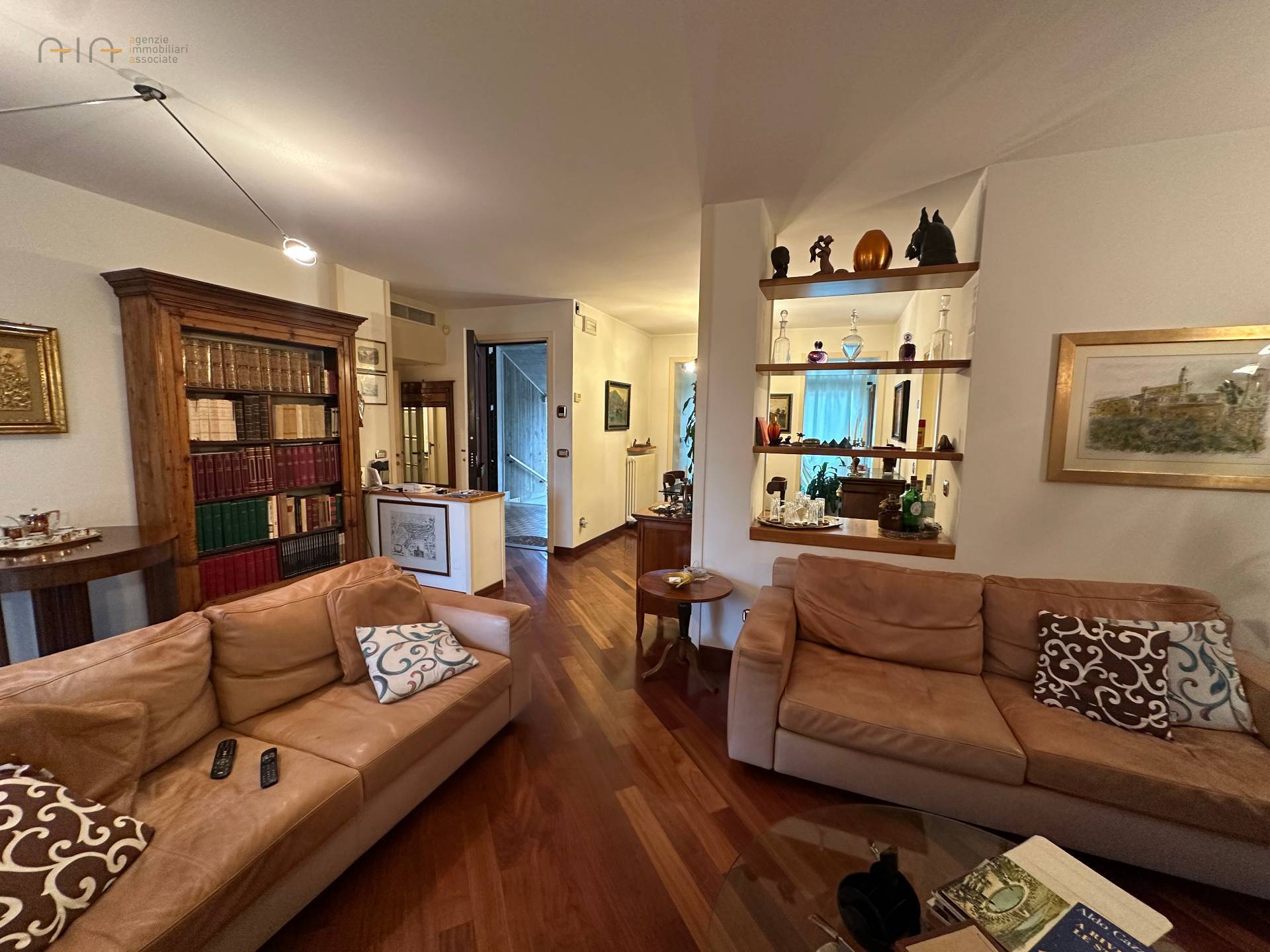 Appartamento per civile abitazione, sito al piano primo senza ascensore, delle dimensioni di 123 m² circa, composto da ingresso su ampio soggiorno, cucina abitabile, tre camere da letto di cui due matrimoniali e una singola, due bagni oltre tre terrazzi di cui due abitali delle dimensioni complessive di circa 32 m² . Completa la proprietà un garage di circa 29 mq, posto al piano interrato della stessa palazzina. Nel comodo ingresso condominiale c'è la possibilità di rimessa bici. L'Appartamento si presenta in buono stato generale, con pavimentazioni in parquet nella zona notte e giorno e monocottura nelle cucina e bagni, impiantistica elettrica a norma, impianto di riscaldamento con caldaia a norma, portone blindato. L'immobile è inoltre fornito di aria condizionata, chiusure in metallo anti intrusione a protezione delle finestre e zanzariere.