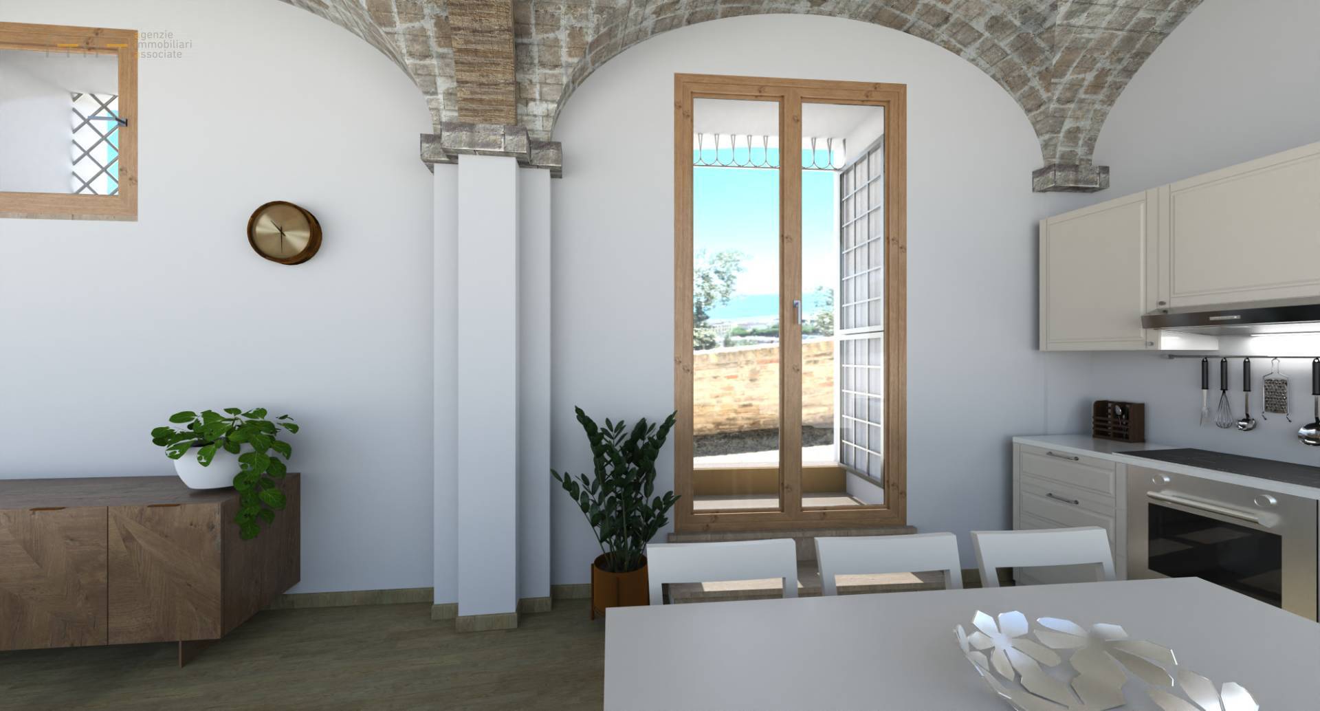Nella stupenda cornice del Paese Alto di Grottammare, all'interno di un antico palazzo nobiliare, proponiamo in Vendita un suggestivo Appartamento al piano terra composto da ampio salone doppio con cucina a vista, una spettacolare grotta per ospitare la cantina per la conservazione dei vini, due camere da letto matrimoniali, due bagni ed un ripostiglio da adibire a lavanderia/stireria.Completa la proprietà un ripostiglio al piano terra con comodo accesso e predisposto per la ricarica di e-bike. L'Appartamento, in fase di completa ristrutturazione, verrà finito e rifinito con materiali di pregio, impiantistica di ottimo livello e sarà classificato in classe energetica A2. Con prezzo da computare a parte è possibile ampliare la fascinosa grotta di ulteriori mq. 60. Le volte a crociera e le soluzioni abitative altamente contemporanee, con uso di acciaio e legno, rendono questa dimora piena di fascino, adatta a persone esigenti e di grande sensibilità estetica.