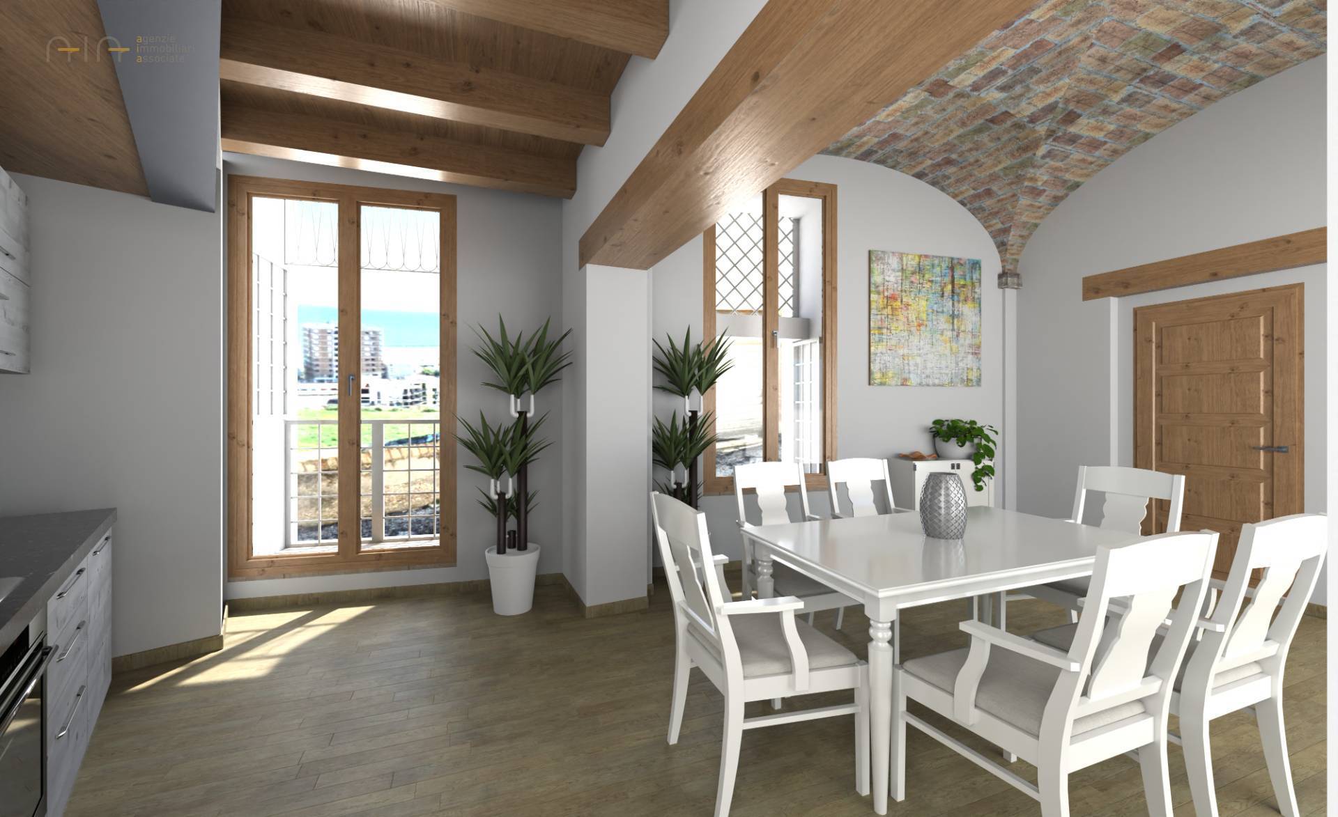Nella stupenda cornice del Paese Alto di Grottammare, all'interno di un antico palazzo nobiliare, proponiamo in Vendita un suggestivo Appartamento su due livelli così composto: al piano terra un ampio salone doppio con cucina a vista, un bagno ed una scala di collegamento con balaustra in acciaio per accedere al piano sottostante nel quale troviamo due camere da letto matrimoniali, un bagno, una cabina armadio ed un ripostiglio da adibire a lavanderia/stireria.Completa la proprietà un garage al piano terra adatto ad ospitare un'automobile di medie dimensioni e la possibilità di installare una colonnina per la ricarica di veicoli elettrici. L'Appartamento, in fase di completa ristrutturazione, verrà finito e rifinito con materiali di pregio, impiantistica di ottimo livello e sarà classificato in classe energetica A2. Le volte a crociera e le soluzioni abitative altamente contemporanee, con uso di acciaio e legno, rendono questa dimora piena di fascino, adatta a persone esigenti e di grande sensibilità estetica.